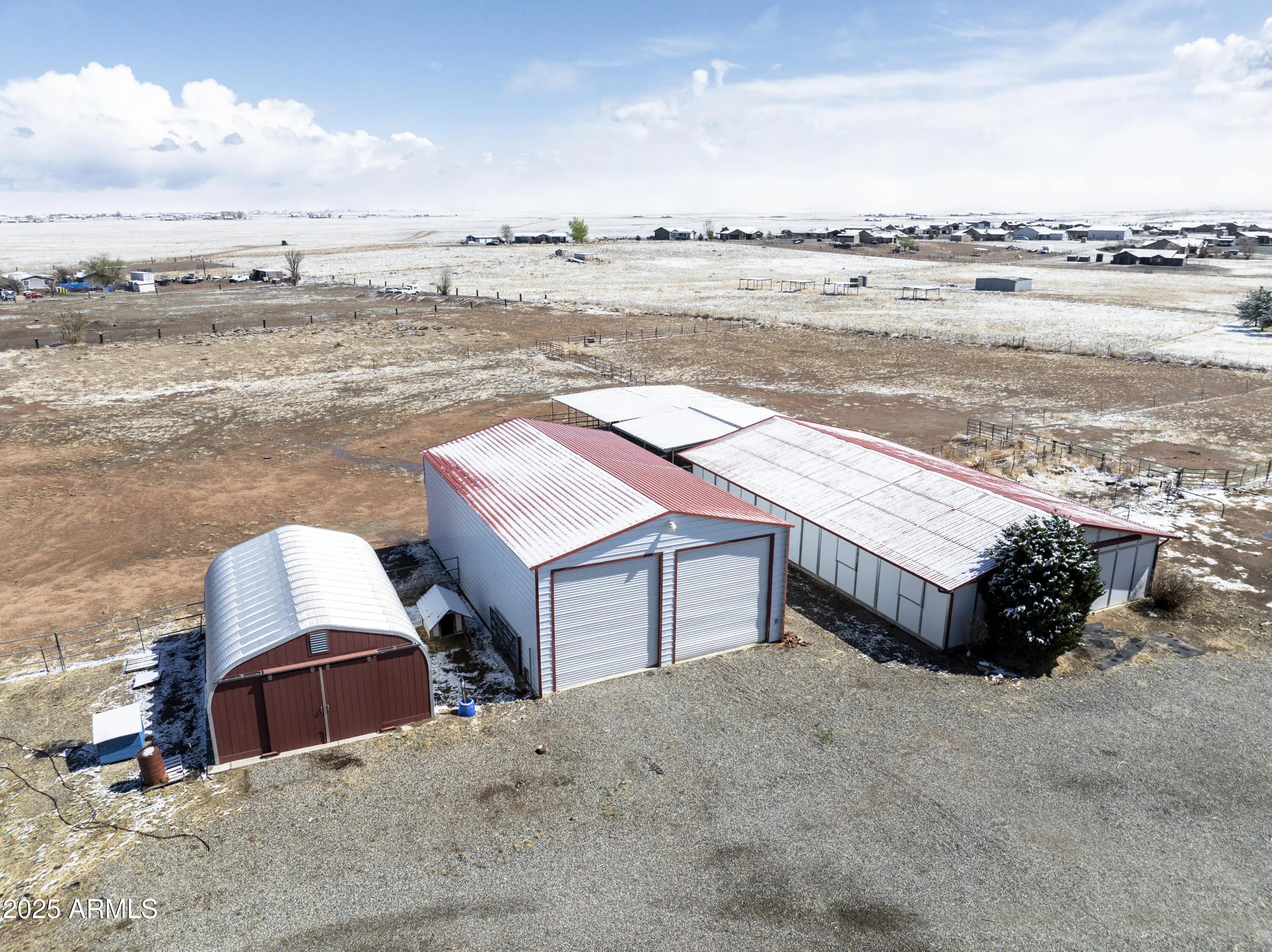 HUGE PRICE REDUCTION! Discover the perfect blend of comfort & functionality in this open concept 3,380 sq. ft. home located in Prescott Valley. Set on an expansive 9.45 acres, this property offers ample space for both relaxation & recreation. This beautifully designed home features 4 bedrooms, and 3 baths, providing plenty of room for family and guests. Built in 2004, the residence showcases high ceilings, incl vaulted ceilings and skylights that fill the living spaces w/ natural light. The property boasts a remarkable 1,500 sq. ft. utility bldg./garage, constructed in 2008, ideal for storage, a workshop, or additional projects. There is additional 600 sq ft building ideal for extra storage, work out room, etc. The 2232 sq ft barn is spacious & ready for your 4-legged family member
