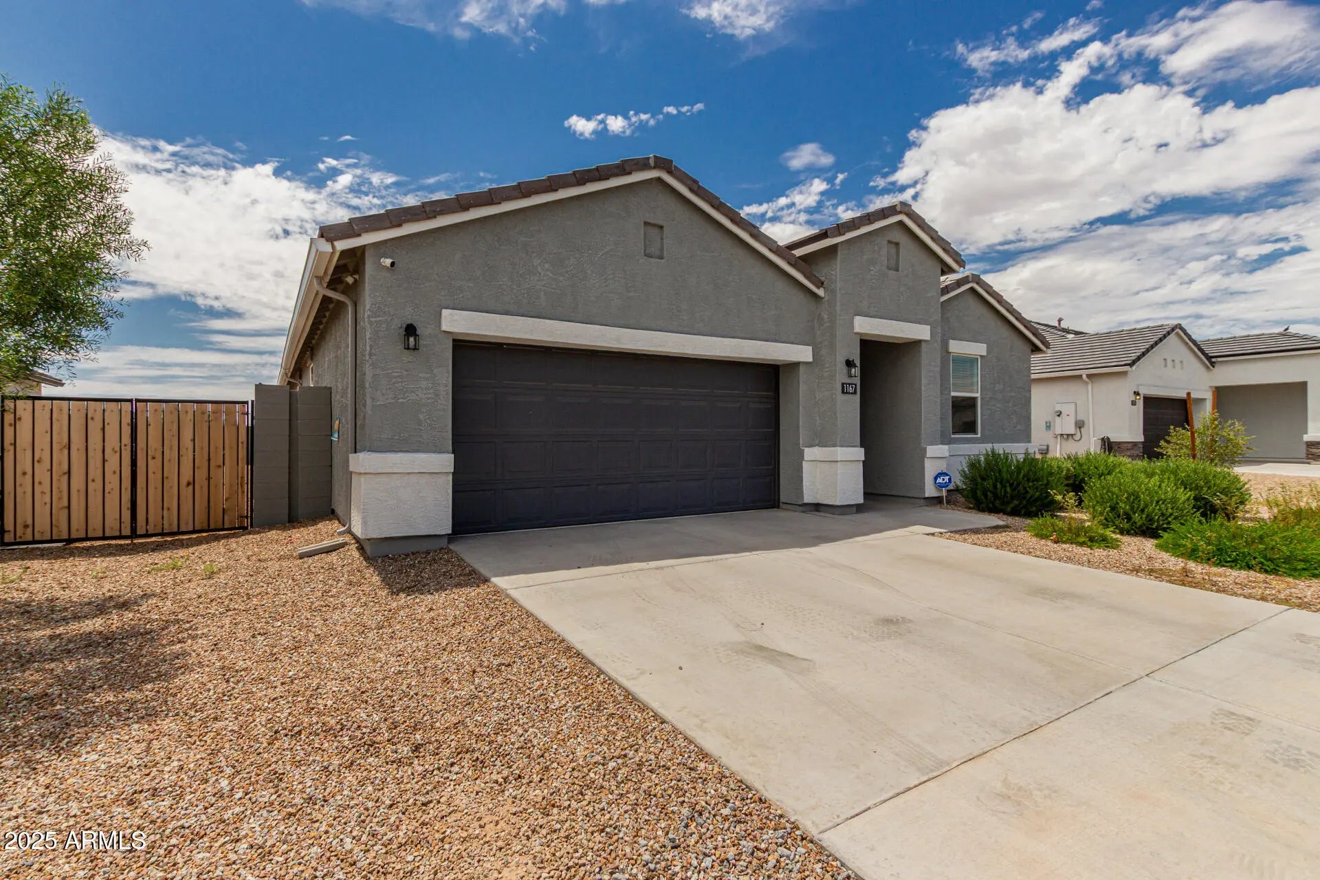 Welcome to this charming single-level home in Gila Buttes! Offering 4 beds, 2 baths, 2-car garage, RV gate, & low-care landscape. You'll love the spacious layout featuring neutral palette that creates an inviting atmosphere, complemented by abundant natural light, recessed lighting, tile flooring in common areas, and plush carpet in bedrooms. The impressive kitchen boasts SS appliances, granite counters, a pantry, white shaker cabinetry, and an island with a breakfast bar. The large main bedroom has an ensuite with dual granite sinks & a walk-in closet. Need space to relax or have a fun gathering? The perfectly sized backyard, with a covered patio, is the ideal spot! Just near the Hwy 347, commuting and access to local amenities is a breeze. Make this gem yours!