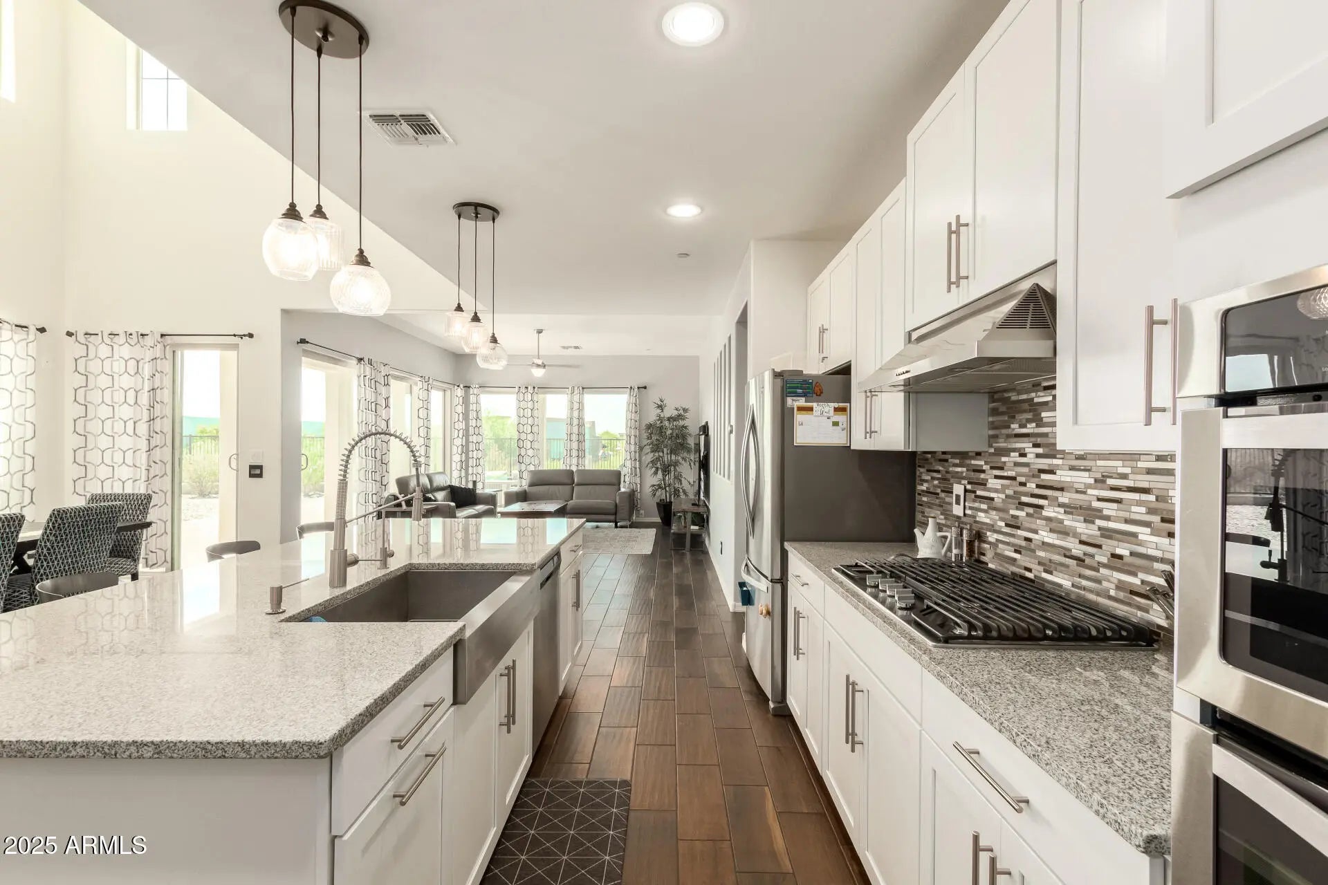 Discover this stunning home in the award-winning master planned community of Vistancia! Tucked away in a quiet cul-de-sac, this spacious 4-bed plus loft & den, 3.5-bath, 3-car garage home is perfect for family living. Inside, you'll love the modern design with wood-look flooring, abundant natural light, and a stylish neutral palette. The kitchen boasts shaker cabinetry, granite counters, tile backsplash, stainless appliances, and a large island for casual family meals. A flexible loft and den provide space for play or work. The private primary suite offers a walk-in closet and spa-like bath with dual sinks. Step outside to a covered patio, pavered seating area, and serene desert views. Vistancia's resort-style pools, parks, trails, and top-rated schools make it the ultimate community!