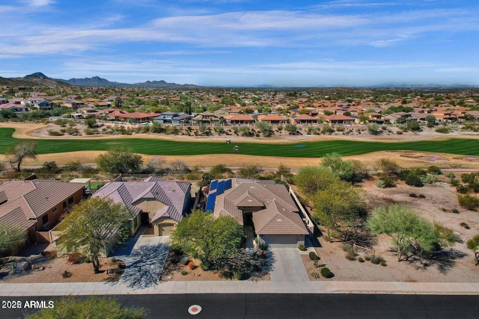 A gated Morrison custom home with a premium lot located on the golf course with many upgrades and only one neighbor on one side. The other side is open space with meticulous maintained desert landscaping. This home offers 4 bedrooms and 2 baths with a bonus room that can operate as an office or TV room. New refrigerator, salt water heated pool, outdoor shower, and pergola. Home features an outdoor kitchen perfect for weekend family time or entertaining friends while watching the Arizona sunset. Home also offers electronic shade system, solar panels, prewired to accommodate any electric vehicle. Community offers two gyms, two pools, and activities. Pool Weekly Service included.