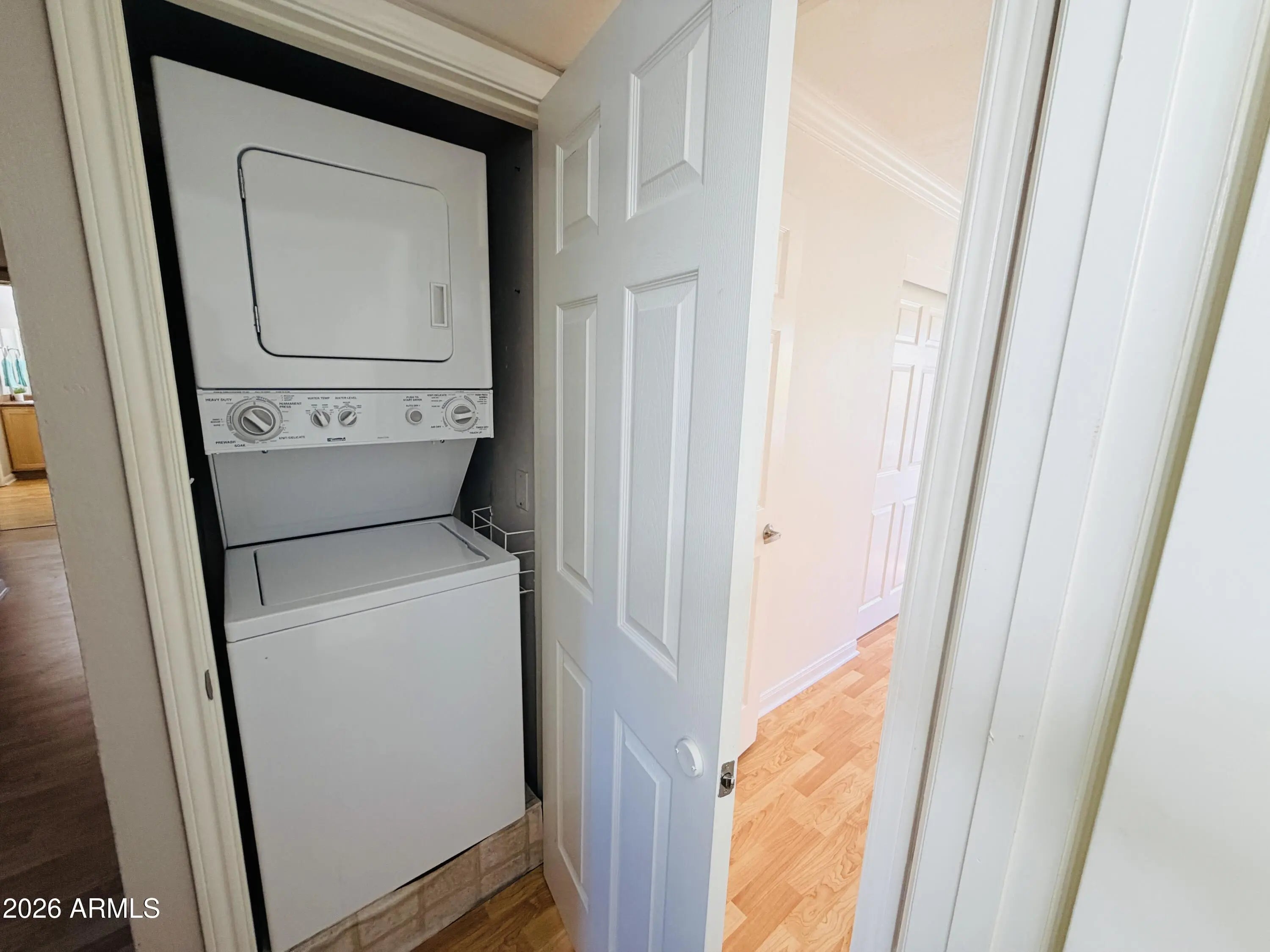Stacked Washer/Dryer, Refrigerator, Built-in Microwave, Dishwasher, Disposal
