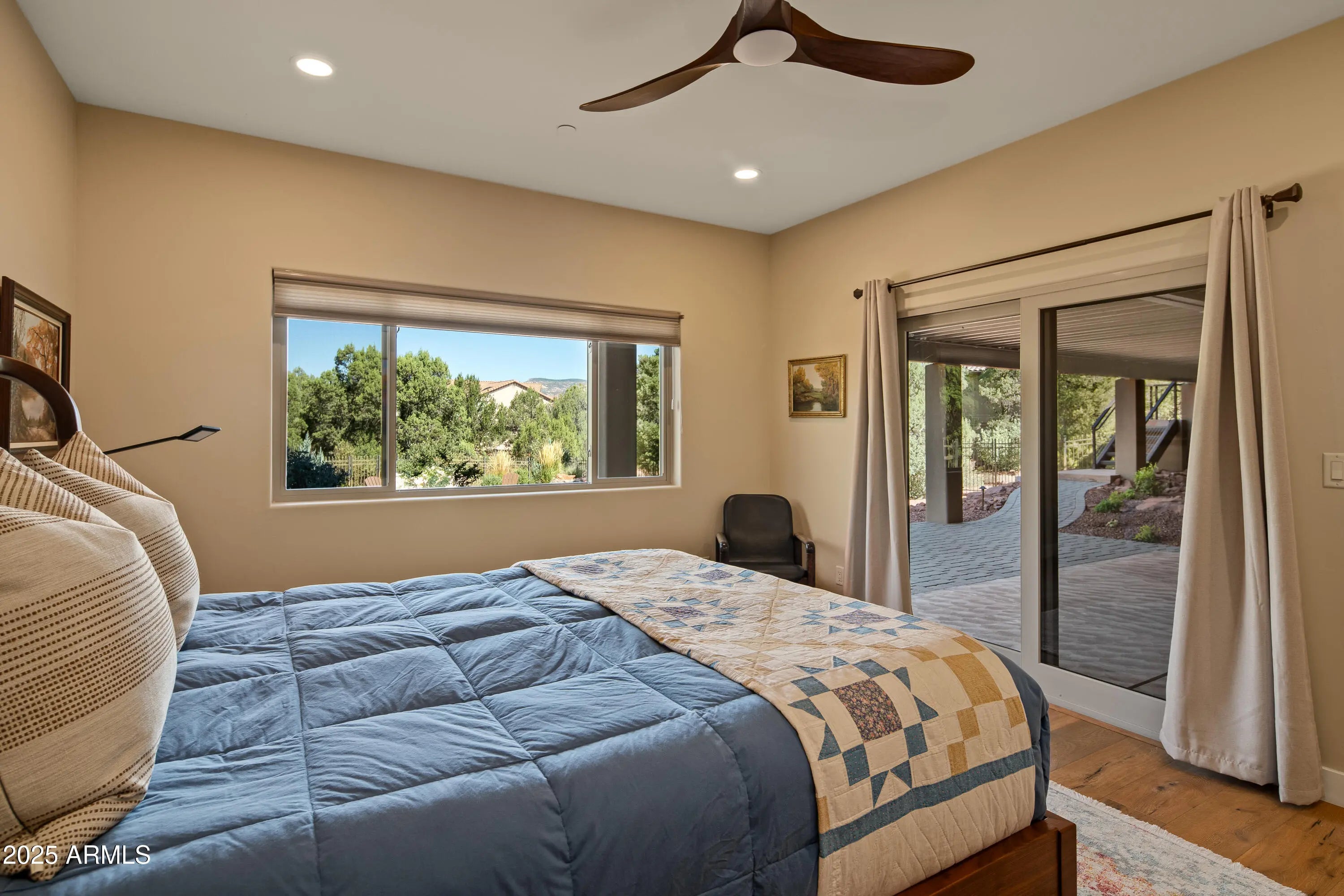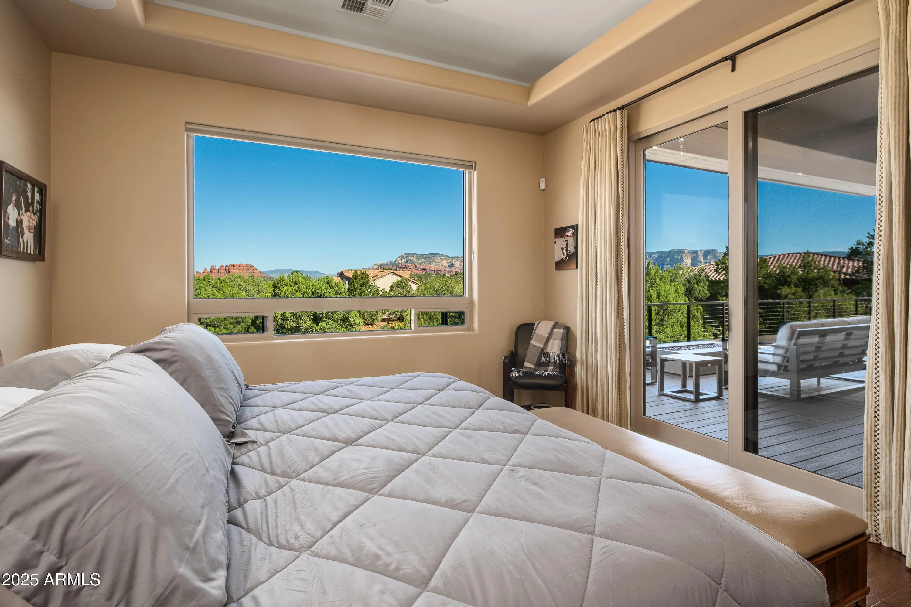 Luxury, privacy, and panoramic red rock views define this 4BD; 3BA; 3,468 sq ft energy-efficient residence in West Sedona, built in 2015 and extensively upgraded. Enjoy sunsets from the expansive NEW Trex wraparound deck with gas fire-pit, built-in BBQ, and dedicated plumbing and electric for a hot tub. The landscaped backyard features a second fire-pit and a waterfall lit at night. Inside: Mont Blanc quartzite counters, Miele and Thermadore appliances, motorized shades, walnut cabinetry, remodeled baths, custom closets, and designer lighting. Energy Star certified with owned solar by Solar One. High-end comfort, top-tier efficiency, and timeless design. No short-term rentals allowed. Some designer furnishings available separately. Brochure and list of upgrades available in MLS listing. List of upgrades, online 28-page brochure, floor plan, and a virtual walk-through available on MLS or upon request! Short term rentals not allowed - 6-month rentals only in this subdivision. New Improvements include: EXTERIOR - New Trex Deck And Joists With Trex 50-Year Warranty (2025) - New AO Smith Proline Gas Water Heater (2024) - Waterfall In Backyard Beautifully Lit At Night (2023) - Professionally Landscaped With Over 100 Plants and 15 Trees (2023) - New Drainage System (2023) - Landscape Lighting On Timer (2023) - Irrigation System With Bio Fertilizer Pump (2023) - New Tile Front Entry (2025) KITCHEN - Kitchen Remodeled With Mont Blanc Quartzite Countertops (2024) - New Shaker Style Alder Cabinetry - New Sinks - New Faucets - New R/O System (2024) PRIMARY BATHROOM - Master Bathroom Remodeled With Walnut Cabinetry - New Quartzite Countertops - New Luxurious Bain Ultra Tub - New Beige Onyx Designer Tile In Shower (2024) - New Floor Tile - New Wainscotting GUEST BATHROOM - New Alder Cabinetry - New Quartzite Countertop - New Designer Tile Flooring - New Faucets ADDITIONAL IMPROVEMENTS - Motorized Window Shades For All Interior Windows (2023) - Walnut Maverick Ceiling Fans In Every Room (2023) - Hubbardton Forge Designer Chandeliers & Lighting Throughout (2023) LOWER LEVEL - Wood Flooring Throughout (Pulled Out Carpet (2023))