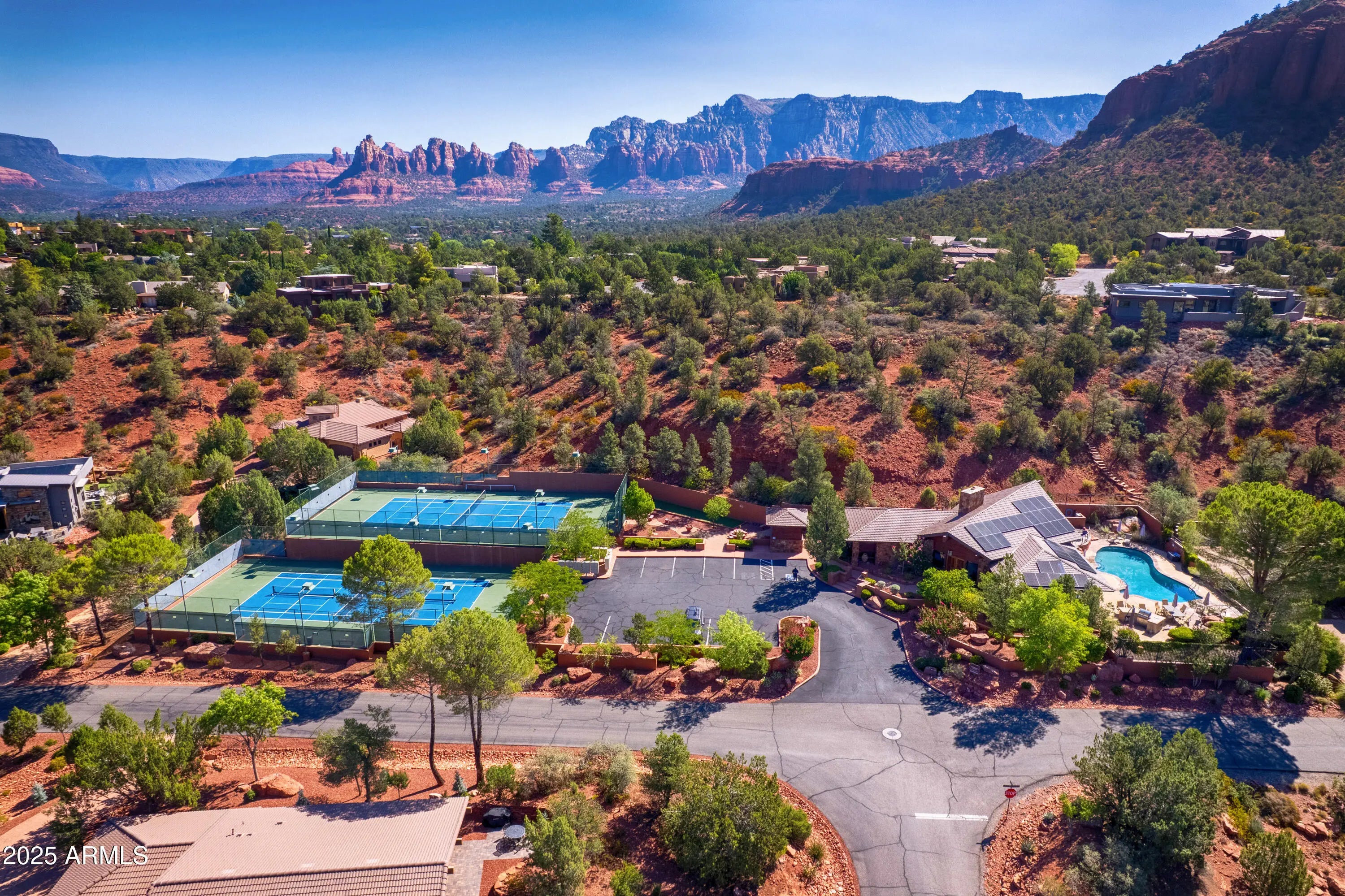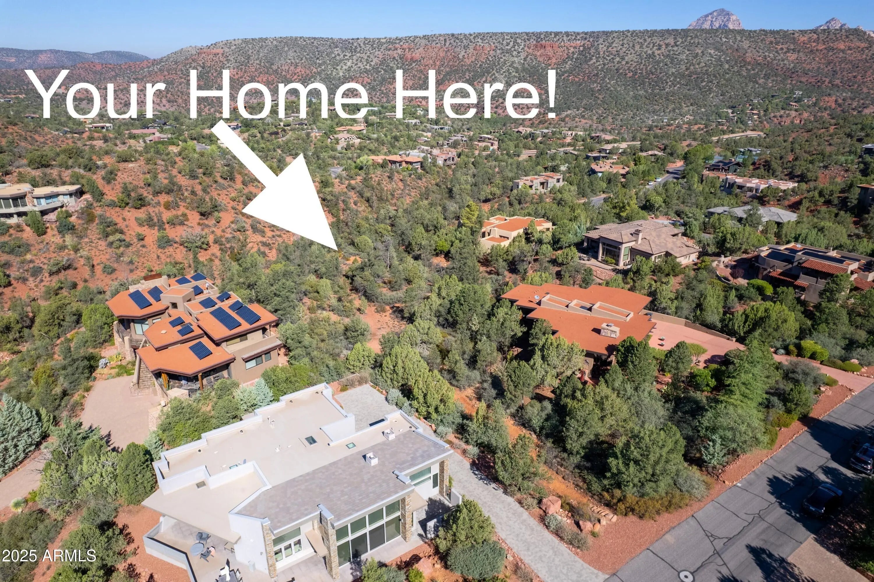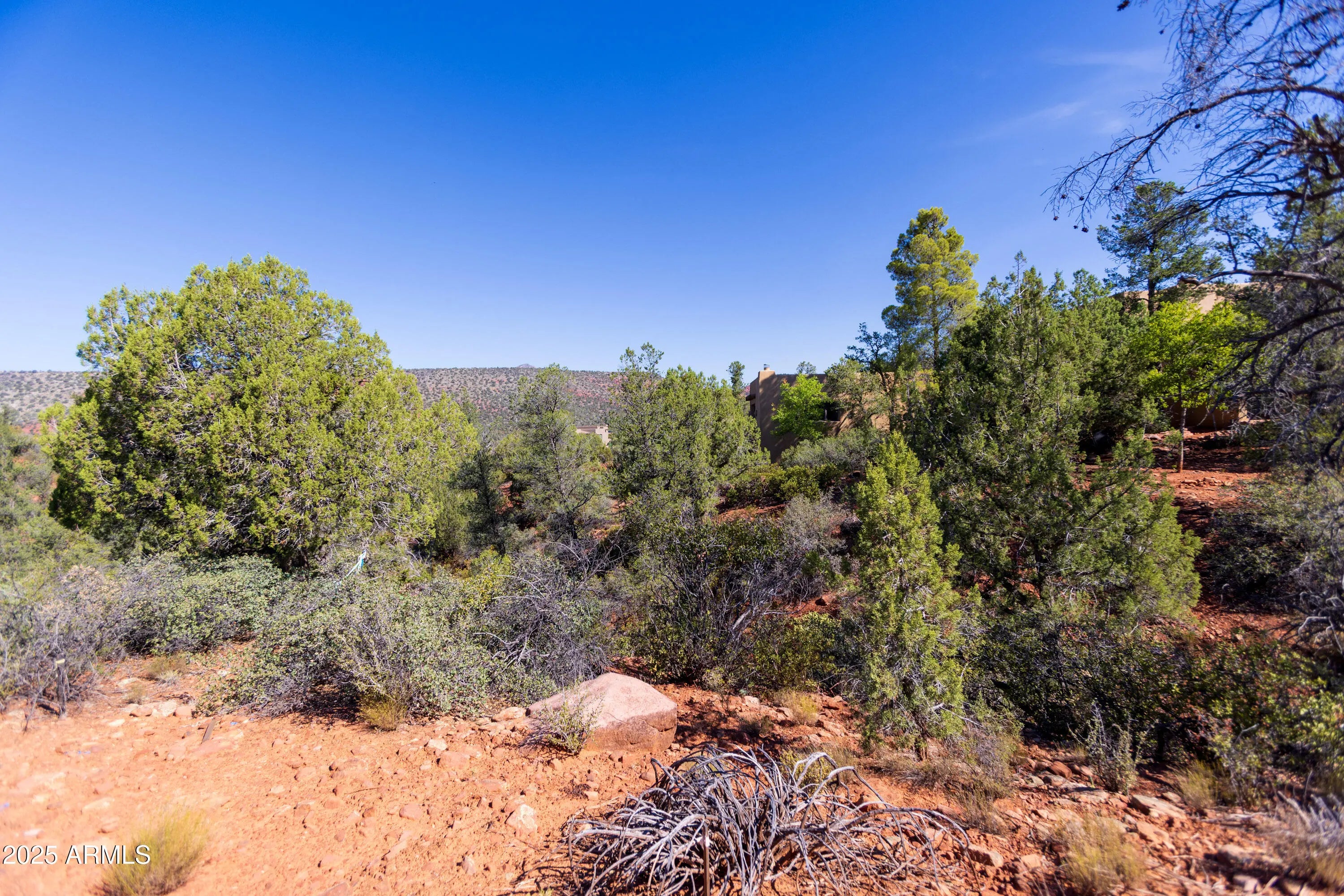 This flag-shaped lot offers privacy and seclusion. Majestic trees and an amazing view of Elephant Rock make it special. Live in harmony with nature as you watch wildlife frolic by the meandering wash. Living in Mystic Hills means more than just a beautiful home; it's about being part of a welcoming, active community. Neighbors gather for barbecues and card games, while the clubhouse and courts buzz with friendly matches of tennis, pickleball, and bocce ball. With its blend of natural beauty and vibrant social life, Mystic Hills is the ideal place to build not just a house, but a home. Approved plans for a 4-bedroom home are available, saving you time and bringing you one step closer to enjoying your Sedona lifestyle. We invite you to walk down the path to the bldg site to see the beauty!