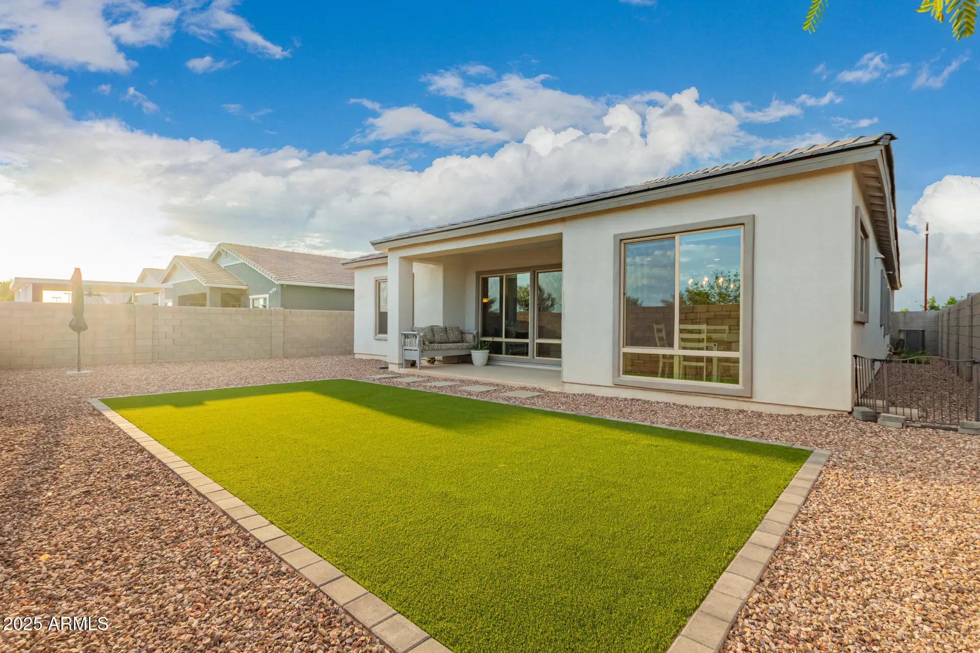 North/South Exposure, Desert Front, Gravel/Stone Front, Synthetic Grass Back