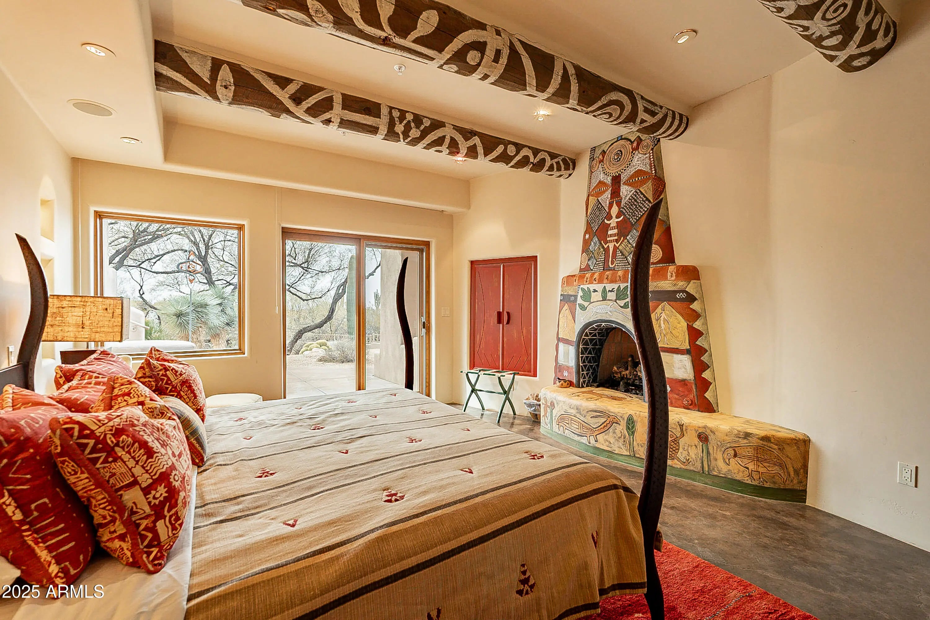 Secluded estate situated on approx 2 acres w/Black Mountain & golf views. Main home has an artistic flair with 3 bdrms plus an office. Master has two walk in closets & a private patio. Great room with fireplace, stunning architectural details. Well-appointed kitchen including wine refrigerator. Numerous outdoor entertaining spaces surrounding pool & spa. 2 car+golf cart garage in main house. Meandering path bordered by specimen quality cactus leads you to private guest sanctuary. Floor to ceiling windows, oversized shaded veranda w/custom tongue & groove woodwork. Polished concrete flooring, oversized open fireplace & kitchenette, 2 bedroom en-suite. 1 car garage dedicated for guest use, private entrance & driveway. All new travertine tile backyard pool and spa remodel recently complete!