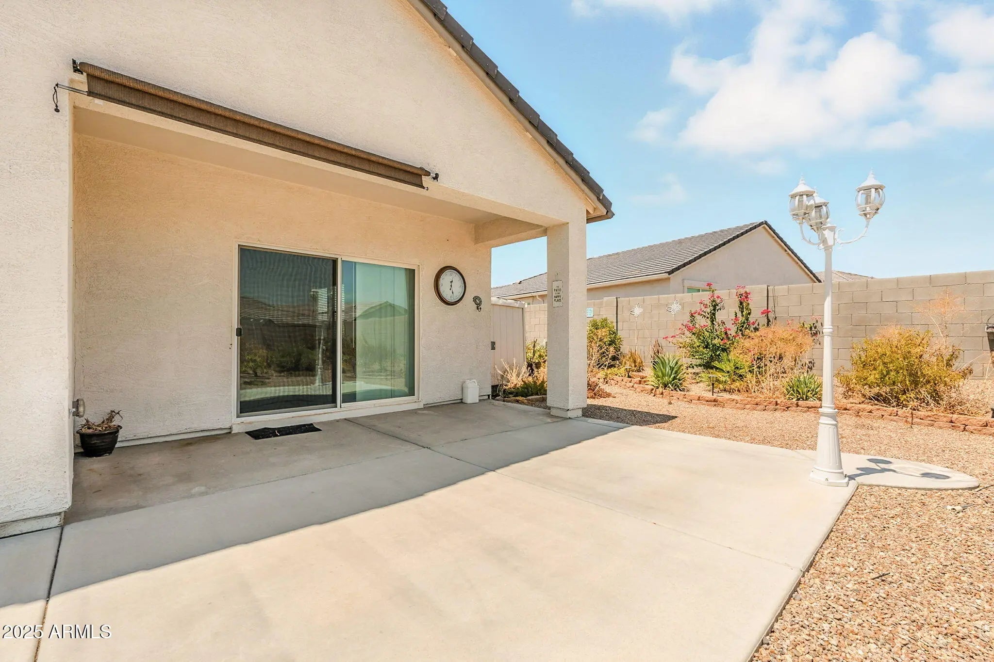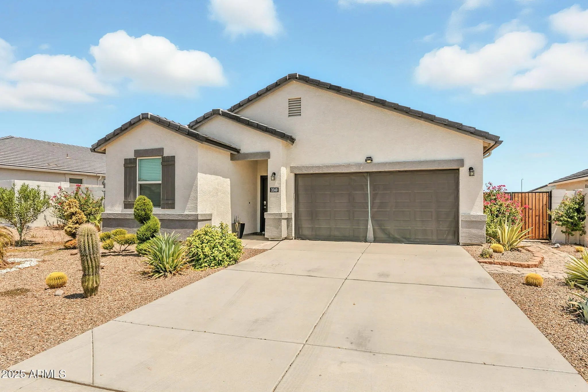 Discover the crown jewel of the neighborhood—this expansive home sits on the largest lot in the subdivision, offering unmatched space and serenity. Step inside to soaring ceilings, sun-filled rooms, no carpet, and a soothing neutral palette that invites comfort. The smart split floor plan ensures privacy, while oversized windows frame picturesque views of lush desert landscaping. Outside, unwind under the extended patio or enjoy the charm of fruit trees in a vibrant, low-maintenance yard designed for effortless outdoor living.