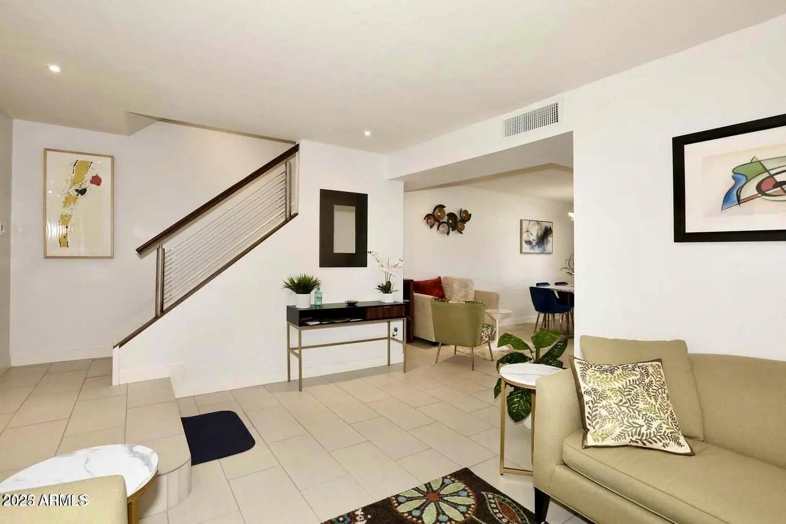 Fully Furnished stunningly remodeled 3-bed/2.5 bath Chaparral Park Townhome! This 2-level home is minutes from Old Town, Fashion Square, 101 Loop, canal trail & Chaparral Lake. Conveniently close to Mayo, Banner, WestWorld, spring training, universities and exceptional dining and shopping. Stylish, comfortable living room, work from home desk space, dining area for 6. Spacious kitchen looks out to patio w/quartz counters, SS appliances, pantry and laundry. King size primary bedroom w/ensuite bath w/step in shower, walk in closet. Queen size 2nd bedroom and 3rd bedroom with 2 twin size beds. This home is outfitted with smart TV's on both levels, a fully stocked kitchen and a great patio for relaxing and entertaining. The community pool is steps from front door.