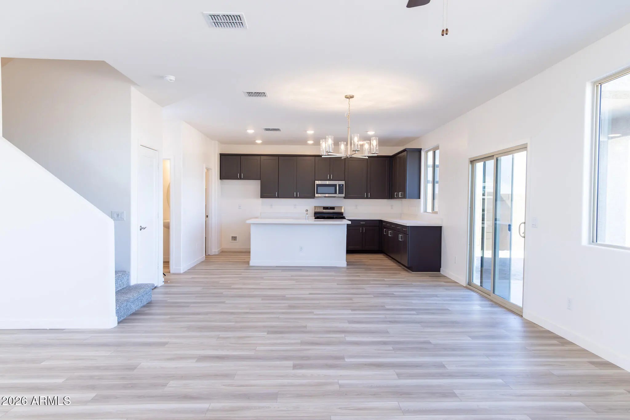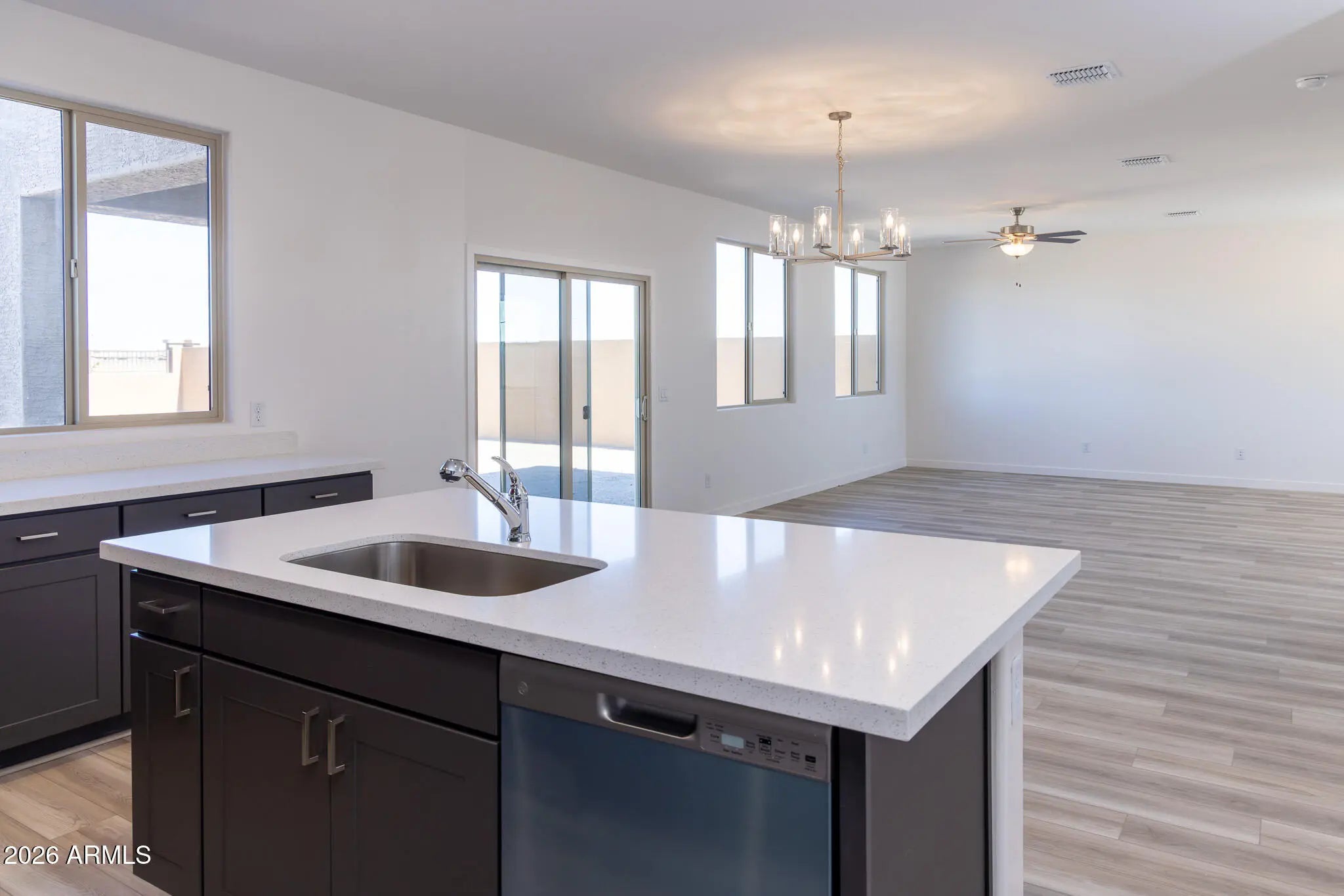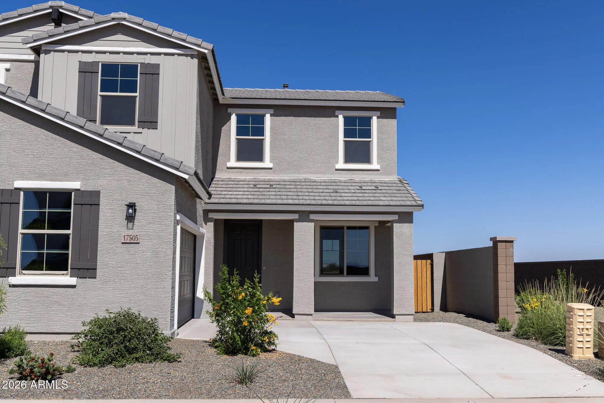 Welcome to your beautiful new, MOVE-IN READY home in El Rancho Santa Rosa! This two-story home has 2185 sq. ft. of living space with 4 bedrooms, 2.5 bathrooms, a 2-car garage, and covered patio. This kitchen in this open-concept home features GE stainless steel appliances, granite countertops, designer Kichler lighting, 42-inch cabinets, and Luxury Vinyl Polaris flooring. The community of El Rancho Santa Rosa has shaded playgrounds, a turf play area, and basketball court, and provides easy access to Hwy 347, close proximity to Ak-Chin Entertainment Center, and is just East of Copper Sky Recreation Complex.