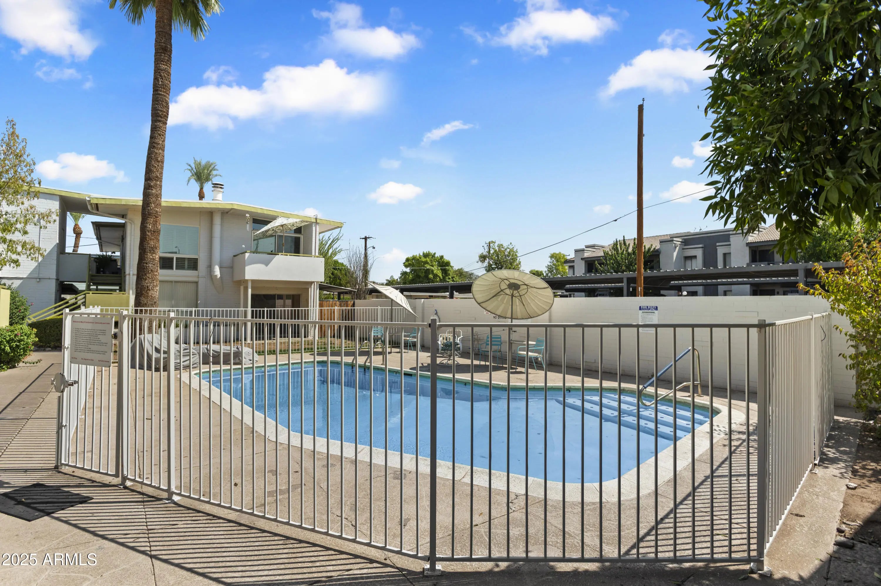 This centrally located 2-bed, 2-bath mid-century modern residence offers an open floor plan, in-unit laundry, a community pool, updated bedroom flooring, and a desirable first-floor location with no stairs for easy access. Recent seller improvements include fresh paint in the living room, bathrooms, and kitchen and a washer and dryer replacement within the past year. The HOA has also made significant updates, including a new roof, a replaced main water heater, and ongoing exterior repainting to further enhance the property's appeal. Ideally situated just steps from Murphy's Bridle Path, local farmers markets, and some of Phoenix's most popular dining and entertainment venues — all within the highly regarded Madison School District.