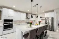 Rare opportunity in this limited phase of Marley Park! This beautifully custom upgraded home a full kitchen and bath remodel, luxury vinyl and porcelain tile throughout, and a 3-car tandem garage. WALK-IN closets in all bedrooms. Whole-house water purification, softener system, and energy-efficient foam insulation. This is one of Surprise's most sought-after communities with tree-lined streets, parks, pools, and the Heritage Club. Homes of this size and quality are rarely available—don't miss your chance!