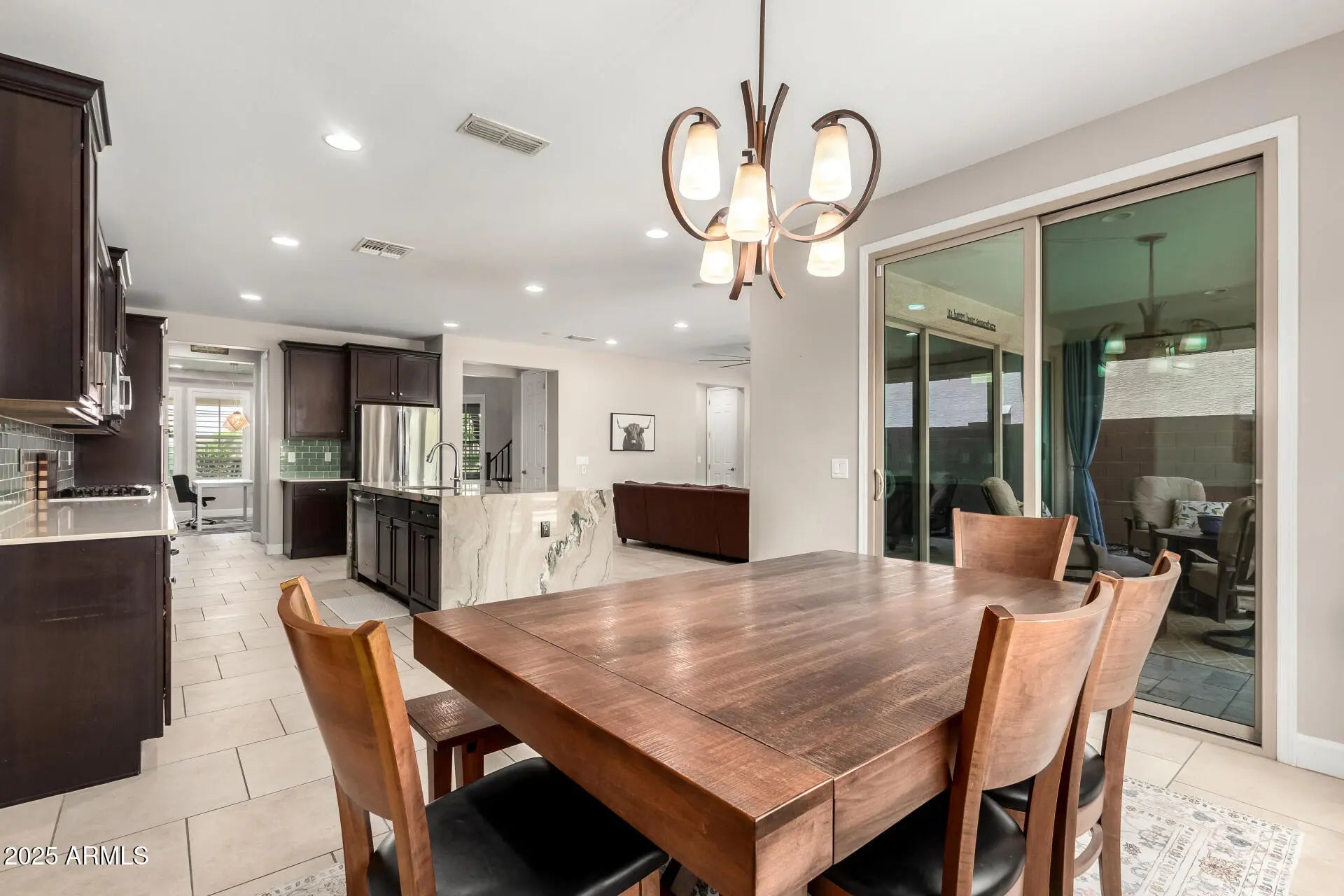 Former model! Welcome to this beautifully appointed two-story home offering the perfect blend of elegance and comfort. Boasting 5 spacious bedrooms and 3.5 bathrooms, this home is designed with both everyday living and entertaining in mind. Step inside to find upgraded finishes throughout, including custom built-ins and a grand staircase that creates a striking first impression. The open-concept layout features a gourmet kitchen with modern touches that flows seamlessly into the living and dining spaces. The luxurious primary suite is a true retreat, complemented by generously sized secondary bedrooms and versatile spaces ideal for family, guests, or a home office. Outdoors, enjoy your own private oasis with a sparkling pool, perfect for Arizona summers, and a covered patio for relaxing evenings. Located in one of Gilbert's most desirable neighborhoods, this home combines style, functionality, and an unbeatable location close to shopping, dining, and top-rated schools.