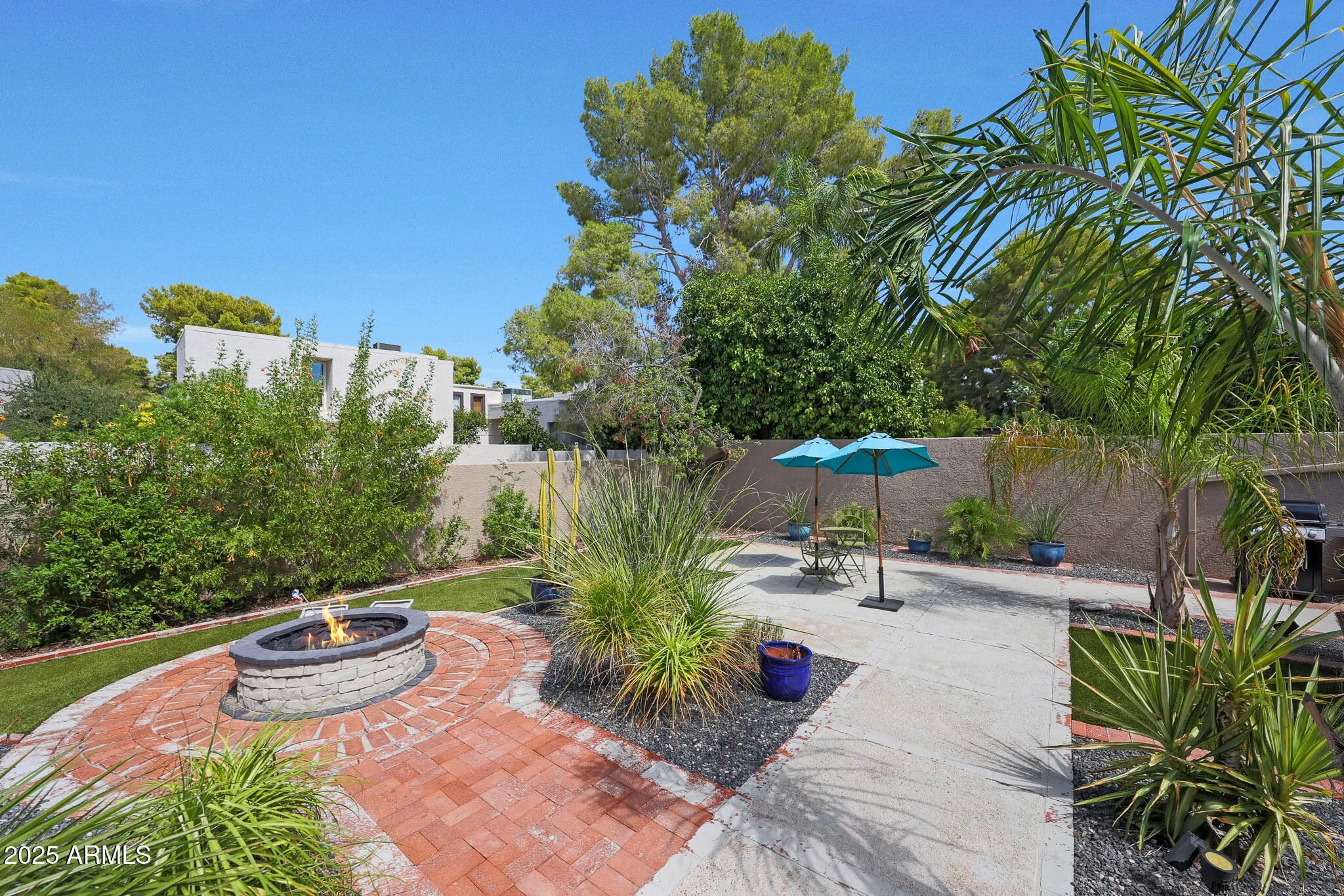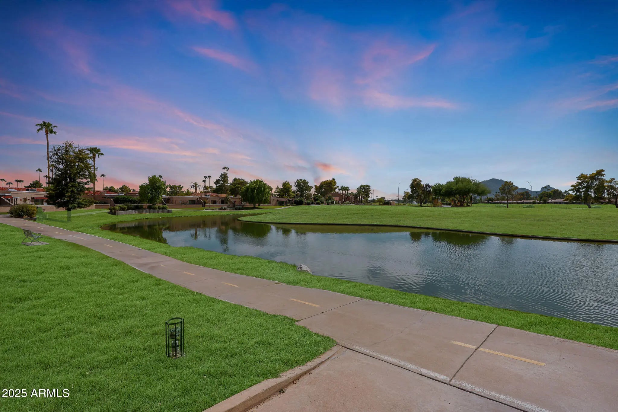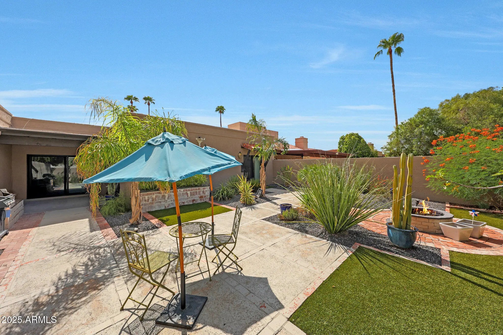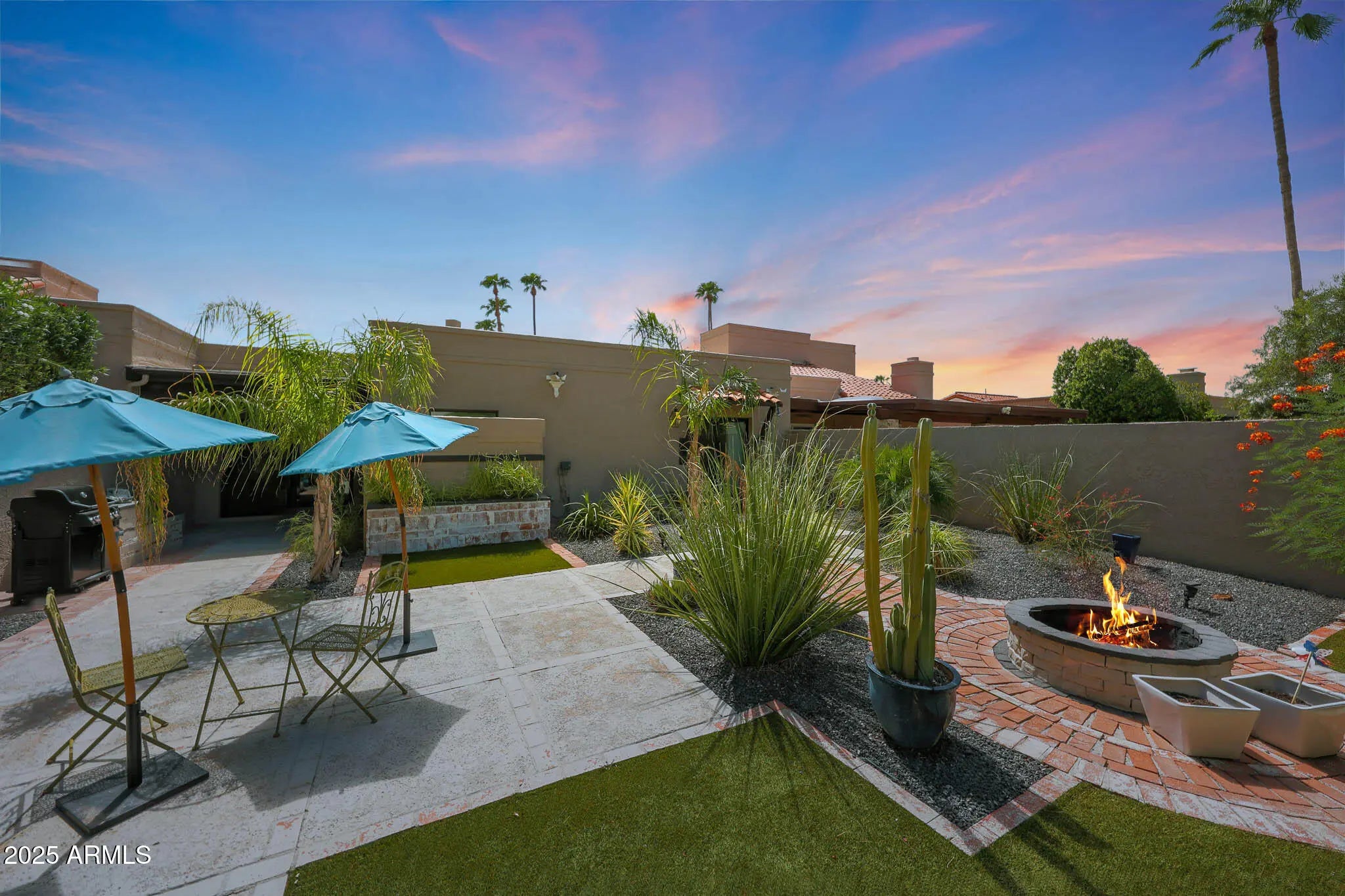 Light pours in, walls open wide, and life flows seamlessly indoors to out in this single-level Santa Fe-style townhome in McCormick Ranch, Scottsdale. Set on a rare 4,958 sq ft lot backing green space, it offers Camelback Mountain views and the relaxed desert lifestyle today's buyers search for—sunlight, privacy, and walkable convenience. Bright, open living connects effortlessly to a private backyard retreat with turf, hardscape, a built-in fire pit, and a hand-textured patio bordered in a softly distressed brick finish—a design touch that adds rustic character and warm Southwest charm. Perfect for morning coffee, sunset gatherings, or easy entertaining under the desert sky. Inside, the all-new 2025 kitchen features a large quartz island, soft-close custom cabinetry, and Frigidaire stainless steel appliances. Peace-of-mind upgrades include two new Trane A/C units (2025; 10/12-year warranties), a new water heater (2024), and smooth Santa Fe texture throughout. Outstanding AirBnB or seasonal rental opportunity--the location is exceptional, across from one of two heated community pools and within walking distance to coffee, dining, and shopping. You're just steps from the 11-mile lakeside bike and walking path, McCormick Ranch Golf Club, and Mercado del Lago, with Chaparral Park and its popular dog park only 3 minutes away--ideal for pet owners and outdoor enthusiasts alike. Turnkey, low-maintenance, and ready to enjoy--just 10 minutes from Old Town Scottsdale and Salt River Fields. Select furnishings available for purchase on a separate bill of sale.