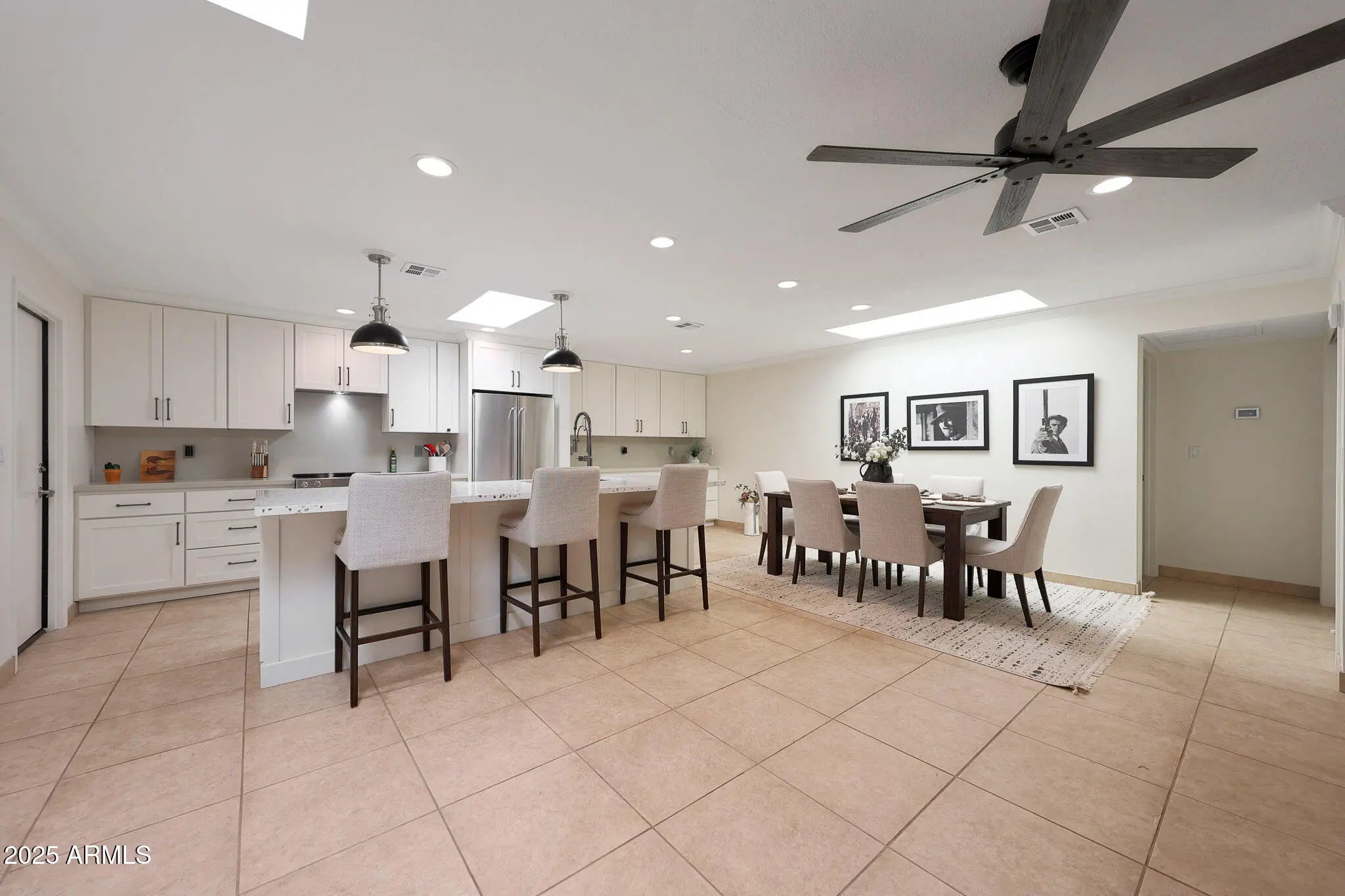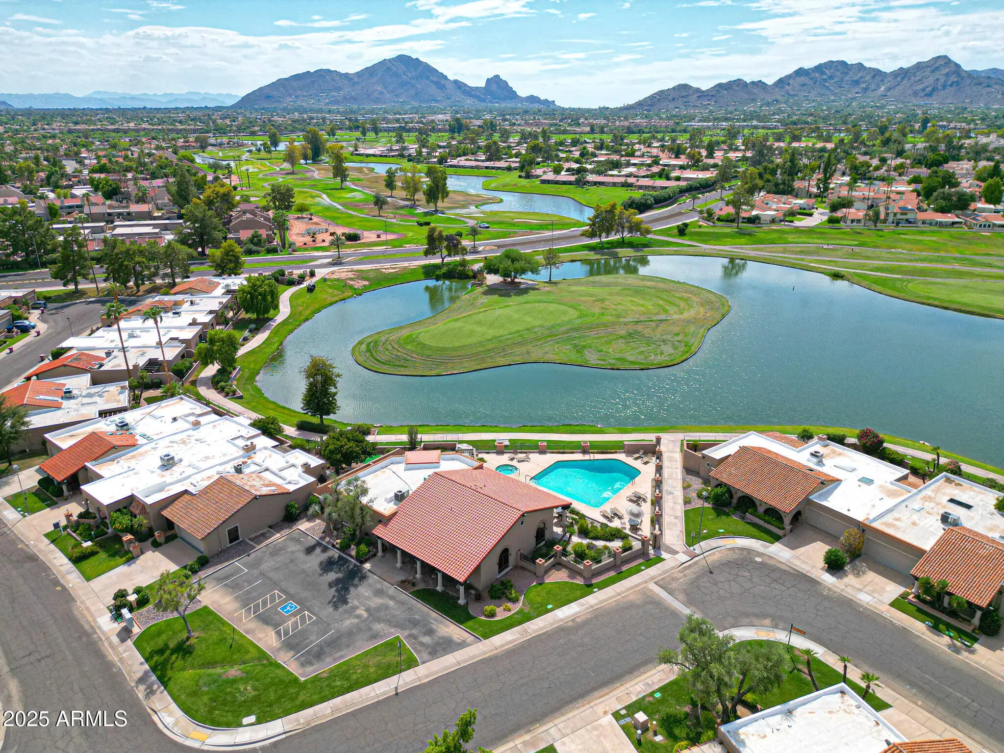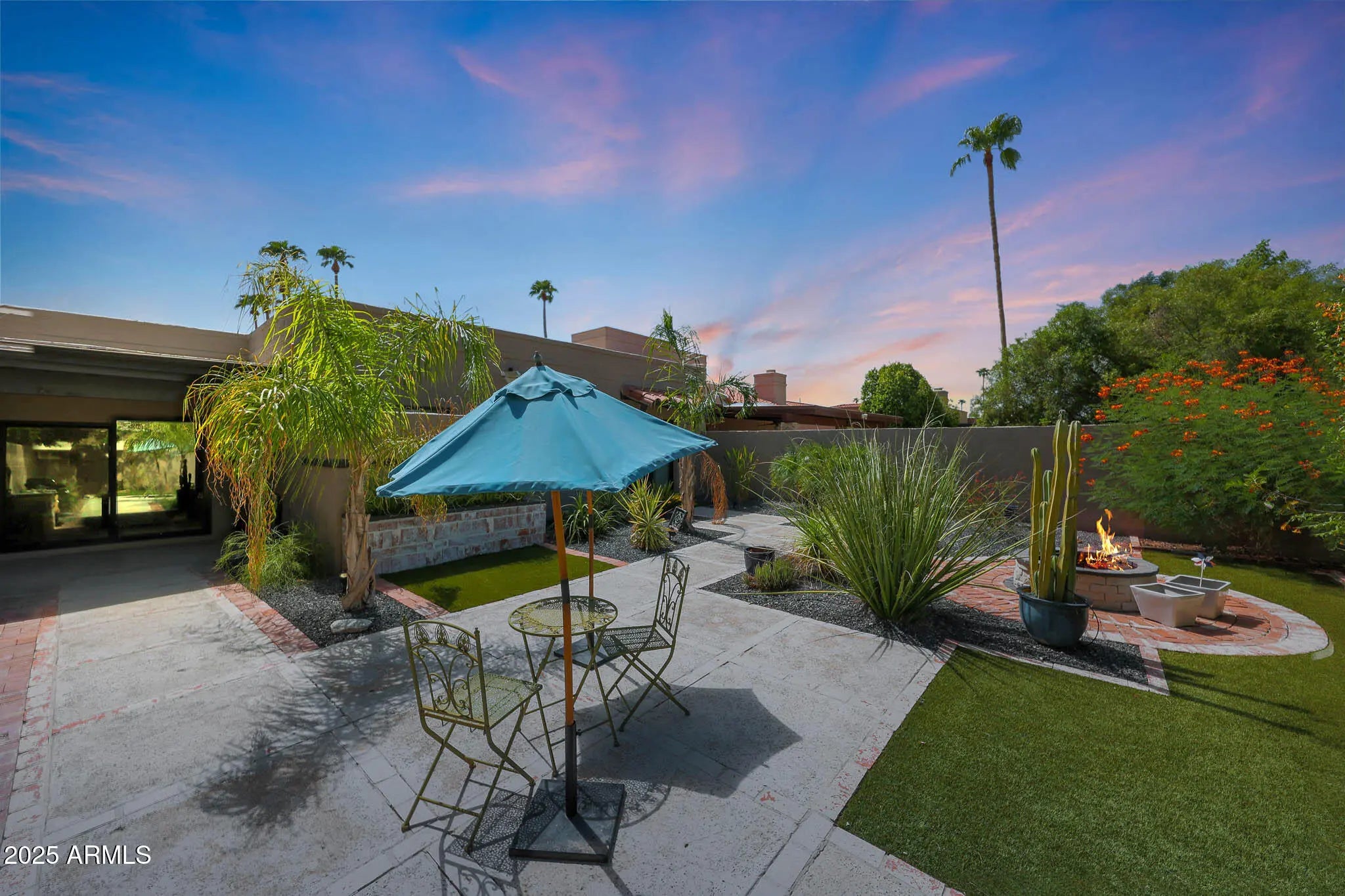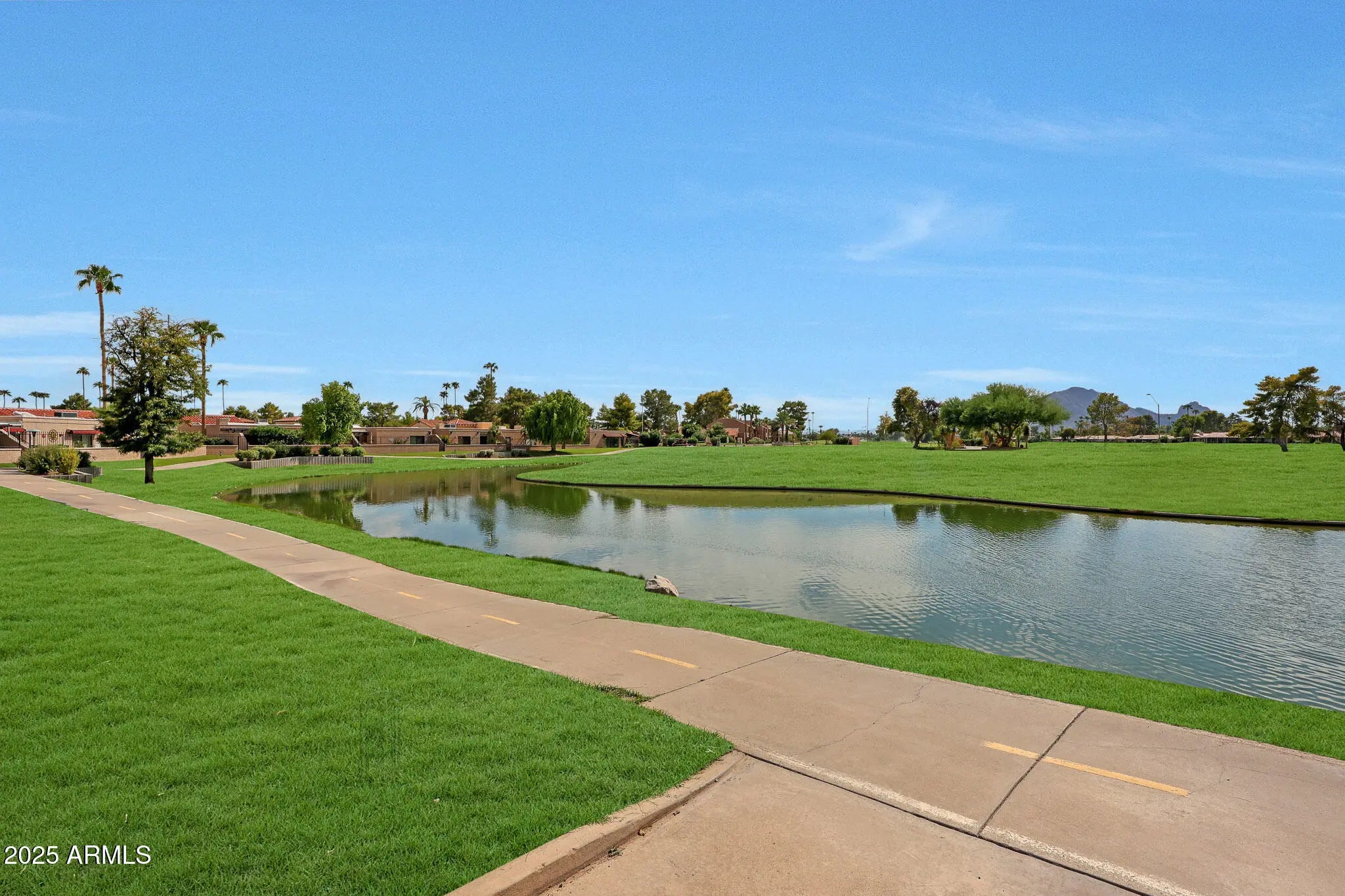Light pours in, walls open wide, and life flows seamlessly indoors to out in this single-level Santa Fe-style townhome in McCormick Ranch, Scottsdale. Set on a rare 4,958 sq ft lot backing green space, it offers Camelback Mountain views and the relaxed desert lifestyle today's buyers search for—sunlight, privacy, and walkable convenience. Bright, open living connects effortlessly to a private backyard retreat with turf, hardscape, a built-in fire pit, and a hand-textured patio bordered in a softly distressed brick finish—a design touch that adds rustic character and warm Southwest charm. Perfect for morning coffee, sunset gatherings, or easy entertaining under the desert sky. Inside, the all-new 2025 kitchen features a large quartz island, soft-close custom cabinetry, and Frigidaire stainless steel appliances. Peace-of-mind upgrades include two new Trane A/C units (2025; 10/12-year warranties), a new water heater (2024), and smooth Santa Fe texture throughout. Outstanding AirBnB or seasonal rental opportunity--the location is exceptional, across from one of two heated community pools and within walking distance to coffee, dining, and shopping. You're just steps from the 11-mile lakeside bike and walking path, McCormick Ranch Golf Club, and Mercado del Lago, with Chaparral Park and its popular dog park only 3 minutes away--ideal for pet owners and outdoor enthusiasts alike. Turnkey, low-maintenance, and ready to enjoy--just 10 minutes from Old Town Scottsdale and Salt River Fields. Select furnishings available for purchase on a separate bill of sale.