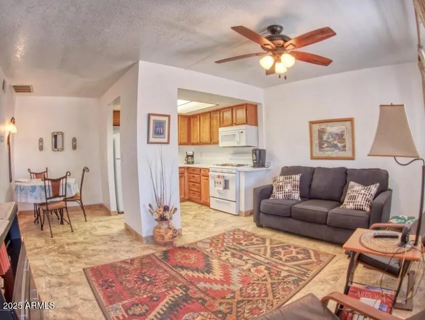 Welcome home to this FULLY FURNISHED one bedroom unit in the highly sought after 55+ community of Vista Hermosa in Florence, AZ! Enjoy all the amenities that this beautiful community offers. Walk in to all tile floors, with an open floor plan. Find a seamless connection with the dining, living space, and kitchen, perfect for visiting with friends and loved ones. The large bedroom consists of a comfortable queen size bed, perfect for relaxing. The split bathroom is conveniently located in the large bedroom. Ample closet space and storage. The on-site laundry room is located in the large storage room, attached to the unit. Sit outside and enjoy the beautiful views on the private patio. Close to shopping. Come check it out!