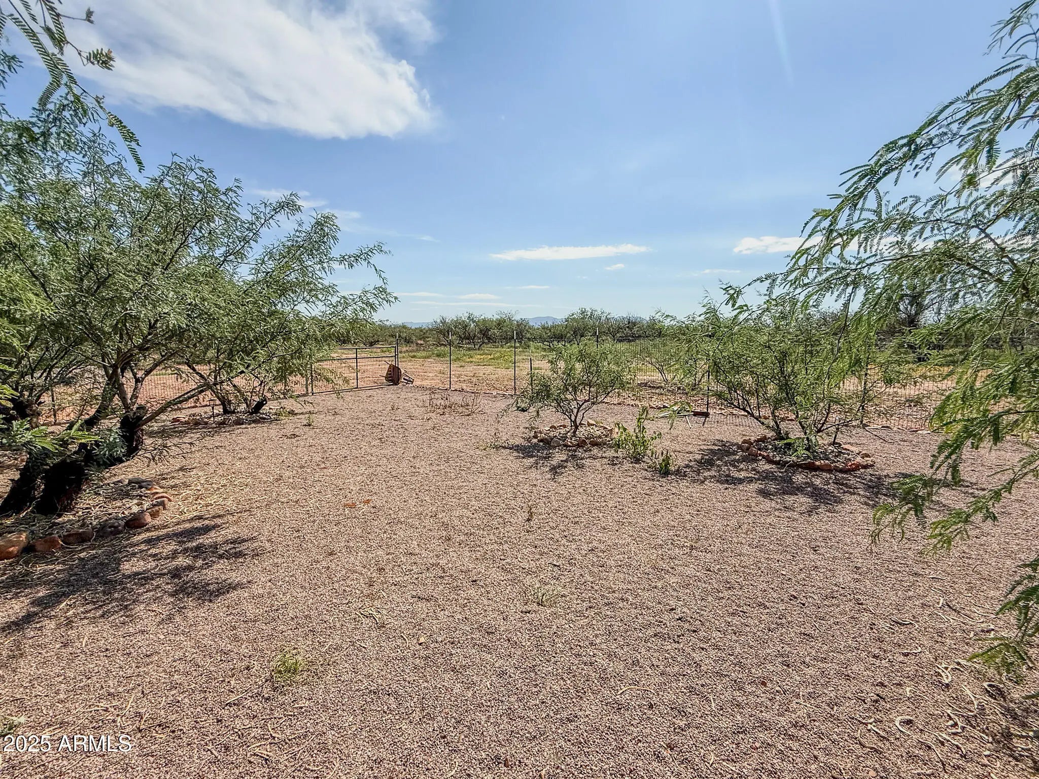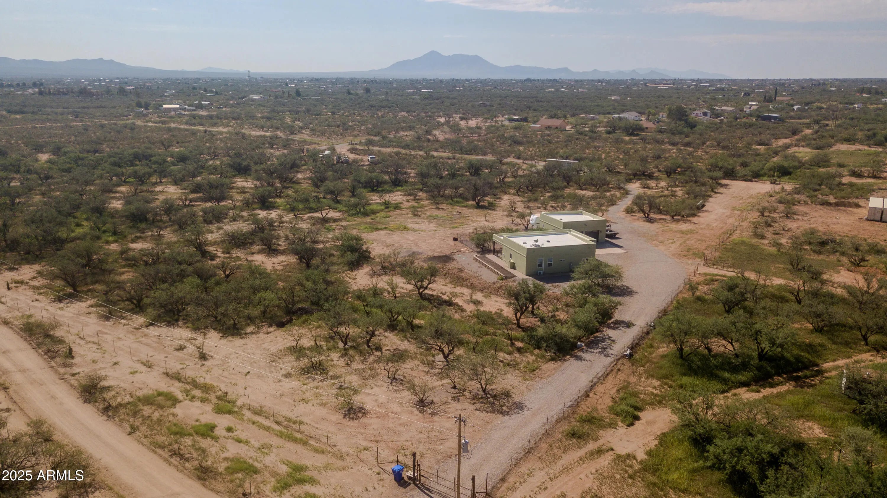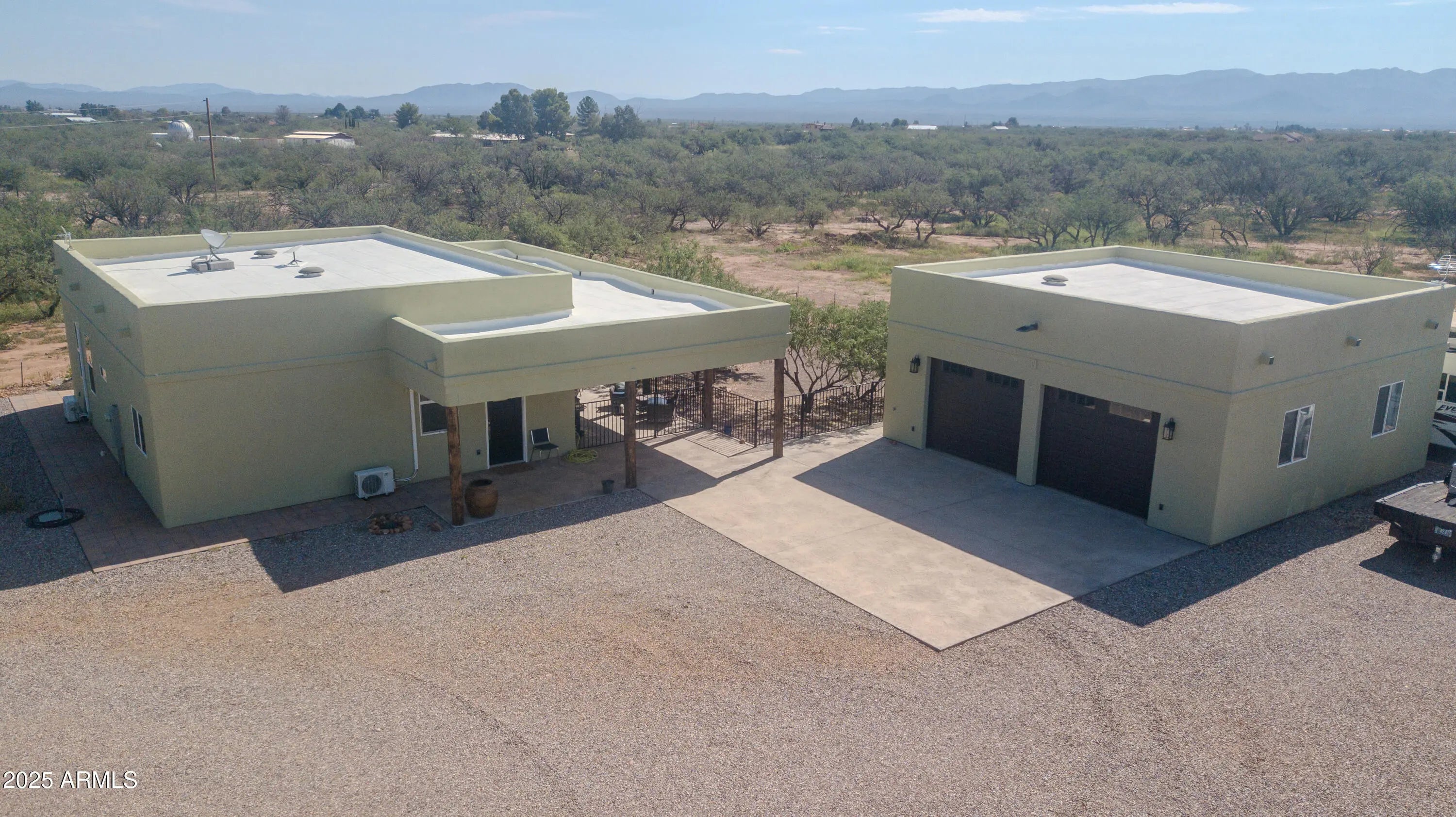 Experience the best of Arizona living in this custom Santa Fe-style home, perfectly situated on 4.09 acres with sweeping desert and mountain views. Designed with comfort and accessibility in mind, this 2-bedroom, 2-bath residence is fully ADA compliant and features an inviting open layout filled with natural light. The oversized two-car garage offers ample storage and workspace, while the fully fenced yard and perimeter fencing provide both privacy and security. A shared well and pump house are already in place—plumbed for a future casita, giving you room to expand and create your own retreat. With timeless Southwestern architecture, covered patio space for outdoor entertaining, and plenty of room to enjoy wide-open skies, this property combines modern convenience with serene serene country livingjust minutes from town.