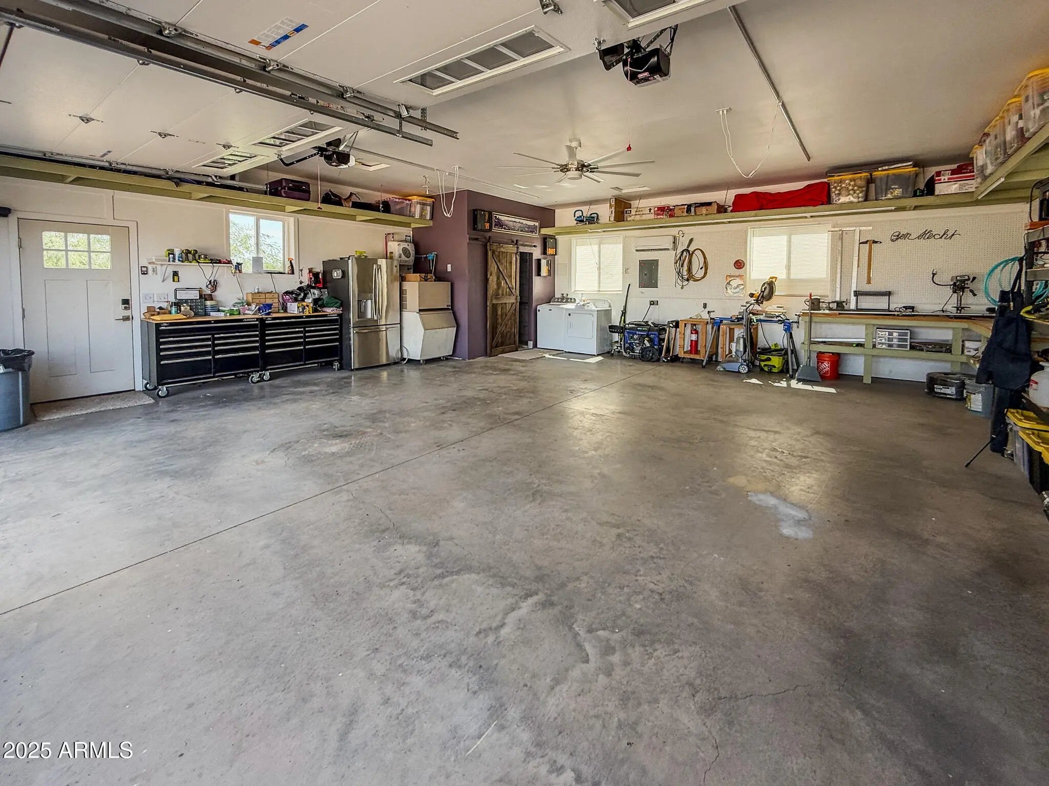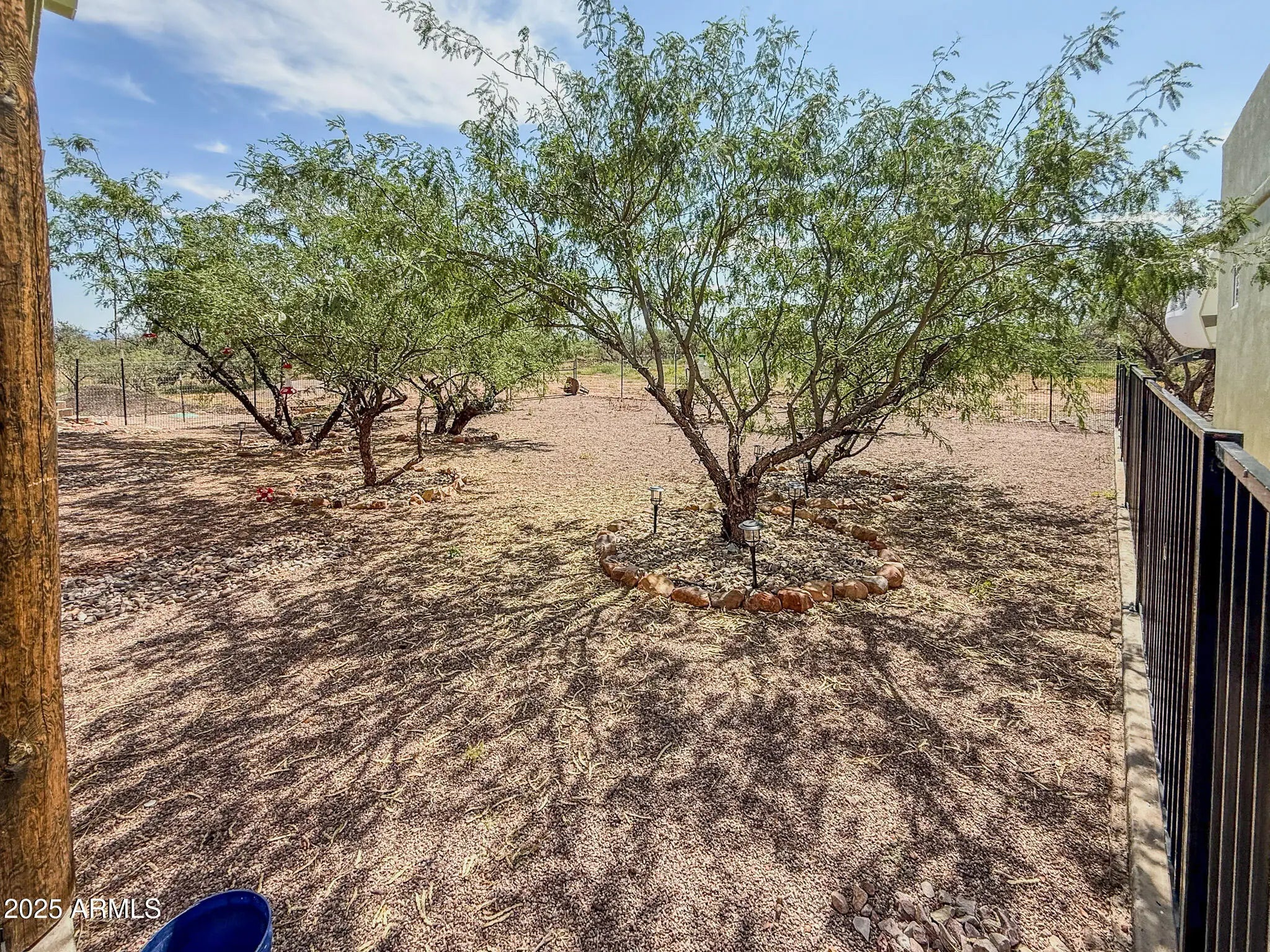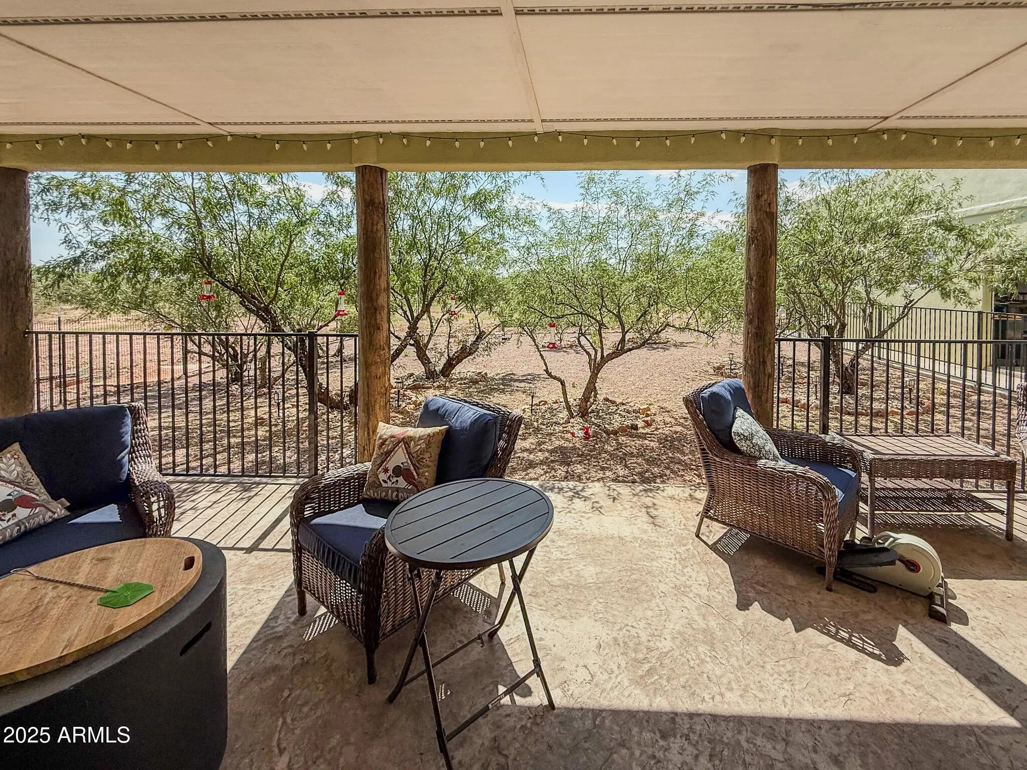 Experience the best of Arizona living in this custom Santa Fe-style home, perfectly situated on 4.09 acres with sweeping desert and mountain views. Designed with comfort and accessibility in mind, this 2-bedroom, 2-bath residence is fully ADA compliant and features an inviting open layout filled with natural light. The oversized two-car garage offers ample storage and workspace, while the fully fenced yard and perimeter fencing provide both privacy and security. A shared well and pump house are already in place—plumbed for a future casita, giving you room to expand and create your own retreat. With timeless Southwestern architecture, covered patio space for outdoor entertaining, and plenty of room to enjoy wide-open skies, this property combines modern convenience with serene serene country livingjust minutes from town.