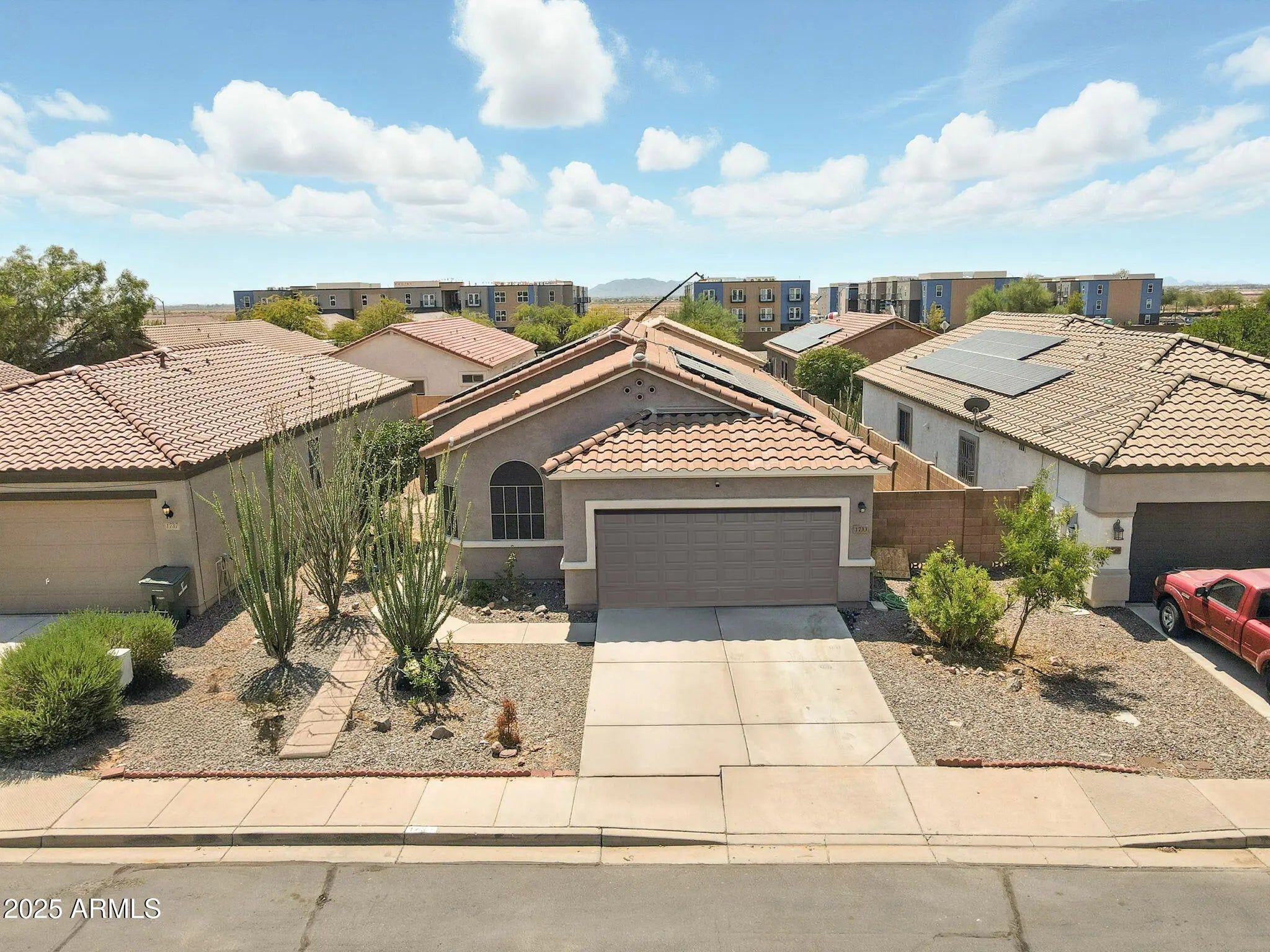 Move-in ready home in desirable McCartney Center with energy-efficient solar! Spacious layout offers an open great room, vaulted ceilings, and patio access. The kitchen features built-in appliances, ample cabinetry, walk-in pantry, and an island with breakfast bar. Split primary suite includes a walk-in closet, walk-in shower, and vanity area. Extra storage with multiple linen closets, inside laundry, and a 2-car garage. Enjoy the large backyard with a covered and extended patio—perfect for relaxing or entertaining. Fantastic location near I-10 for easy commuting!