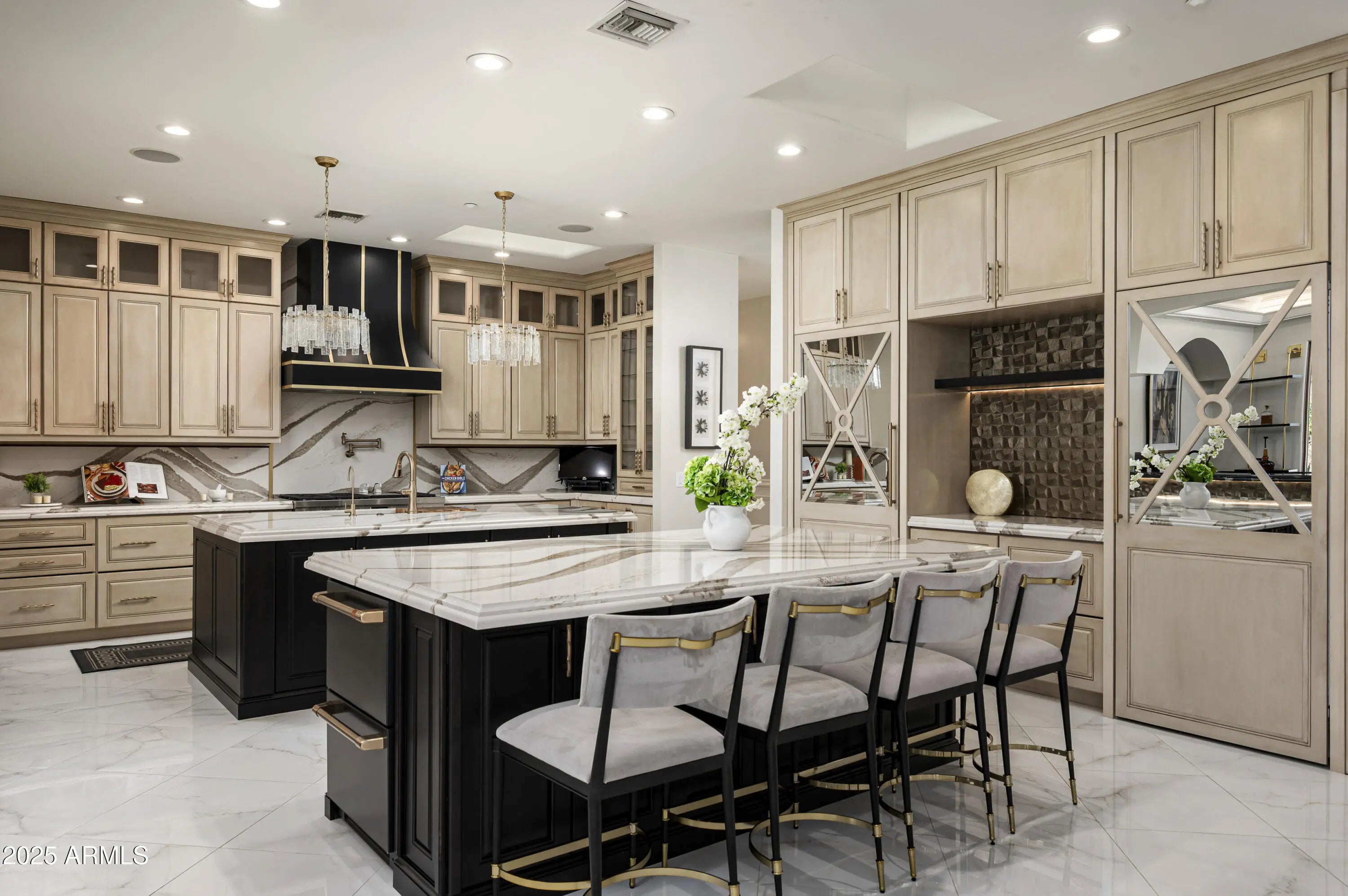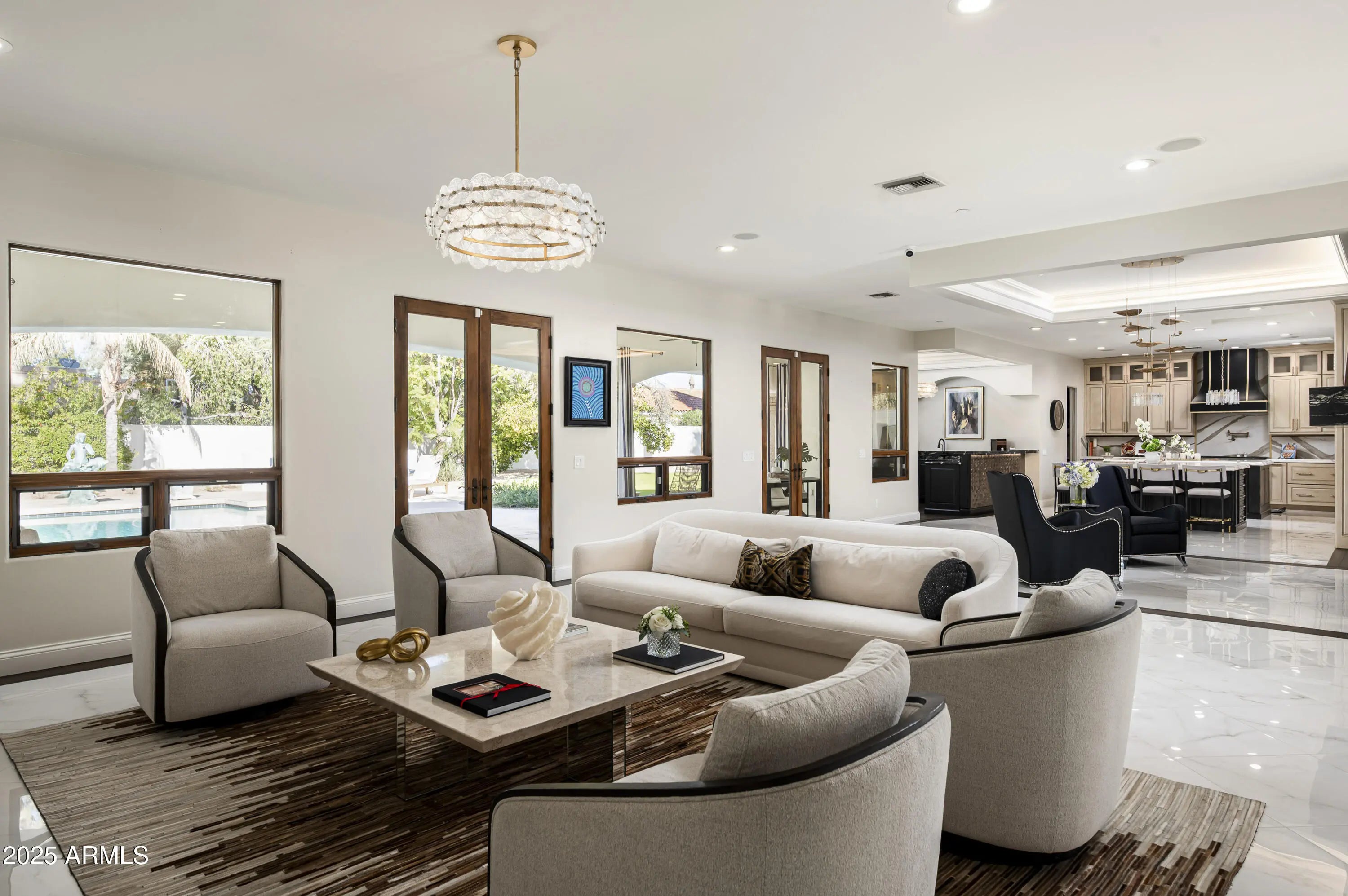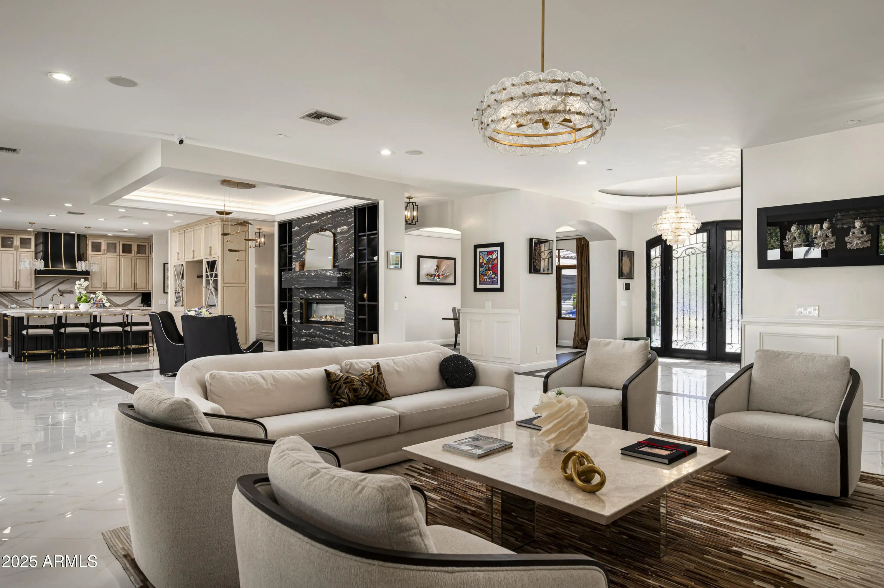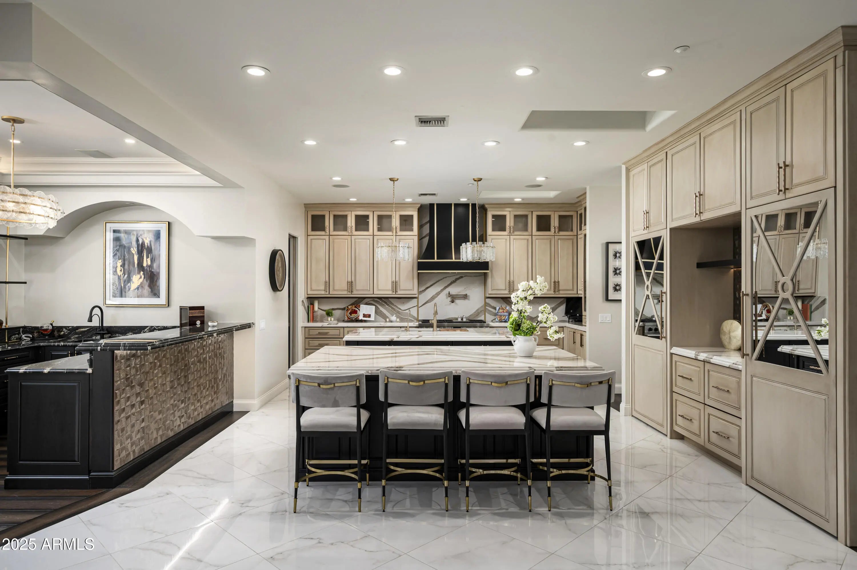 Experience elevated living in this fully remodeled 2024 luxury estate, ideally located just minutes from upscale dining, shopping, and Sky Harbor Airport. No detail has been overlooked in this comprehensive renovation, offering a seamless blend of modern design, comfort, and high-end finishes throughout. The home welcomes you with stunning new flooring, custom black granite inlays, designer lighting, and expansive living spaces. The completely reimagined kitchen is a chef's dream, featuring custom cabinetry, quartz countertops, dual islands, premium Viking, Wolf, and Sub-Zero appliances, and a walk-in pantry with dedicated cooling and reverse osmosis. The primary suite is a private retreat with custom lighting, a custom walk-in closet and a spa-like bathroom with quartz surfaces, LED mirrors, and luxury tile. Enjoy a redesigned bar and sitting room, and a expanded laundry with a total of eight washers/dryers throughout the house. Outside, enjoy a resort-style backyard with smart irrigation, pool system and outdoor entertainment setup. For car lovers, the property offers a 6-car garage and large RV parking, making it a rare find for auto enthusiasts. The guest house and smart-home systems,including RING and Nest,complete this exceptional, turn-key masterpiece. For a complete list of all upgrades and features, please see the documents section of the listing.