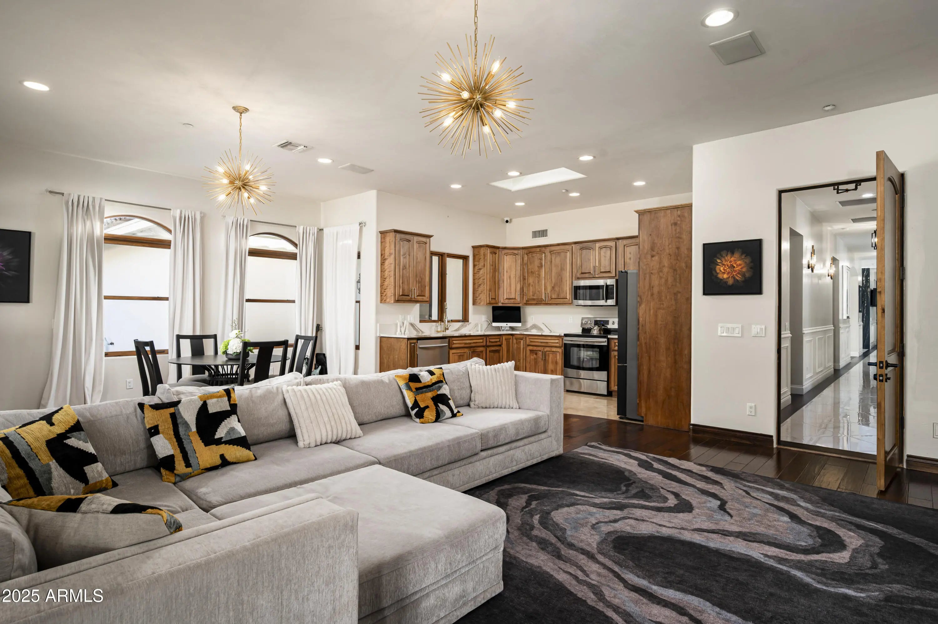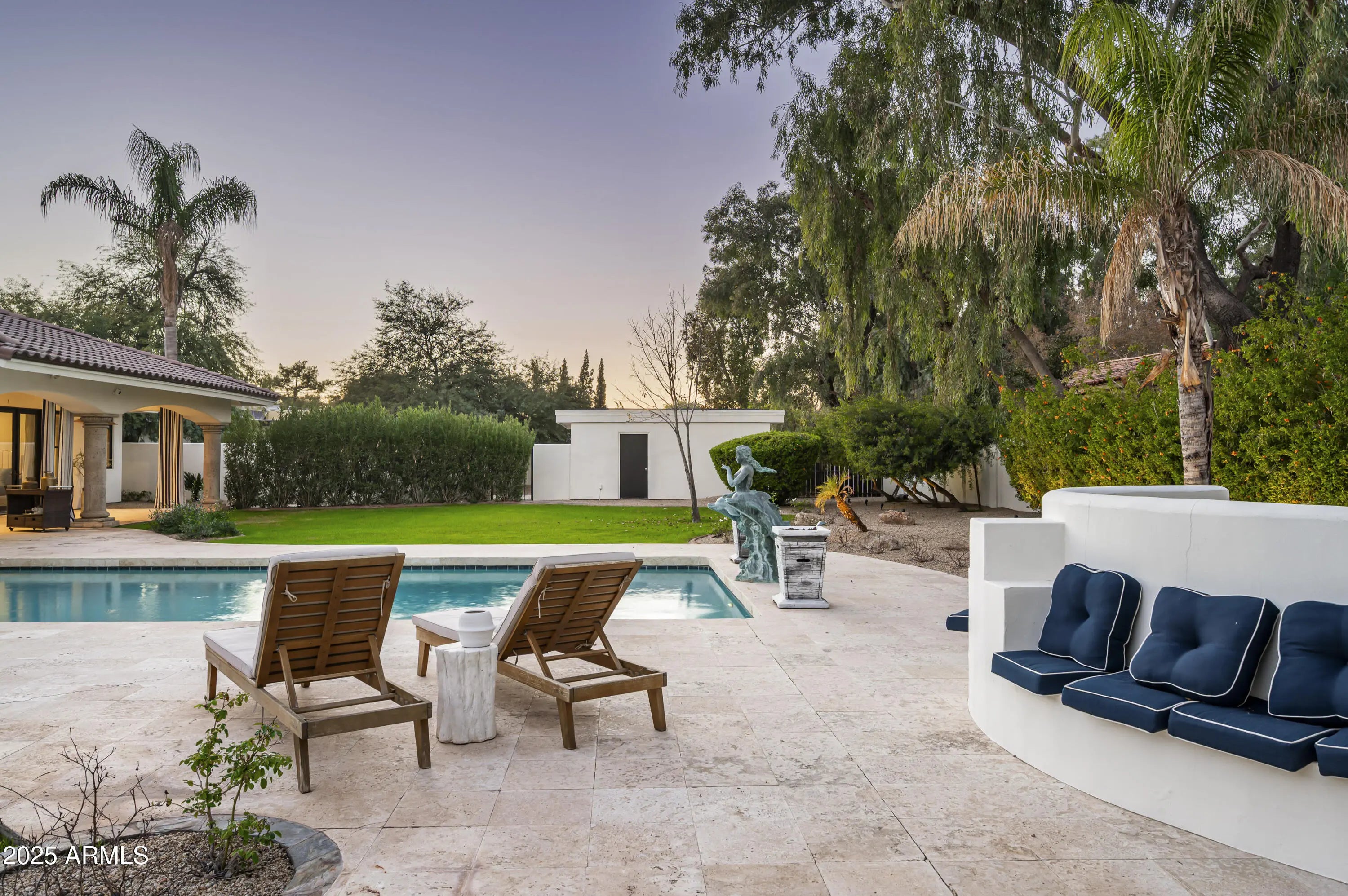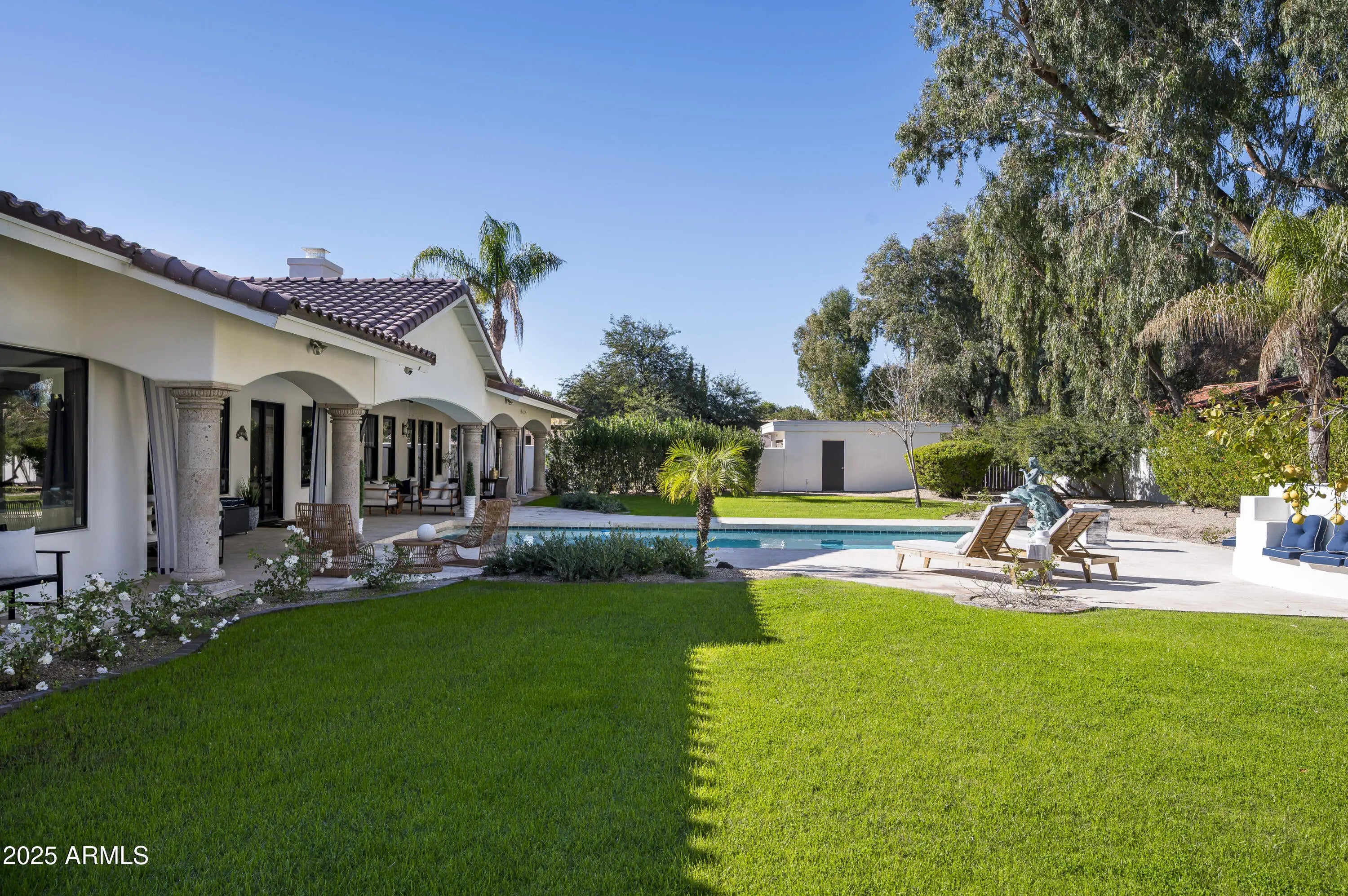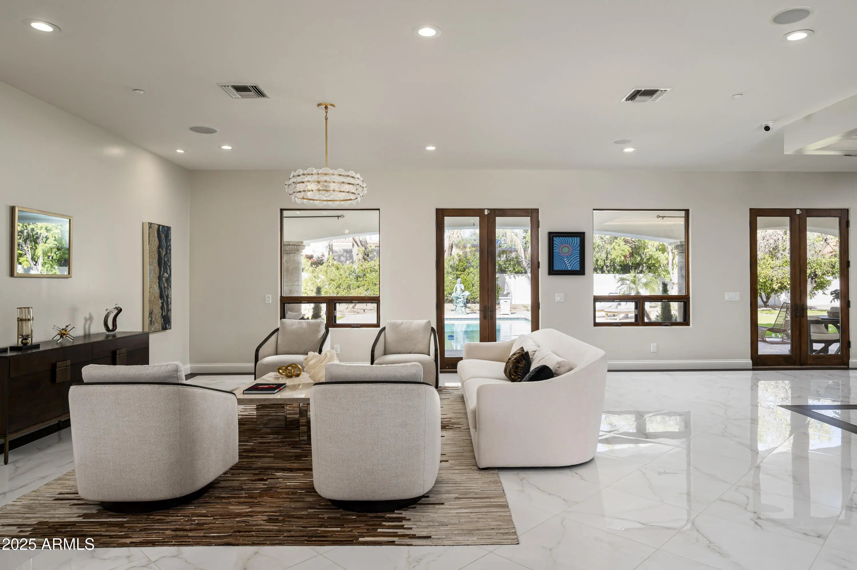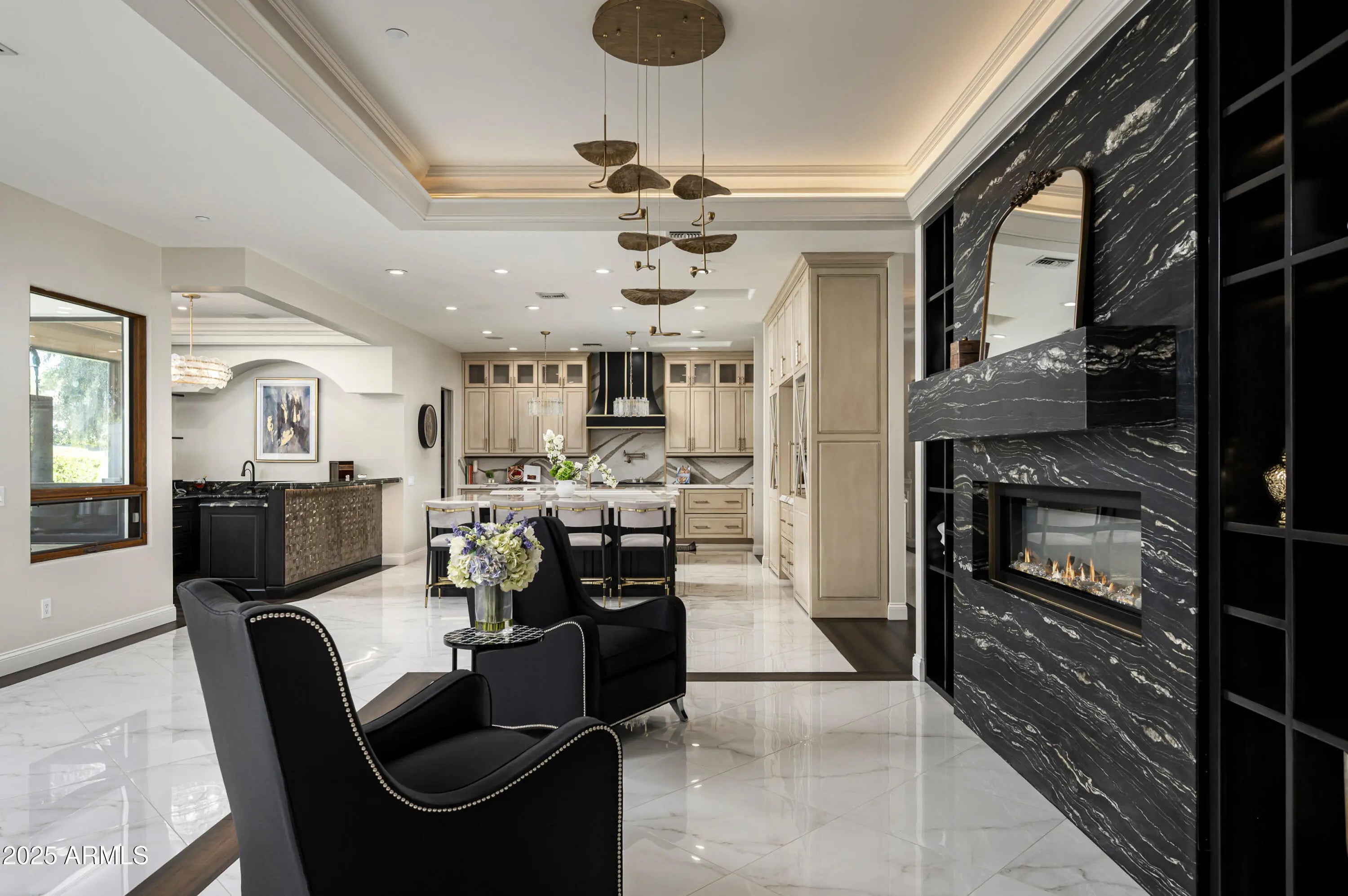 Experience elevated living in this fully remodeled 2024 luxury estate, ideally located just minutes from upscale dining, shopping, and Sky Harbor Airport. No detail has been overlooked in this comprehensive renovation, offering a seamless blend of modern design, comfort, and high-end finishes throughout. The home welcomes you with stunning new flooring, custom black granite inlays, designer lighting, and expansive living spaces. The completely reimagined kitchen is a chef's dream, featuring custom cabinetry, quartz countertops, dual islands, premium Viking, Wolf, and Sub-Zero appliances, and a walk-in pantry with dedicated cooling and reverse osmosis. The primary suite is a private retreat with custom lighting, a custom walk-in closet and a spa-like bathroom with quartz surfaces, LED mirrors, and luxury tile. Enjoy a redesigned bar and sitting room, and a expanded laundry with a total of eight washers/dryers throughout the house. Outside, enjoy a resort-style backyard with smart irrigation, pool system and outdoor entertainment setup. For car lovers, the property offers a 6-car garage and large RV parking, making it a rare find for auto enthusiasts. The guest house and smart-home systems,including RING and Nest,complete this exceptional, turn-key masterpiece. For a complete list of all upgrades and features, please see the documents section of the listing.