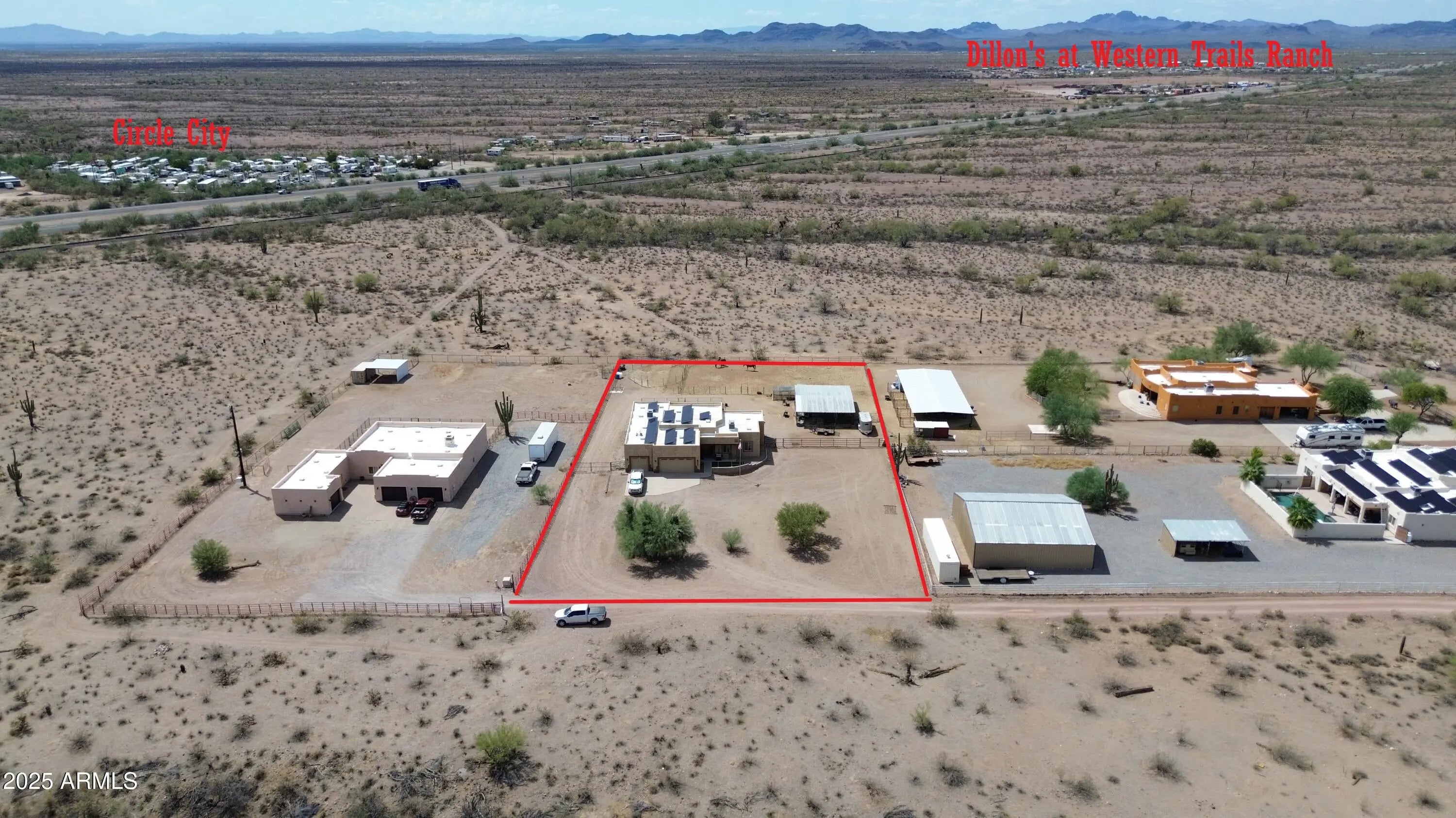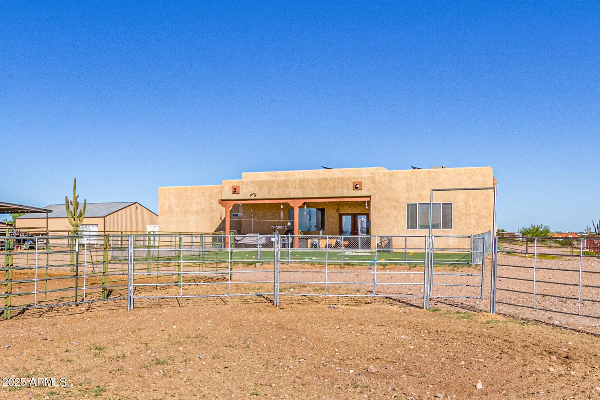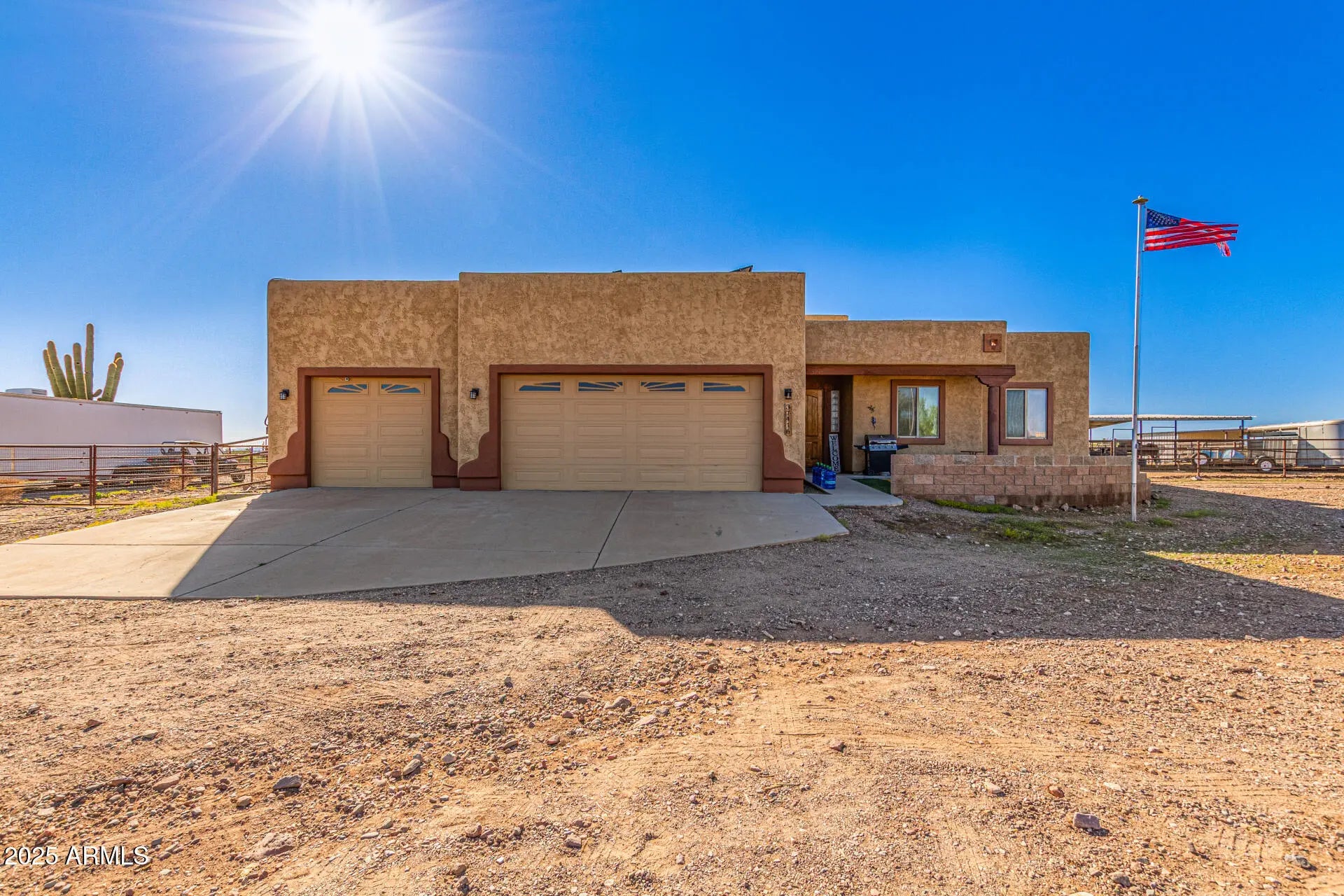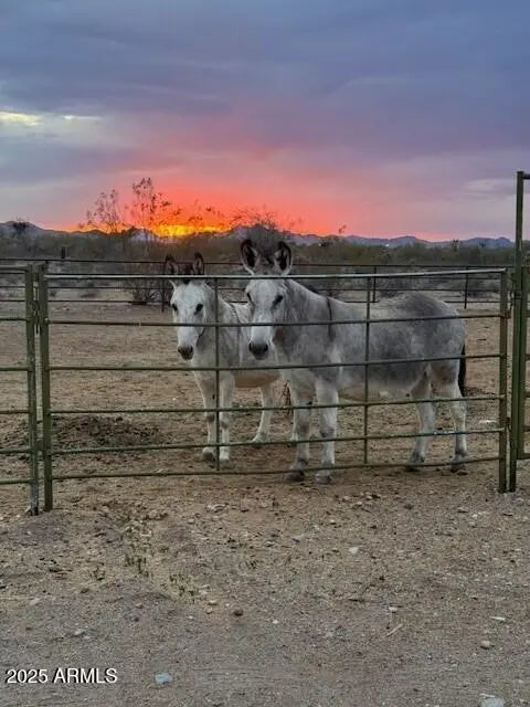 Custom Territorial-style home. Bring offers motovivated seller! on 1.25 acres with stunning mountain, sunrise & sunset views. Open split floor plan with soaring ceilings, granite kitche. Primary suite has dual walk-in closets & dual-head walk-in shower. 4 bedrooms, 2 Bath. Oversized 3-car garage fits full-size trucks. Horse setup includes a quality 4-stall mare motel with large stalls & ride-out access. Minutes to all the Wickenburg arenas. Property also offers power & water for RV. Peaceful, private country living with the true Western lifestyle!