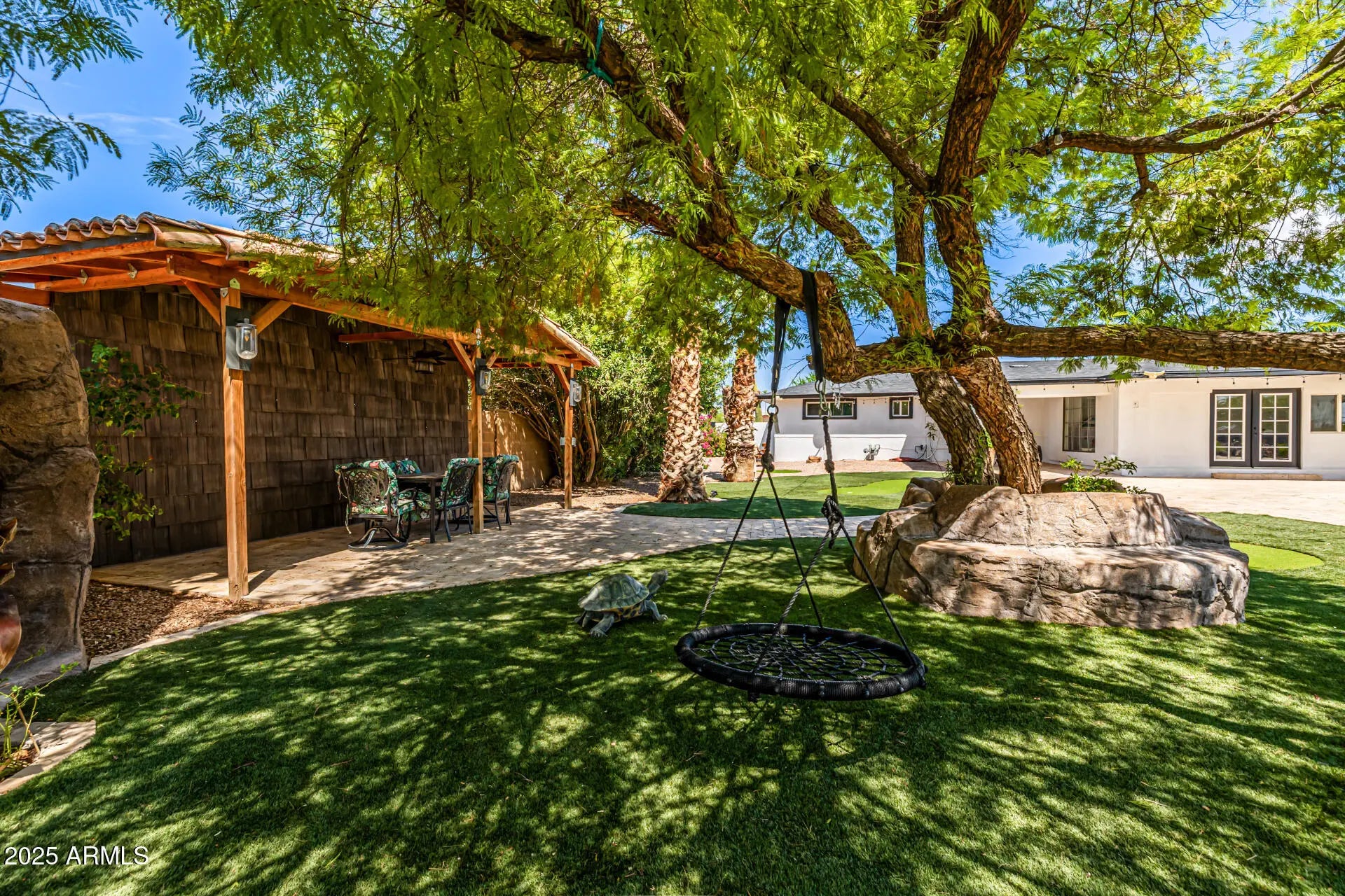 WELCOME TO PARADISE! Such an incredible and unique property!! NEW PRICE!! SELLER ALSO CAN CONTRIBURE TO CLOSING COSTS! 2 lots converted into one!! Host huge outdoor gatherings, store your RVS and toys and even bring your HORSES! NO HOA and located in a COUNTY ISLAND! Over 34,000 sq ft lot! 4 bed/2bath with a huge Arizona room with bar that looks out to the incredible pebbletech POOL with a waterfall, slide and travertine deck! Multiple GAZEBOS, outdoor shower, turf with putting greens, playground for the kids...The backyard is a dream! Inside is turn key.....NEW KITCHEN with quartz countertops, tile floors, remodeled bathrooms and more! NEWER AC! This property is a rare Mesa gem! Close to freeways and shopping. tour today!! with water features. Whether it's quiet evenings or lively weekends, this home delivers it all. Why wait? This is the lifestyle you've been searching for!