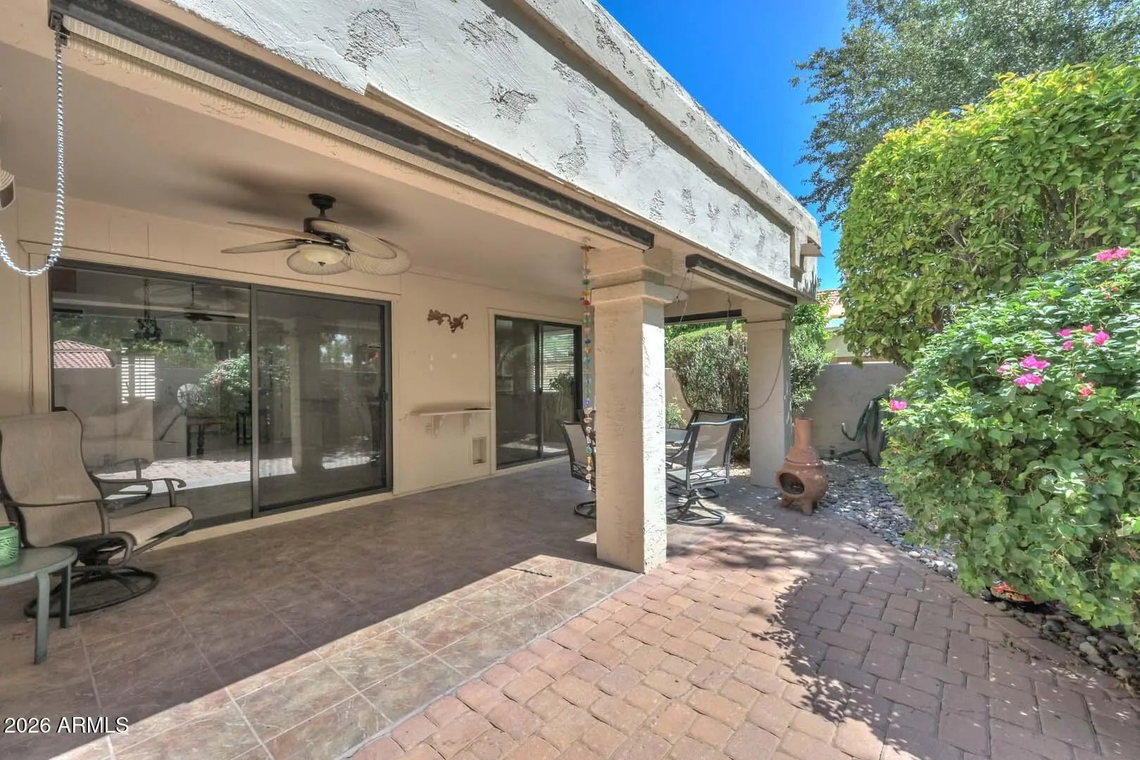 Unique remodeled &immaculate end unit patio home with Great Room,2.5 baths,office/den, spacious primary bedroom & private ensuite guest bedroom. Chef's kitchen open to living room, granite counter tops, island, wetbar, builtin wine fridge.Close to community pool.Gated front courtyard &private backyard with cov'd patio, citrus trees.Recent updates:int.paint '26, hot H2O '24, AC 4yrs.bath surrounds'21. Oversized garage w/cabinets & golf cart ramp.Westbrook Village is an Active Adult age restricted* (40+, rentals 55+) community-2 golf courses,restaurants,2 rec centers,htd pools,tennis,pickle ball,fitness center,social &hobby clubs. EZ access to 101,Spring Training,restaurants, shopping.Secure RV parking -subject to avail.* HOA for specific age requirements.Partially furnished-move-in ready