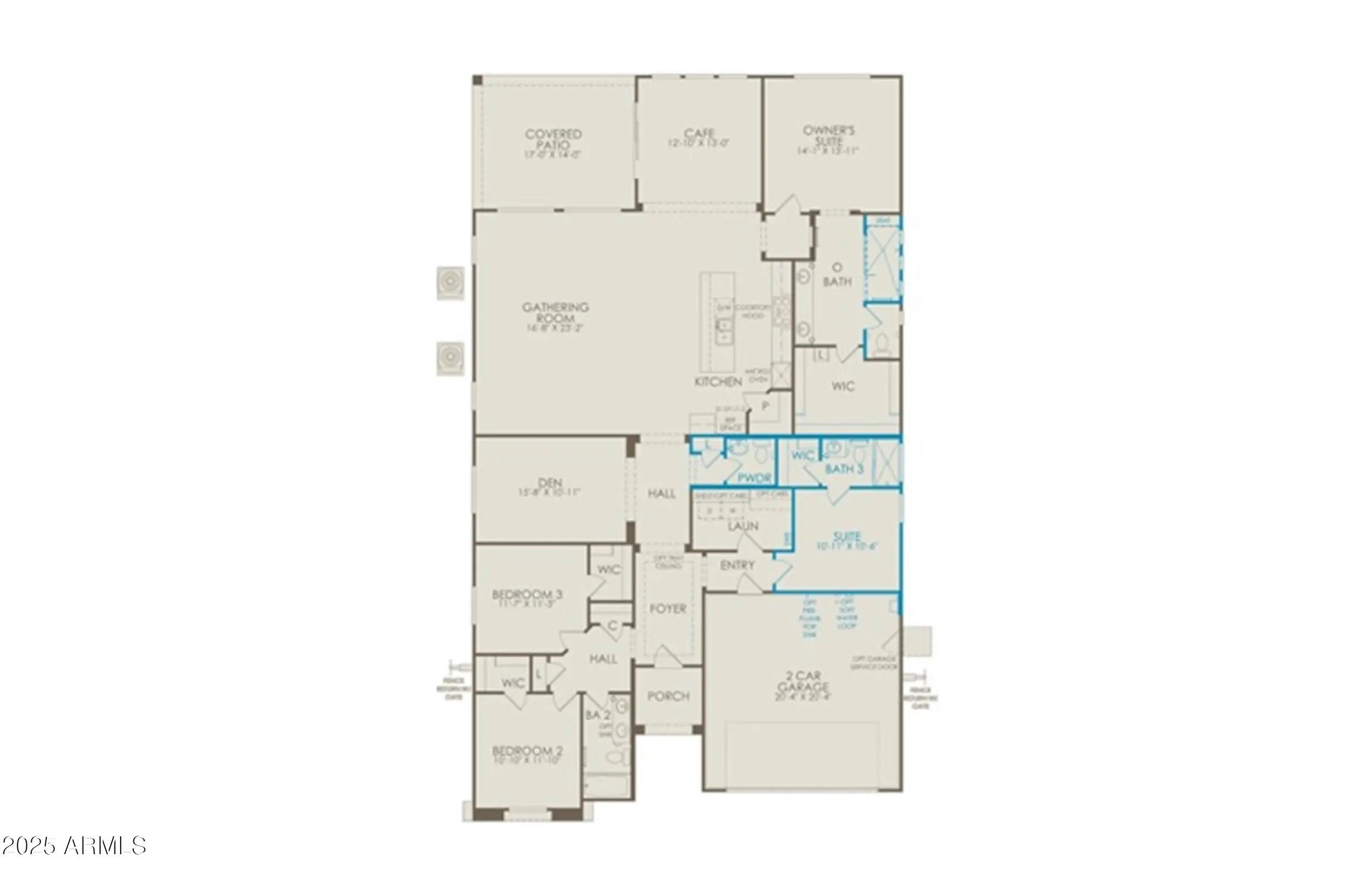 Up to 3% of base price or total purchase price, whichever is less, is available through preferred lender to be used toward closing costs, pre-paids, rate buy downs, &/or price adjustments. The Parklane - elevated single-level luxury home is a spacious 4-bedroom, 3.5-bath home with a den and offers a refined open-concept design. The chef's kitchen features a luxe package with gas cooktop, stunning 42'' cabinets, and quartz countertops overlooking the gathering room and café. The extended owner's suite includes a low-threshold glass walk-in shower and is thoughtfully split from secondary bedrooms. Nestled on a premium south/west-facing elevated homesite with sweeping views.