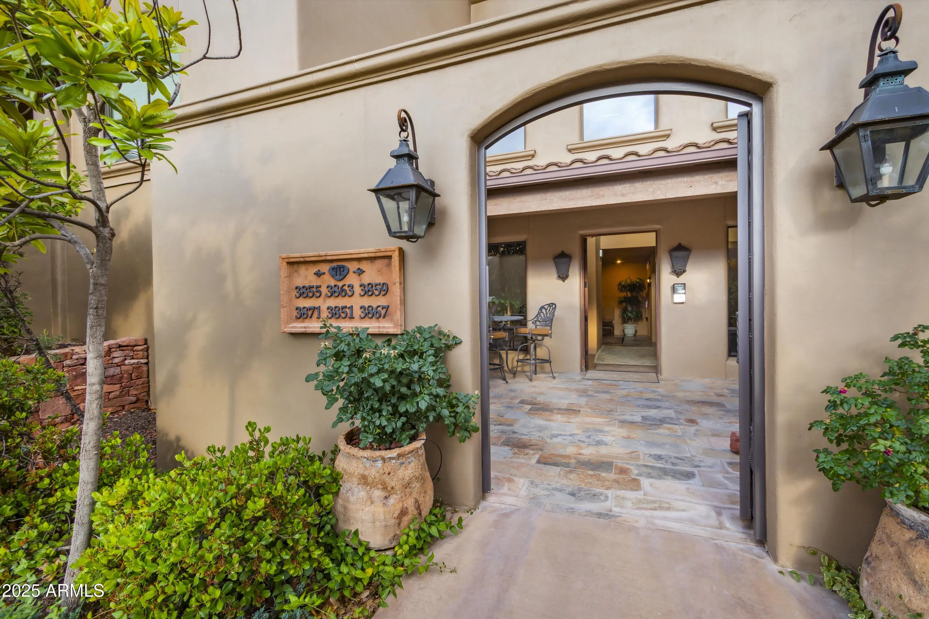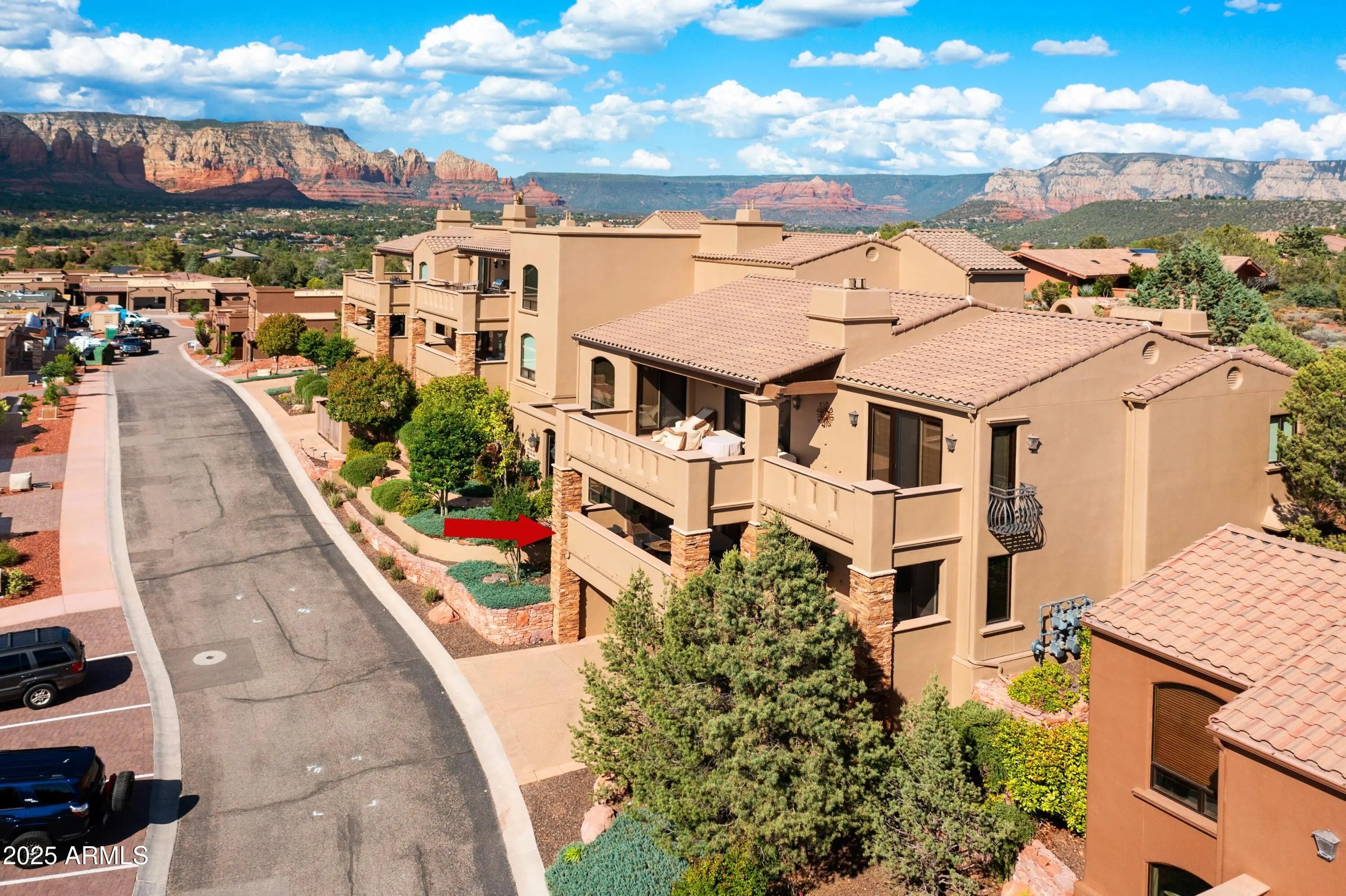 Welcome to 3867 Portofino Way--an exceptional opportunity to own a luxury private residence nestled in the heart of Sedona's exclusive Park Place community. Designed by award-winning architect Don Woods, this spacious residence is a rare blend of architectural elegance, privacy, and natural beauty. The open concept of the great room easily accommodates a full dining set, entertainment center, and relaxed seating, all with panoramic views from the floor-to-ceiling windows. Each room, including both bedrooms and the living area, opens to the expansive view terrace for seamless indoor-outdoor living. See supplements for upgrades in this unit Spanning 2042 square feet with two bedrooms and two baths this home features luxury finishes throughout: " 18.5 x 18.5 Porcelain tile flooring throughout. " 8' Knotty Alder entry doors. 7' solid core interior doors throughout the interior. " Knotty Alder Kitchen & Bathroom Cabinetry. " Professional Series Viking kitchen appliances, a wine refrigerator built-in to the chef's island, and a Whirlpool washer and dryer are all included in the purchase price. " Large laundry room, utility closet with newer tankless water heater, and ample cabinetry throughout. " Beautiful granite kitchen countertops with breakfast bar. A separate breakfast nook and formal dining area add comfortable areas for entertainment. " Mosaic stone backsplashes, recessed lighting, and custom cabinetry. " Kohler plumbing faucets and fixtures throughout. " Porcelain tile bath vanities and shower surround. " Natural gas fireplace with custom wood mantle. " Pre-wired for surround sound, and ceiling fans added in the living room and both bedrooms. " Secure underground parking garages. " Elevator access to elegantly appointed common lobbies with gorgeous slate flooring just a few steps away from the graceful entry of 3867 Portofino Way. " Spa-inspired primary suite with soaking tub, walk-in shower, dual vanities, and a large dressing room/closet with built-in cabinetry. " Community Water Softener provided to all units. Water (both inside and outside) is included in the HOA Fee. Look for Expenses covered by the HOA fee under the document tab of this MLS listing. " A furniture package is available by a separate Bill of Sale, excluding most of the artwork. Additional premium features include: " Elevator access from the underground gated garage, where you will find your designated 2-car wide parking spaces in addition to your private storage room. " Sound-insulated construction and high-efficiency doors/windows throughout the building. Park Place offers a low-maintenance, lock-and-leave lifestyle with HOA services that cover nearly all exterior and common area maintenance, including: " Building insurance and casualty insurance on common grounds. Legal, accounting, management, and other professional fees. " Electricity for interior lobbies, hallways, elevators, and garages. Exterior electricity for landscape lighting, privacy gates, and other common elements. " Exterior maintenance of roof, stucco, terraces, and landscaping of common areas. " Exterior window cleaning twice a year. " Water included for interior and exterior, maintenance of the community soft water system for condo units, trash-recycling collection, and common area utilities " Security gates, fountain maintenance, road maintenance, and elevator service. " Janitorial services for lobbies, hallways, and garages. Indoor potted plant service, and 24-hour emergency contact. " Fire system maintenance and monitoring. Conveniently located in West Sedona, Park Place offers quick access to world-class hiking and biking trails, medical facilities, and everyday amenities and just a block from Sedona Medical Center. The HOA requires a minimum rental term of one year, so there are no short-term rentals! Set securely in a double-gated building with just a couple of steps up from the common lobby to the private entry of the home. This private, corner unit boasts views of Cockscomb, Thunder Mountain, and other renowned Sedona red rock formations. Residents enjoy access to the brand-new clubhouse, located just across the street, which features a fully equipped fitness center, hot tub, event space with a kitchen, two private bathrooms, and a designated dog park. Beautifully landscaped common areas invite year-round enjoyment, fostering a welcoming and neighborly environment. This is more than just a home; it's a statement of refined living in one of Sedona's most prestigious enclaves. Whether you're seeking a full-time residence or an elegant retreat, 3867 Portofino Way delivers comfort, style, and effortless convenience. Schedule your private tour todaythis extraordinary property awaits your most discriminating inspection.