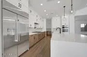 BRAND NEW single level 5 bed, 4.5 bath with study and 4 car garage; gourmet kitchen with GE Monogram appliances including 42'' built-in refrigerator, huge waterfall island, accent lighting, custom tile backsplash and flooring, gorgeous upgraded cabinets, both an 8' and 16' sliding glass door exiting to an extended covered patio and large private backyard; secondary beds with walkin closets and huge walkin closet in owner's bath; owner's bath has gorgeous tiled super shower; 8' side gate outside; 2x6 construction and extensive new home warranty.