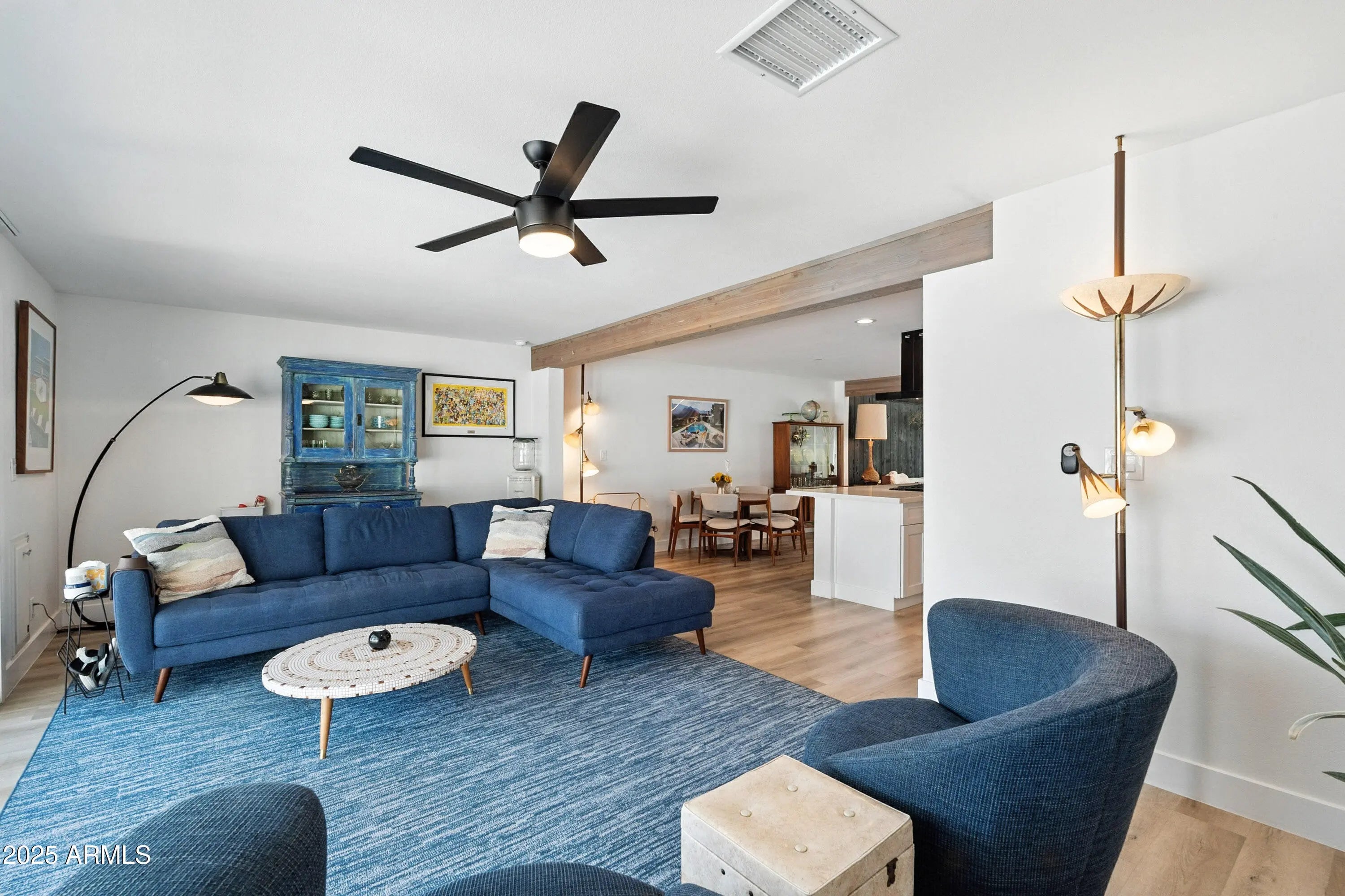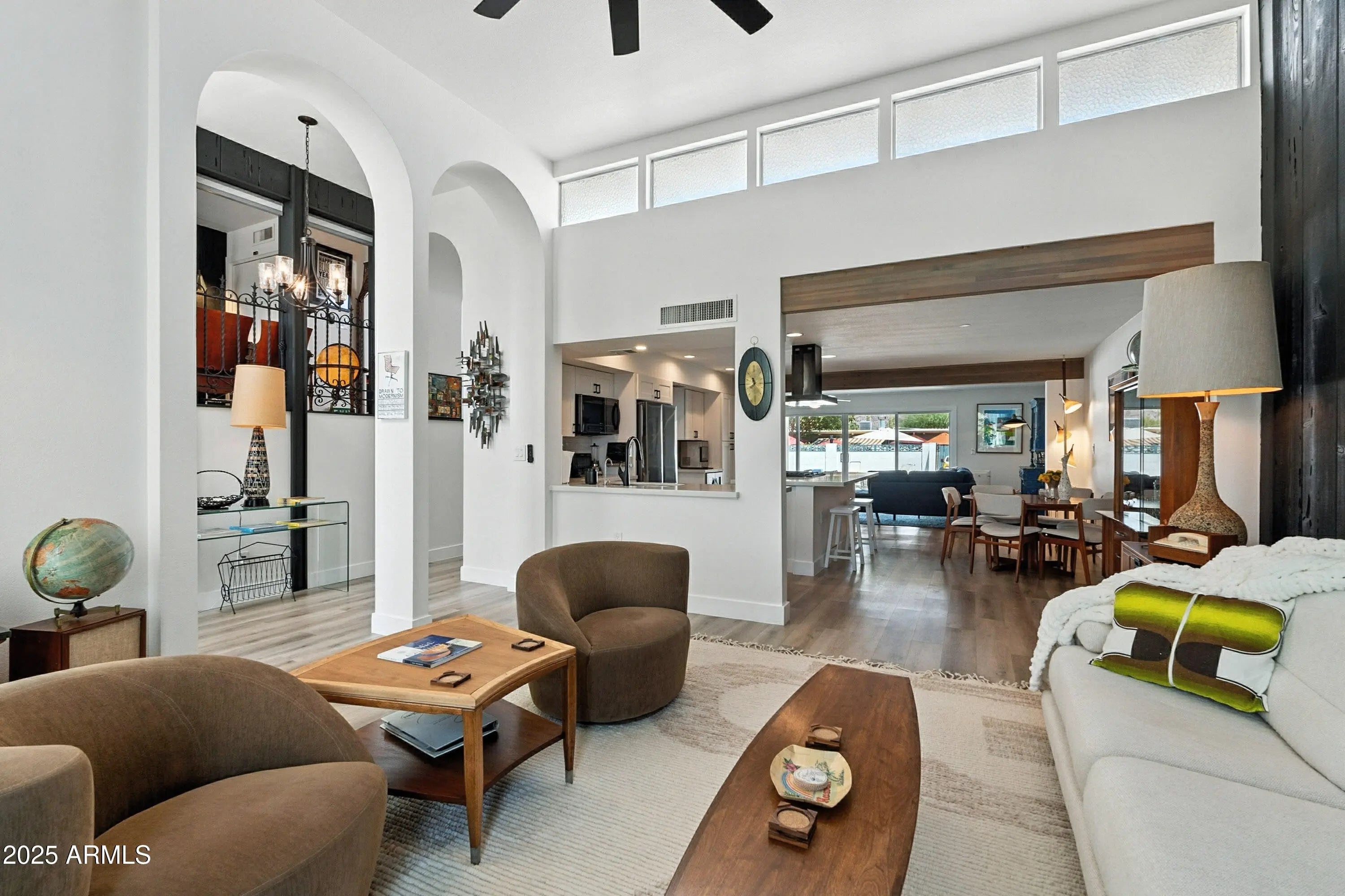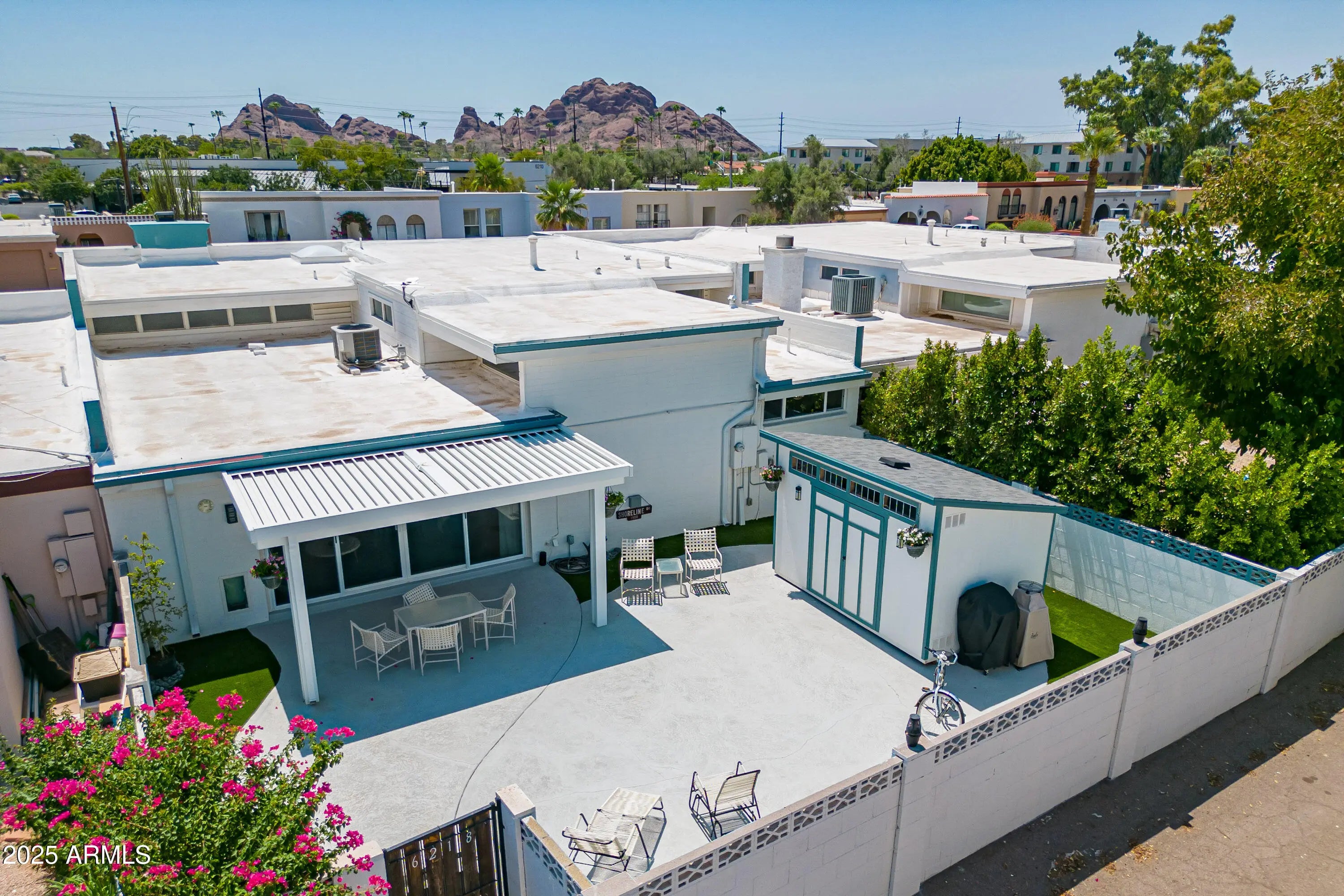 Classic mid century modern style home nestled between Papago Peak & Camelback mountain. This Ralph Haver designed 3bd 2ba has gorgeous updates and style throughout. Interior features include plank flooring, open floorplan pull out cabinet shelves, quartz countertops, and stainless appliances. Enjoy relaxing at the community pool or hosting gatherings in the private backyard with a covered patio & plenty of storage. The spacious primary suite and versatile bedrooms provide comfort and convenience. This home blends functionality with designer touches, ideal for everyday living and entertaining. Close to dowtown Phx Sky Harbor & Old Town Scottsdale this quiet community is amazing. Come see this wonderful home in the sought after 55+ community of Golden Keys.