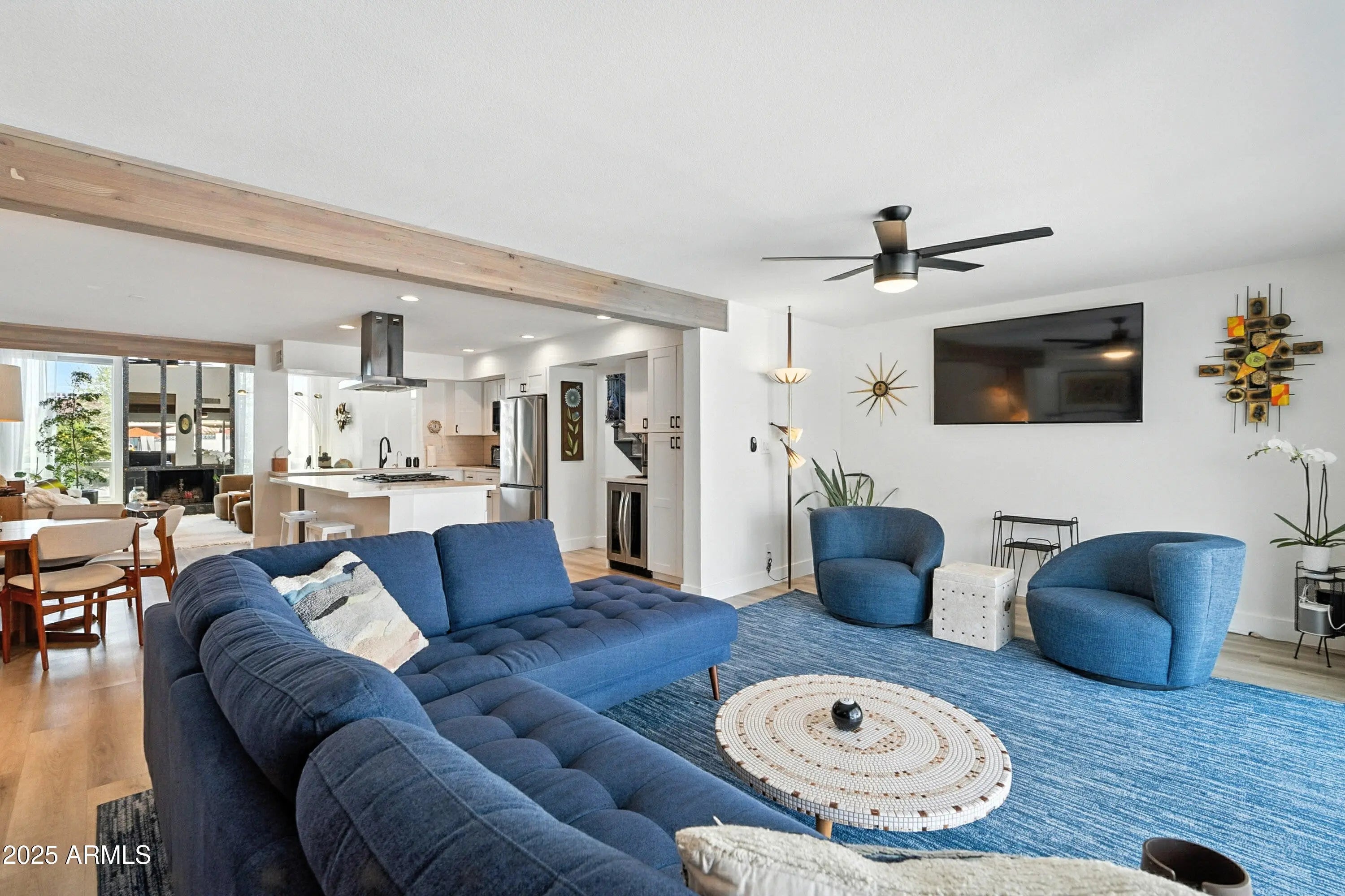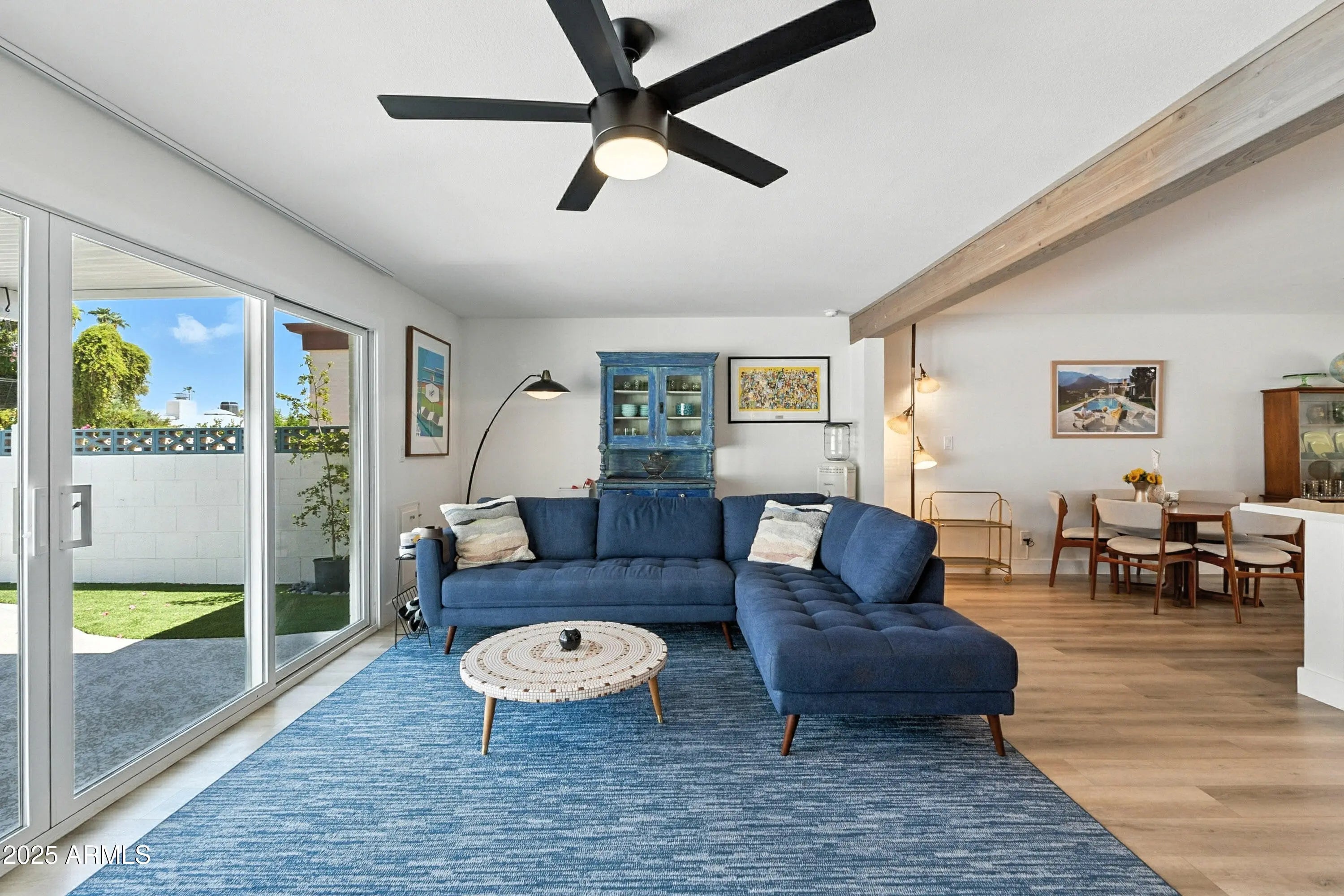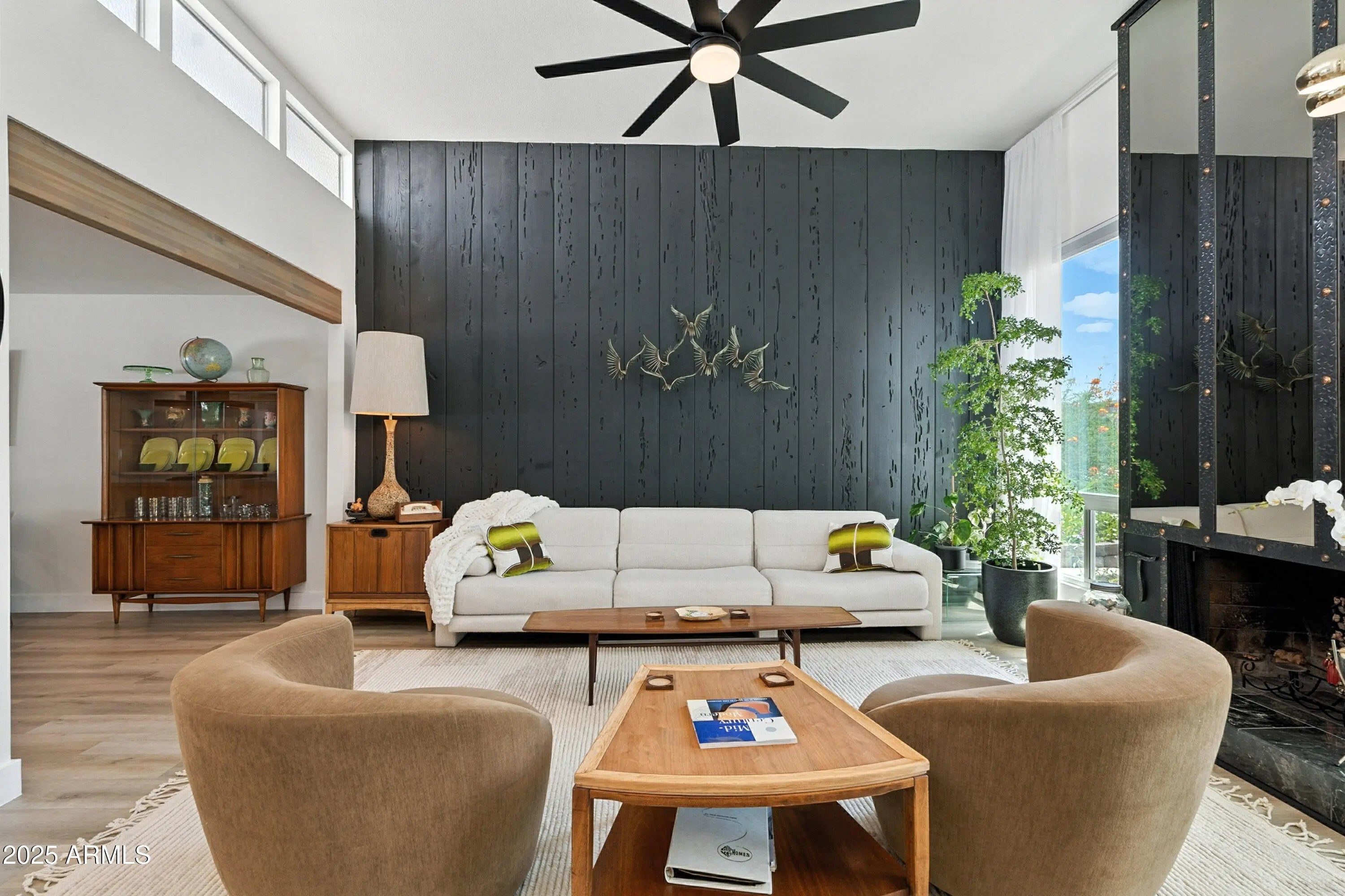 Classic mid century modern style home nestled between Papago Peak & Camelback mountain. This Ralph Haver designed 3bd 2ba has gorgeous updates and style throughout. Interior features include plank flooring, open floorplan pull out cabinet shelves, quartz countertops, and stainless appliances. Enjoy relaxing at the community pool or hosting gatherings in the private backyard with a covered patio & plenty of storage. The spacious primary suite and versatile bedrooms provide comfort and convenience. This home blends functionality with designer touches, ideal for everyday living and entertaining. Close to dowtown Phx Sky Harbor & Old Town Scottsdale this quiet community is amazing. Come see this wonderful home in the sought after 55+ community of Golden Keys.