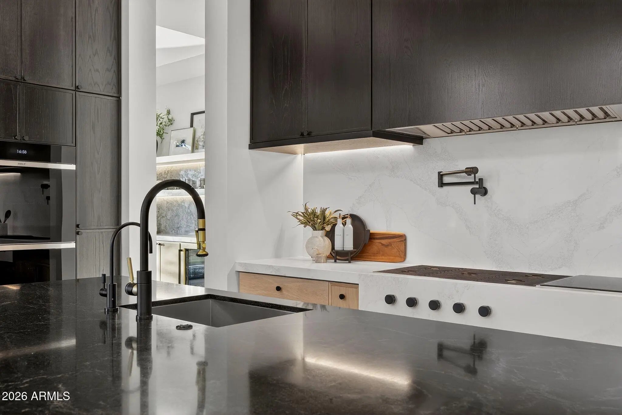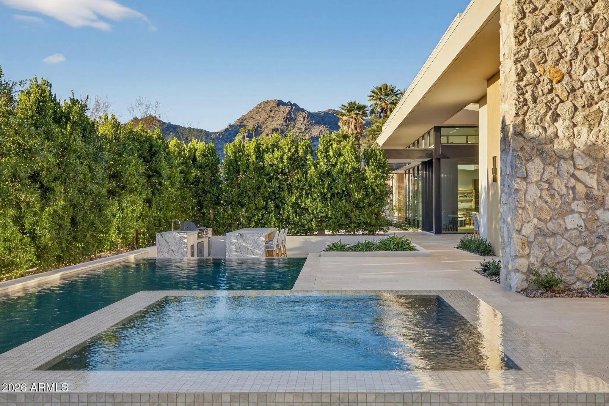 Introducing Solara, a brand-new luxury residence in Paradise Valley by UR Development. This 6,643 sq ft home features 6 beds, 6 baths, and unmatched design—crafted entirely in-house for superior quality. The grand great room showcases marble floors and a striking multi-sided fireplace. A chef's kitchen anchors the space with a bold black wood island, Black Leather Quartz, and Calacatta Waves Quartz countertops. Enjoy seamless indoor-outdoor living, a private front-yard pool, firepit, and a stylish bar with wine cellar. Solara is more than a home—it's a refined statement of luxury in one of Arizona's most exclusive neighborhoods.