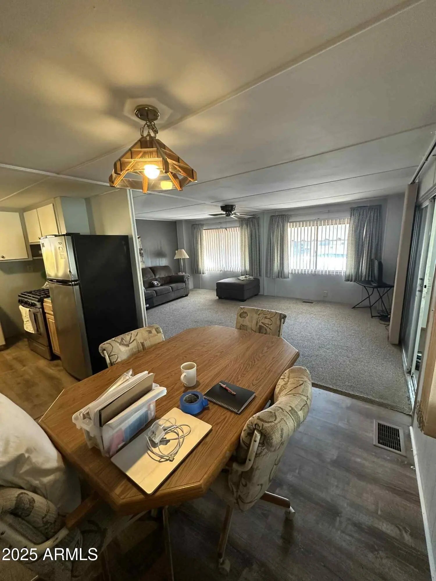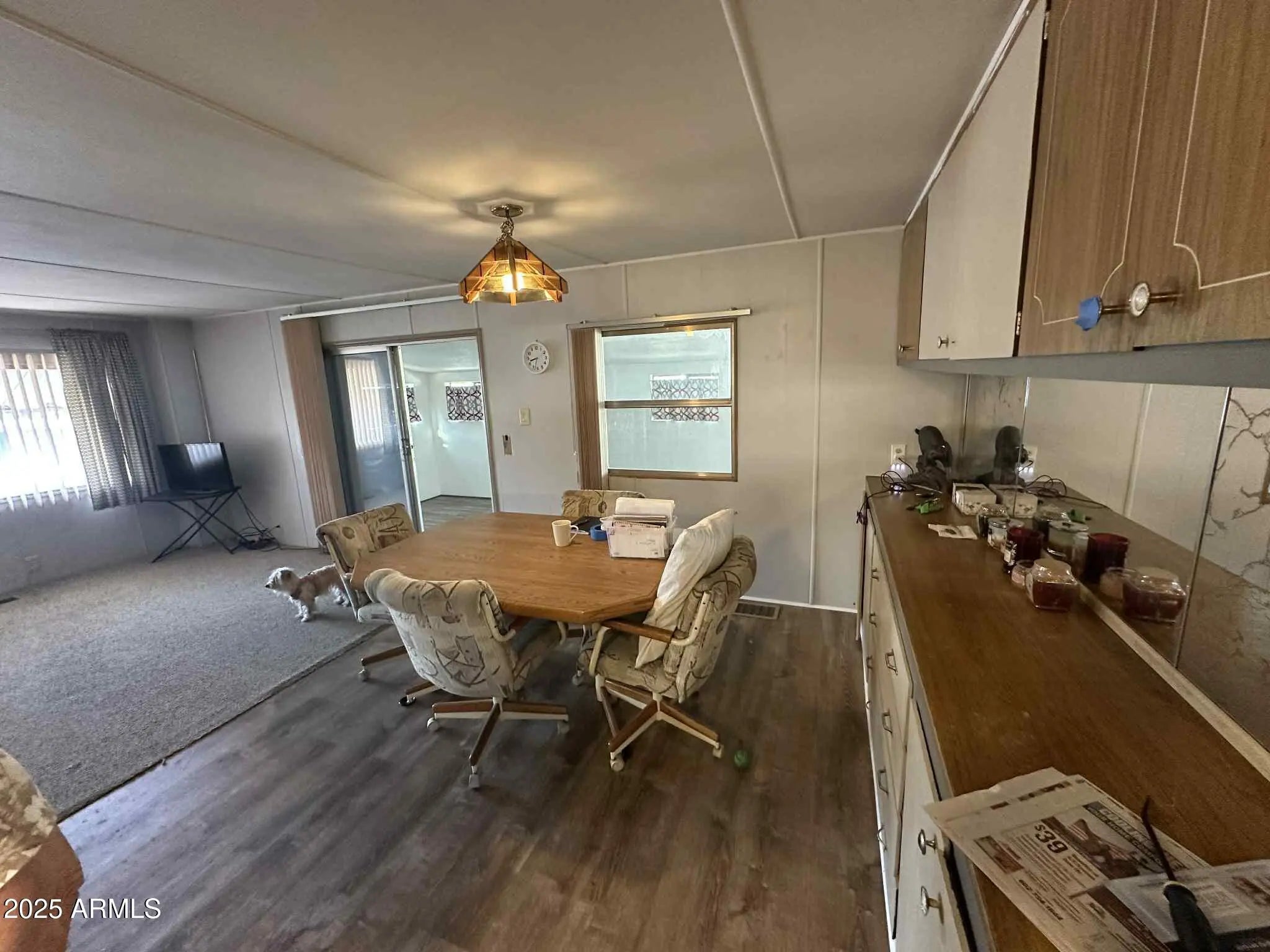 nice older double wide with some renovations done already and priced to sell. Located in one of the least expensive parks, nicely maintained park. There is a secluded patio area. Open concept plan and an Arizona room for added space. For the money this is a great home.