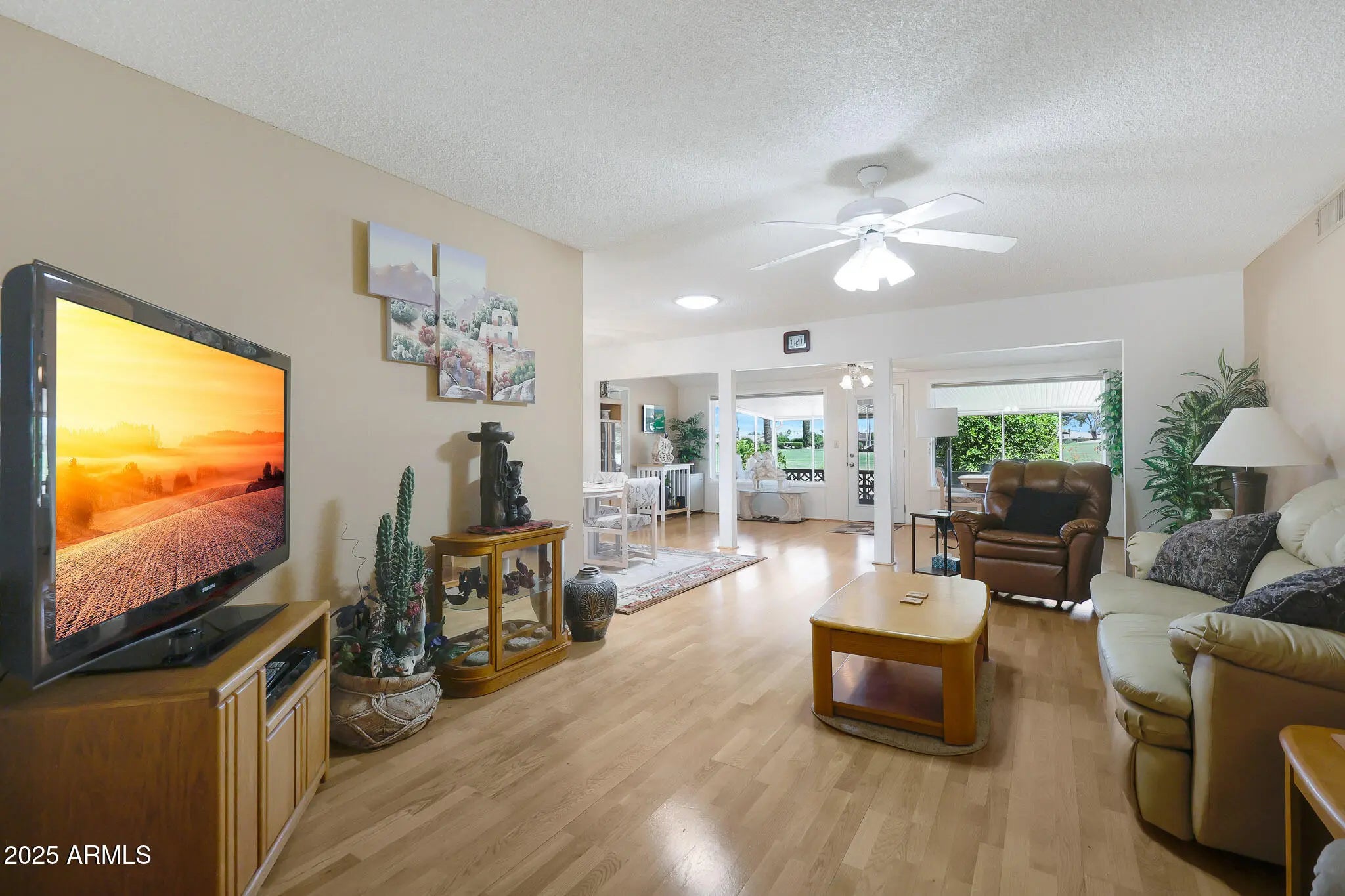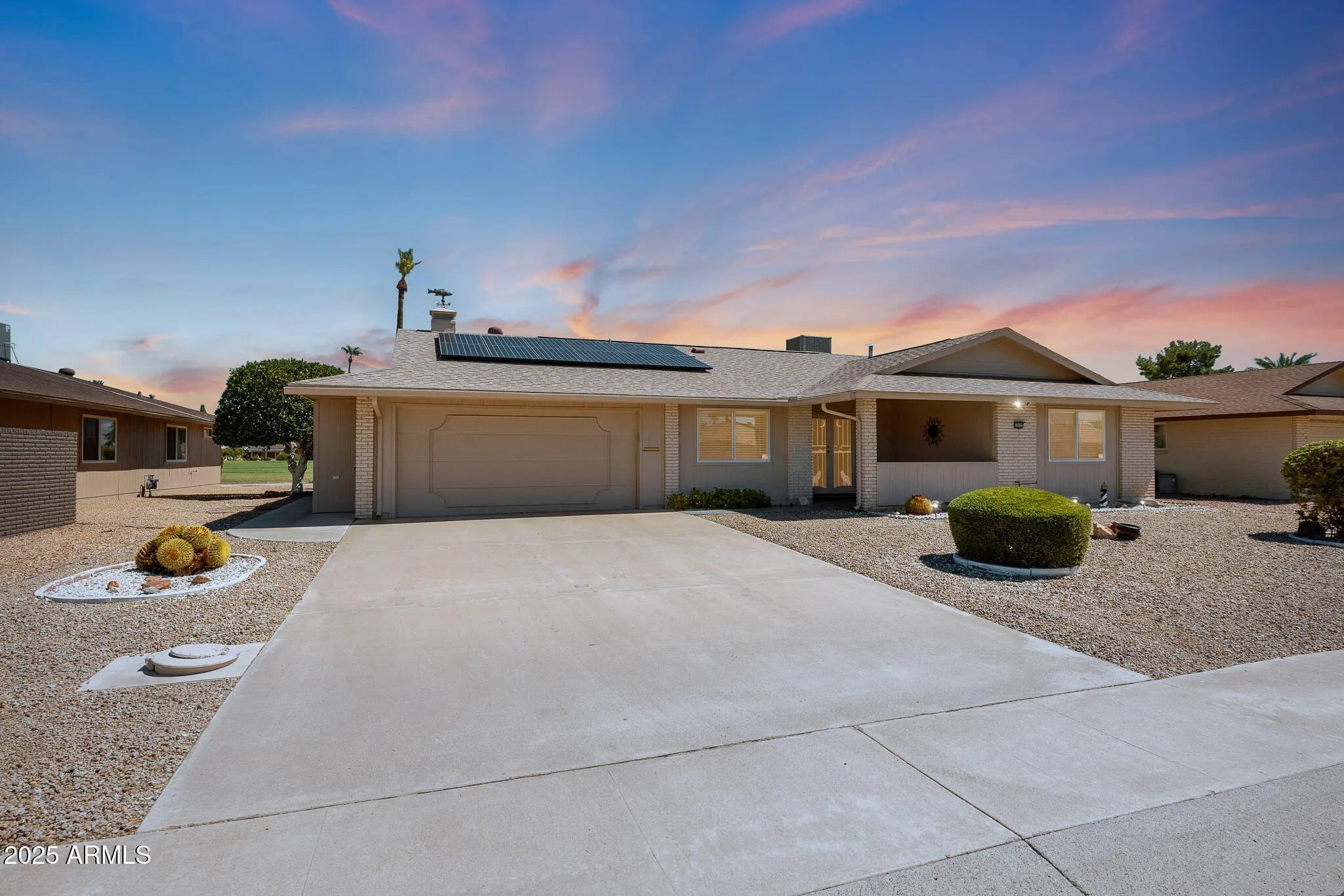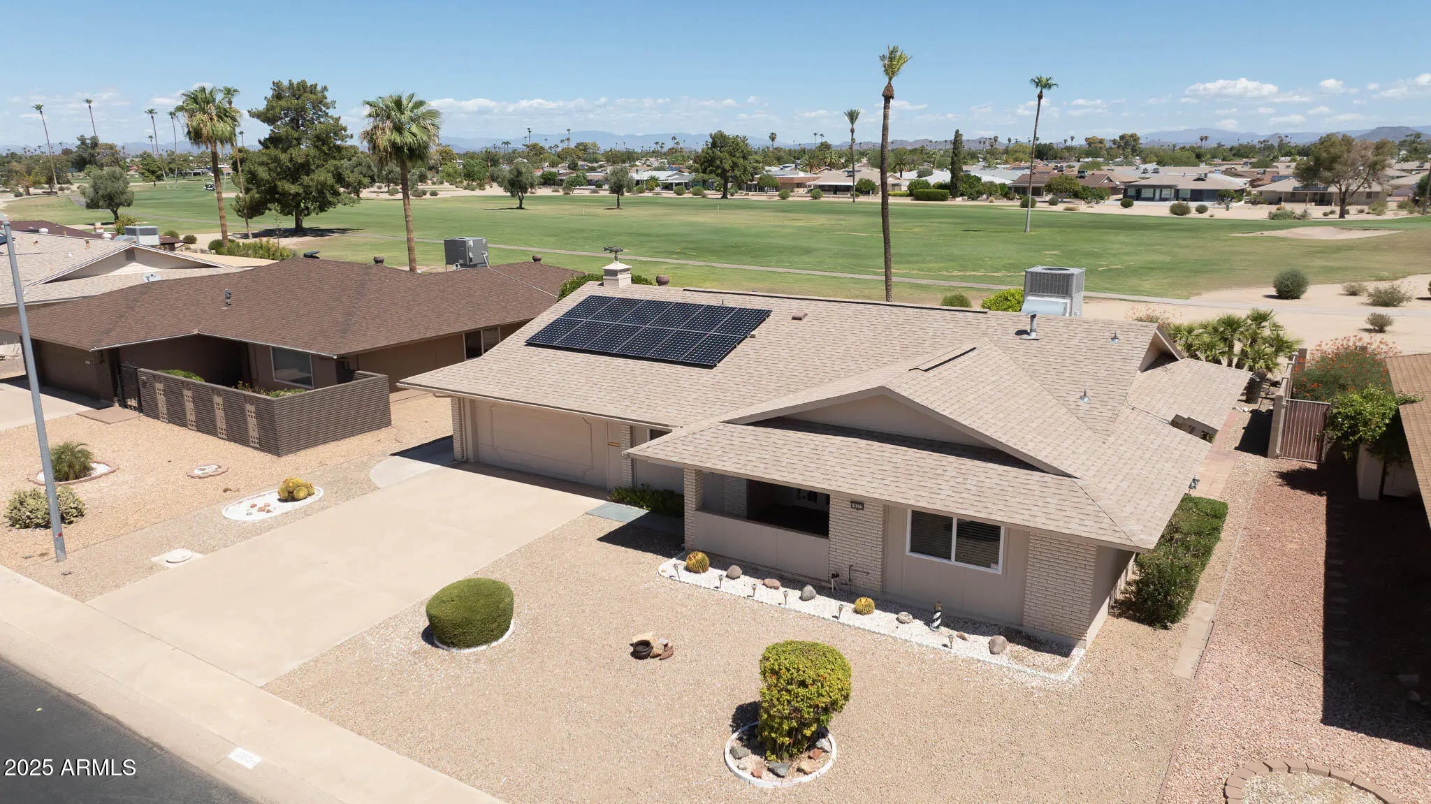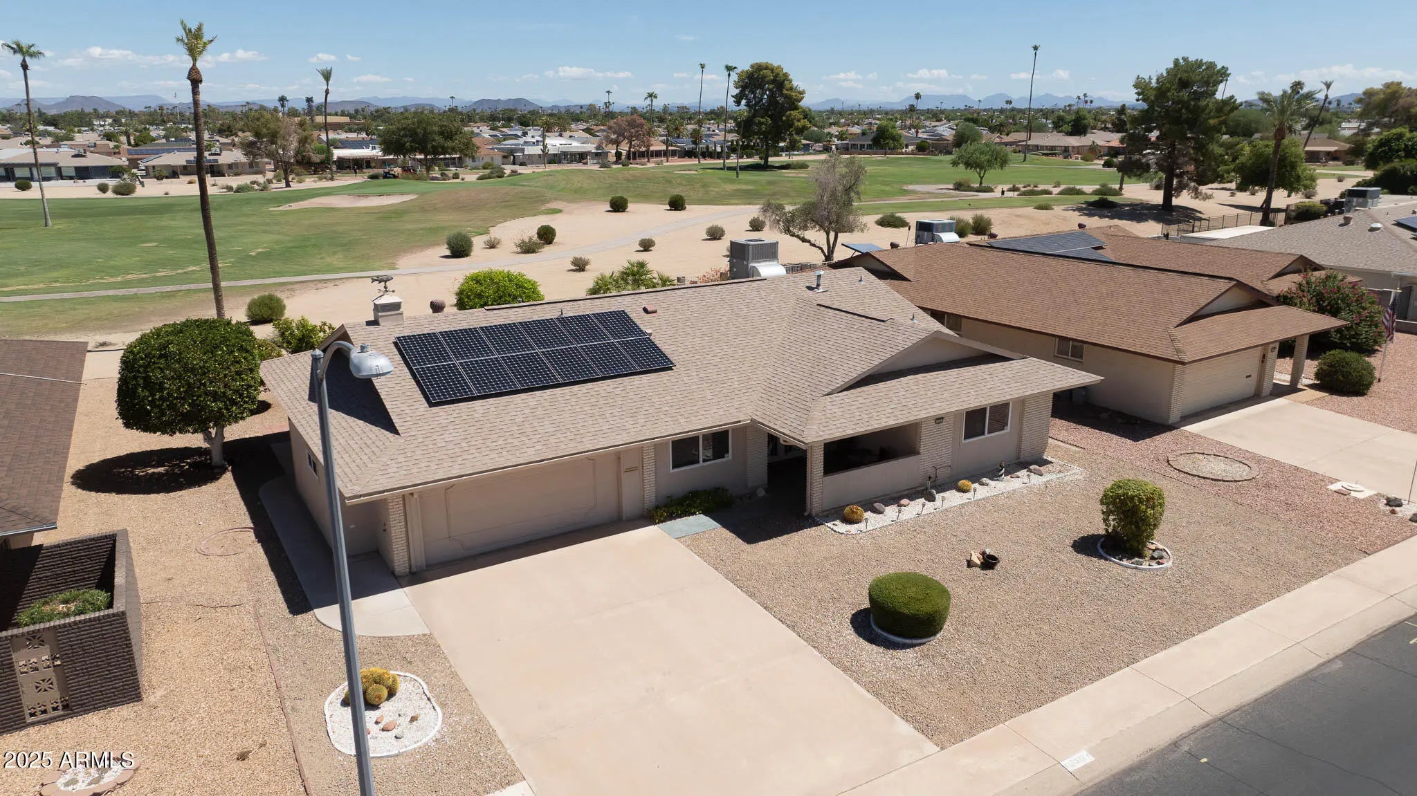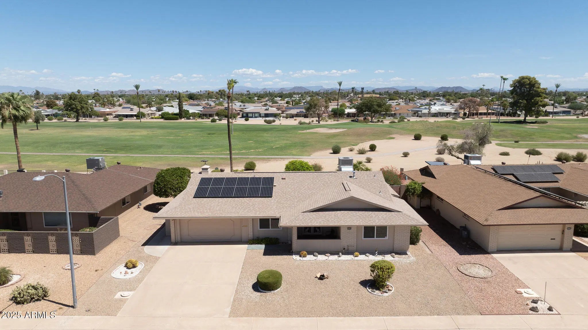 Stop By And View This Expanded Coconino Model Home On Hole Number 7 Of The Lakes East Golf Course In Sun City! This Home Comes With An OWNED SOLAR System—No Monthly Solar Payments. Furniture And Contents Are Available Outside Of Escrow. This Home Has Been Owned By Snowbirds For Over 20 Years. Updates Include Dual-Pane Windows, Security Doors, And Fresh Exterior Paint (2019). Step Out Back To Enjoy The Covered Patio With Sweeping Golf Course Views, Surrounded By Fruit Trees Including Tangelo, Lime, And Lemon. Inside, The Front Door Opens To A Spacious Living Room With A Direct View Of The Fairway. The Galley Kitchen Features Quartz Countertops, A Double-Bowl Stainless Steel Sink, And A Large Pantry. The Primary Suite Offers A Walk-In Closet And An Updated Vanity In The Bathroom. An Arizona Room Was Added For Extra Living Space. There's So Much More To See. Must see before this listing gone!