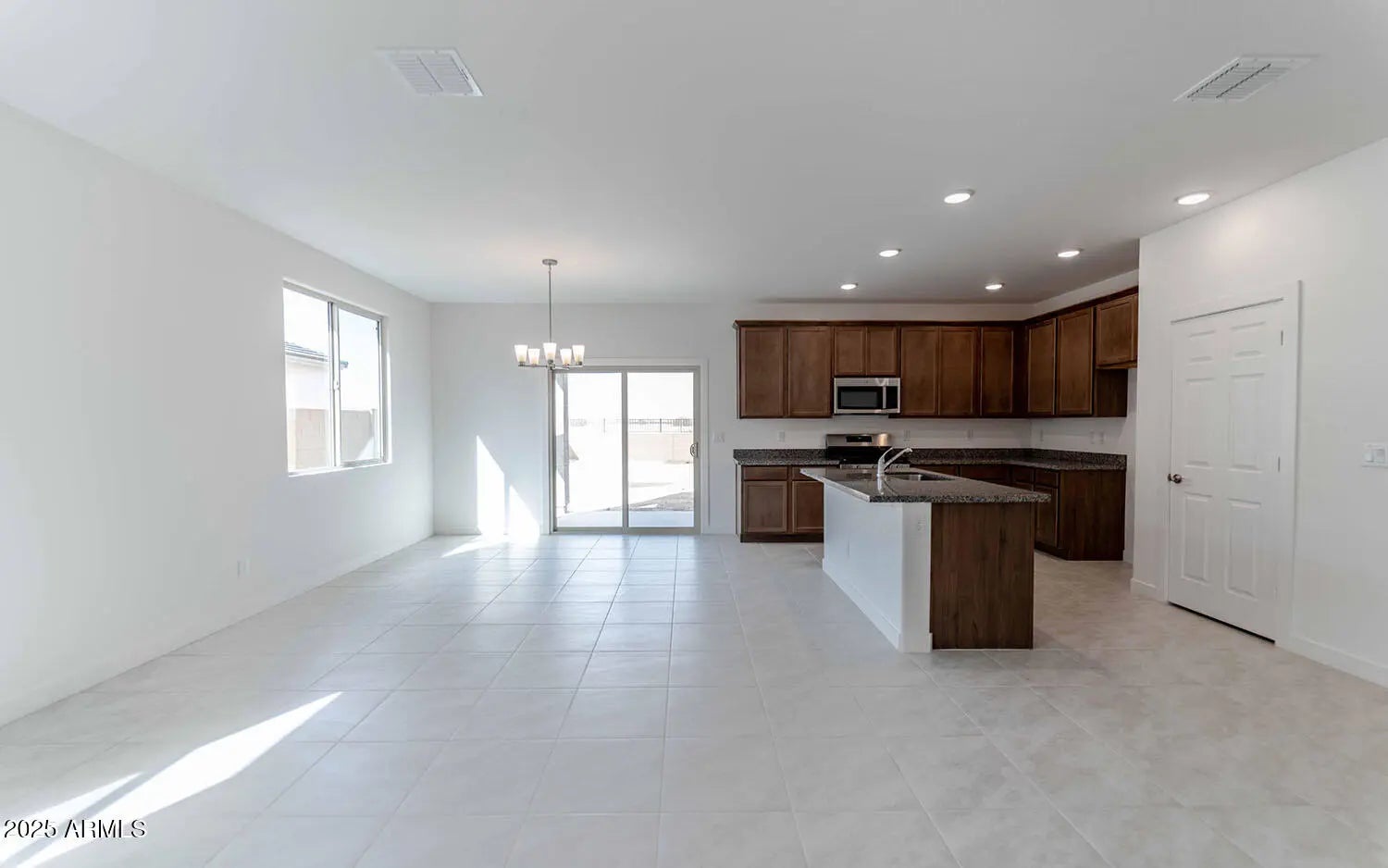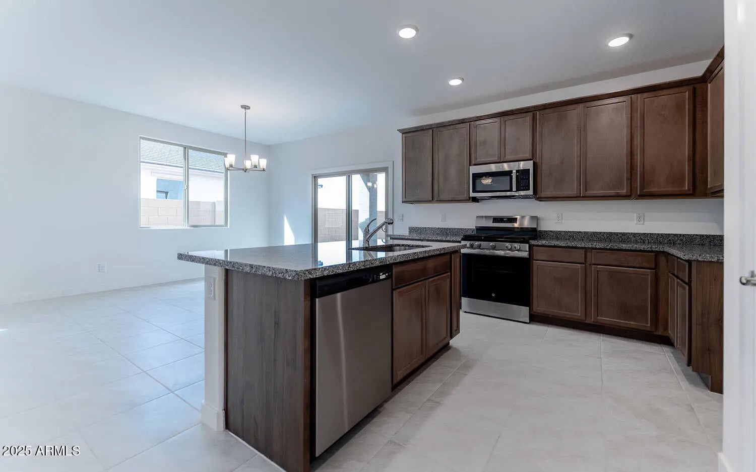 New home in El Rancho Santa Rosa! This single-story home has 1540 sq. ft. of living space with 3 bedrooms, 2 bathrooms, a 2-car garage, and covered patio. This kitchen in this open-concept home features 42 inch sable cabinets, granite countertops, GE stainless steel appliances, a large single bowl stainless steel sink, designer Kichler lighting and neutral ivory 18 inch tile flooring. The community of El Rancho Santa Rosa has shaded playgrounds, a turf play area, and basketball court, and provides easy access to Hwy 347, close proximity to Ak-Chin Entertainment Center, and is just East of Copper Sky Recreation Complex