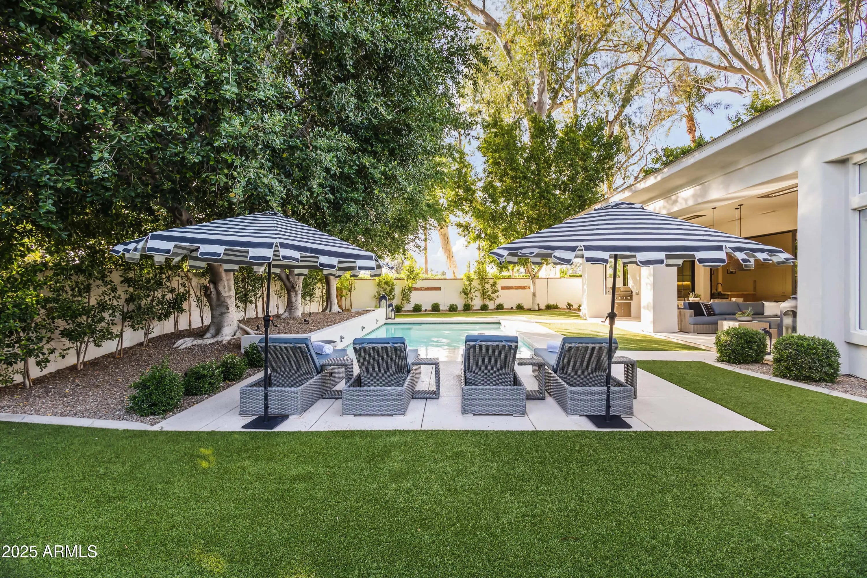 Nestled in the heart of Arcadia Proper, this stunning home offers breathtaking views of Camelback Mountain. Located within the highly sought-after Hopi School District, the residence has been tastefully updated with an open-concept design. The living and formal dining areas flow effortlessly into a chef's kitchen, featuring high-end stainless-steel appliances, custom cabinetry, and striking backlit quartzite countertops. Expansive sliding doors and lush living walls bring the outdoors in, offering serene views of the private backyard. Primary suite boasts an oversized shower, a soaking tub, and a custom walk-in closet. Outside, the resort-style backyard is an entertainer's paradise, complete with a sparkling pool and water feature, a covered patio with a built-in BBQ, and mature trees that create a tranquil oasis. Home also includes a dedicated office, a spacious kids' living area, and a three-car garage. Perfectly situated just minutes from Phoenix's premier resorts, golf courses, fine dining, and shopping, this home offers the best of Arcadia living.