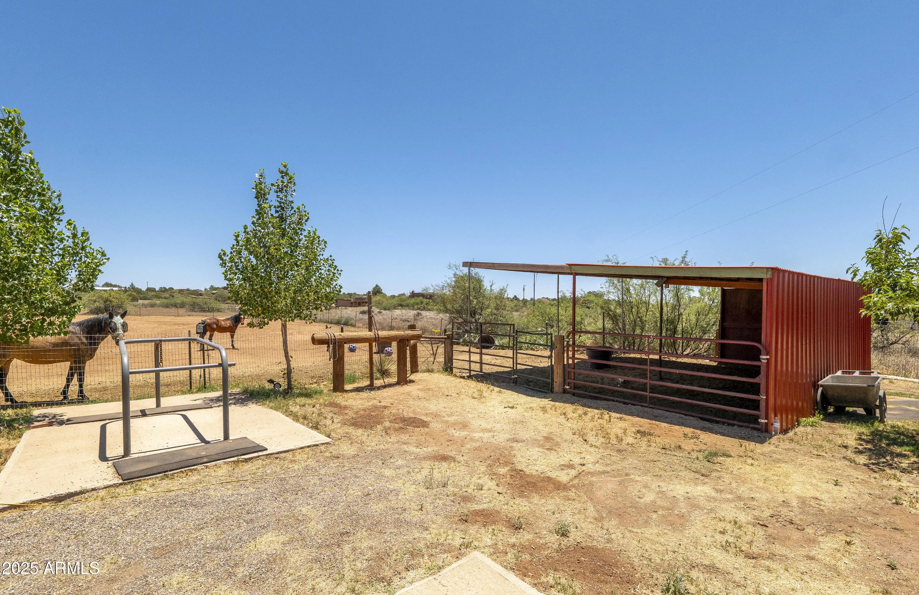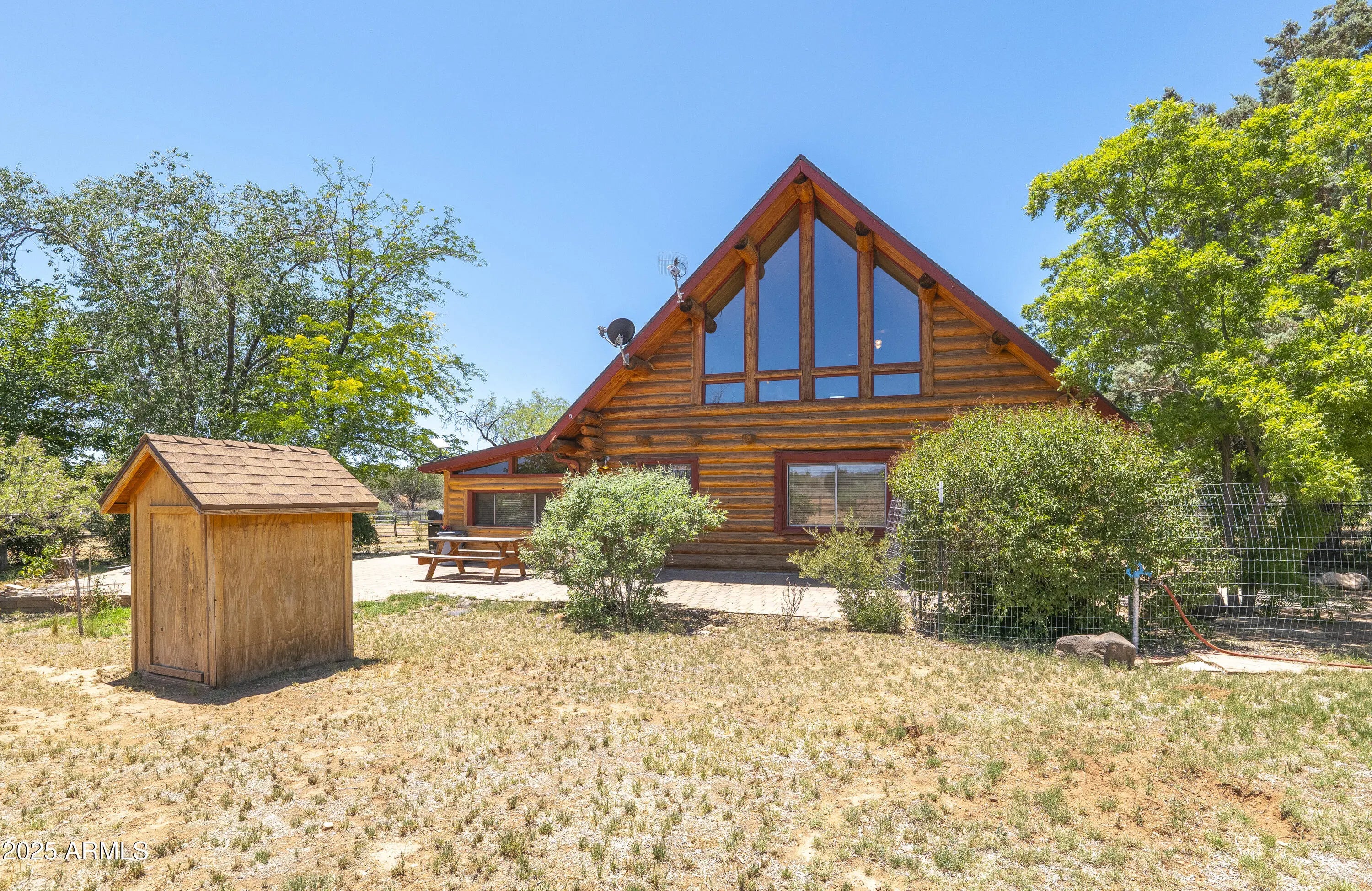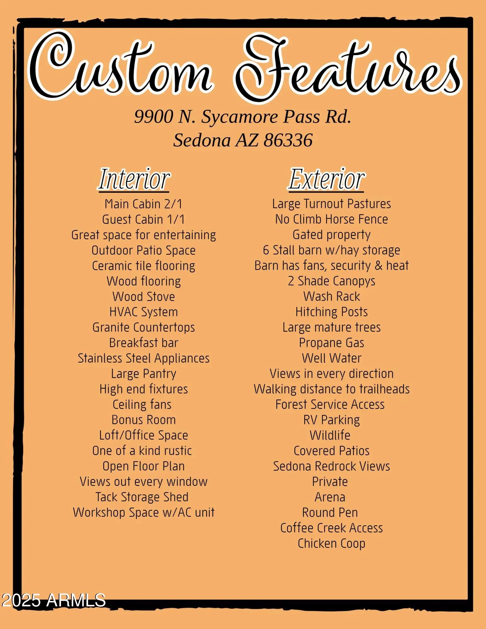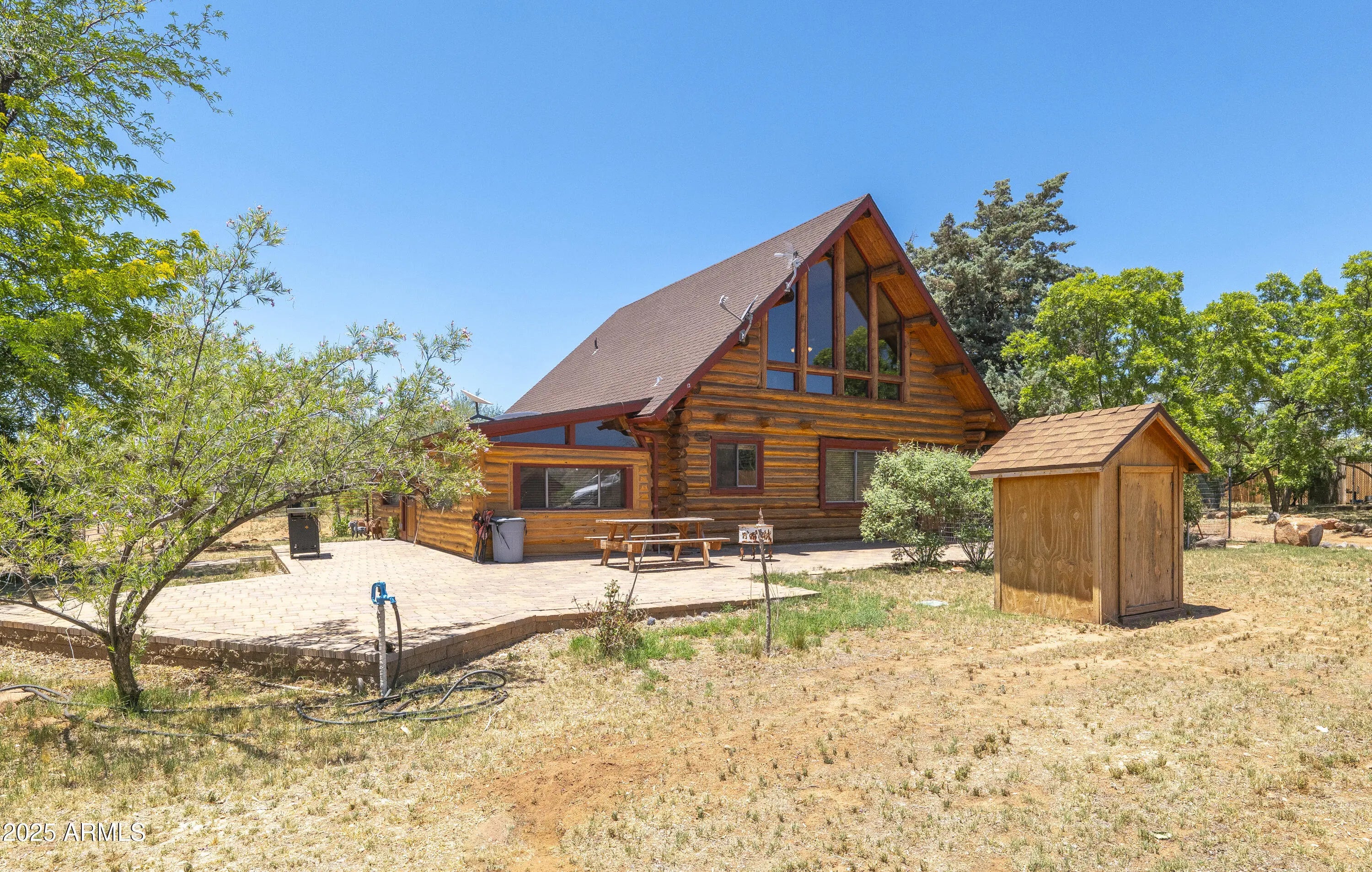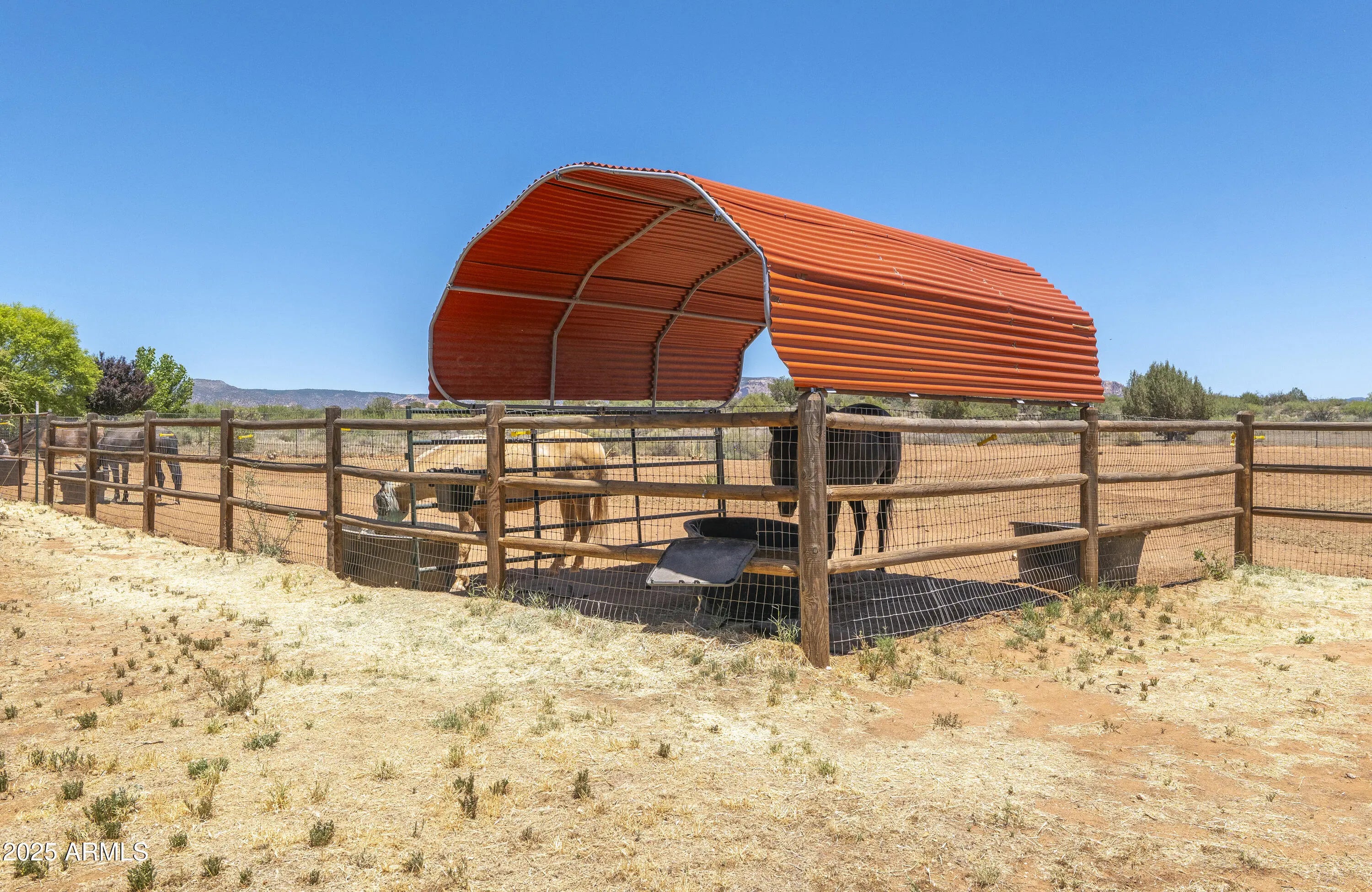 This stunning horse property sits on 5 ACRES in Sedona!!! Completely fenced and gated estate with stunning panoramic red rock & mountain views. Direct access to the pristine NATIONAL FOREST trails!!! Main house is a 2 bedroom, 1bath, log home that feels so spacious with the loft & large windows providing plenty of natural light. The gorgeous kitchen has stainless steel appliances, granite counter tops, filtered water, walk in pantry, and large island/breakfast bar. Dog run, chick coop, & back paved patio perfect for BBQ's, soaking in some sun or even stargazing. The studio with a 3/4bth 608sqft Bunkhouse was built in 2018. Large mature trees provide shade & owner recently planted 8 more trees. Horse Barn w/ 6 stalls, heaters, wash area, tack room, catch room, arena, & more. The main house even has a potential 2nd bedroom! Refer to custom features page for more info Main Log Cabin has 2 bedrooms: A loft upstairs and Bedroom downstairs has armoire, heating, but needs proper cooling added. Private access door to full bathroom. Guest House: 608 sqft Studio with 3/4 bath. Toilet room is separate. Stand up shower no bathtub in separate room. Sink separate.