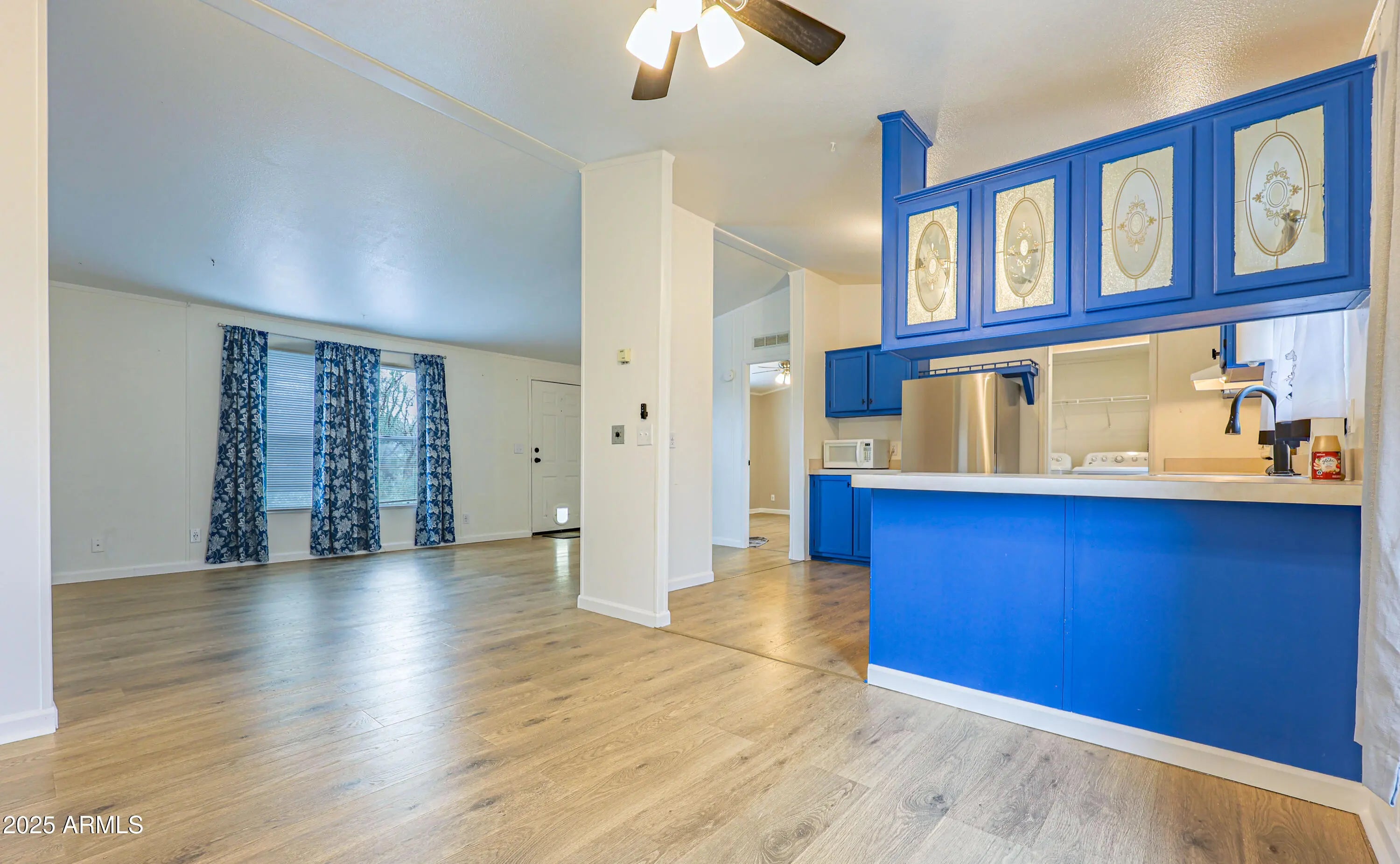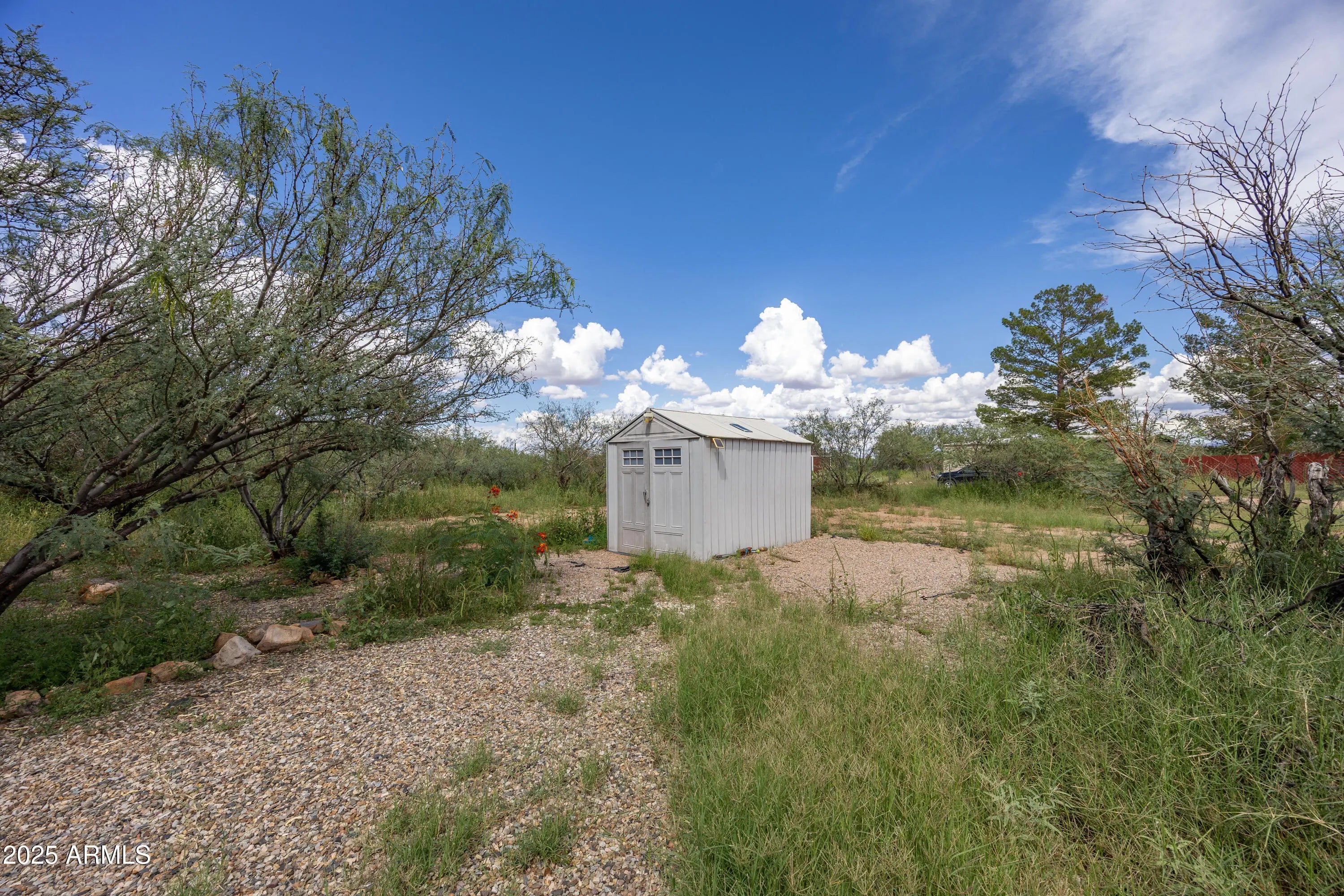 Charming move-in ready 3-bedroom, 2-bath home on just under an acre. This fully fenced corner lot offers a peaceful country feel while still being conveniently close to town. Enjoy a variety of desert plantings including cacti, a pomegranate tree, ocotillo and more. The property also features a storage shed and is easily accessible from a paved road with plenty of space for parking.
