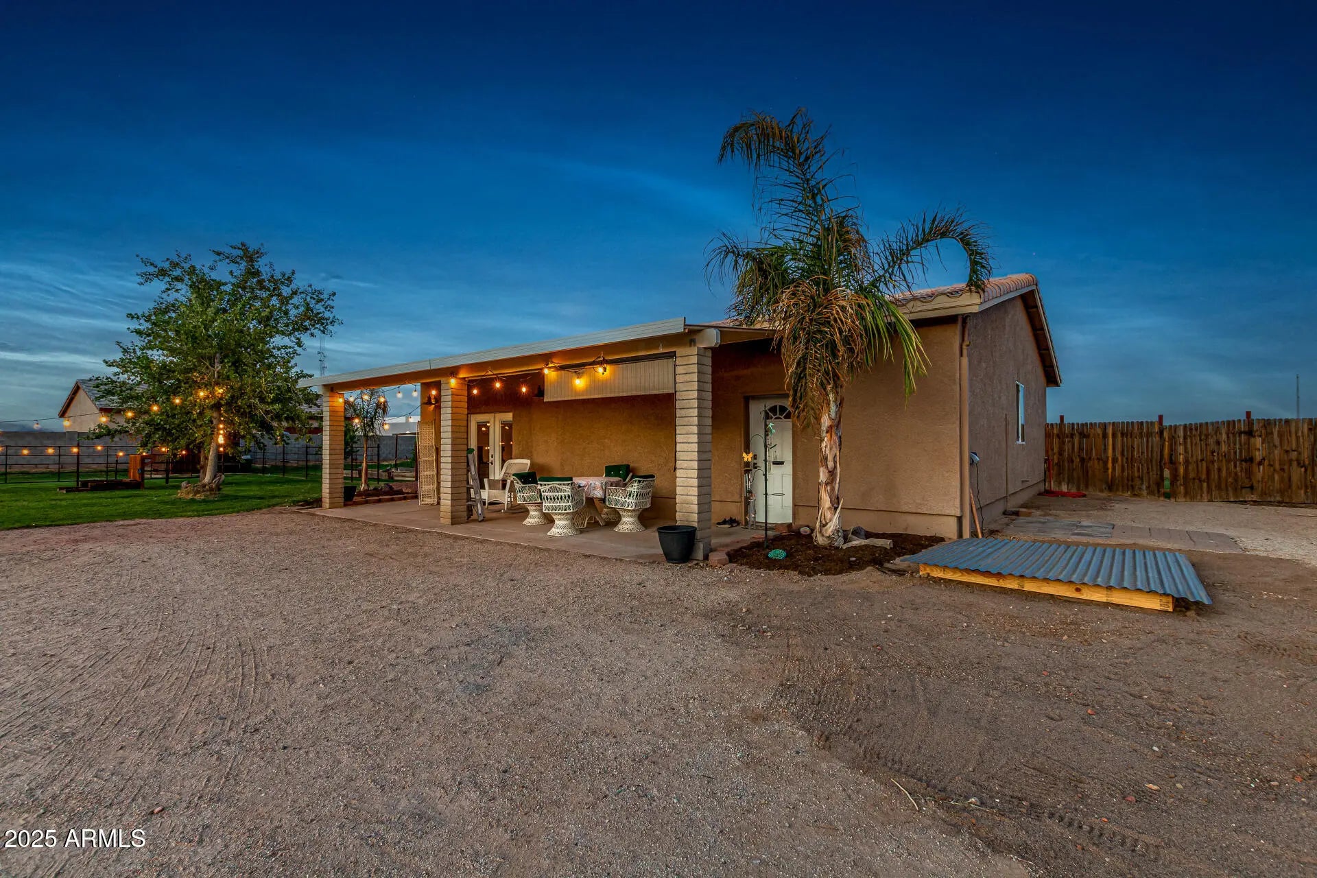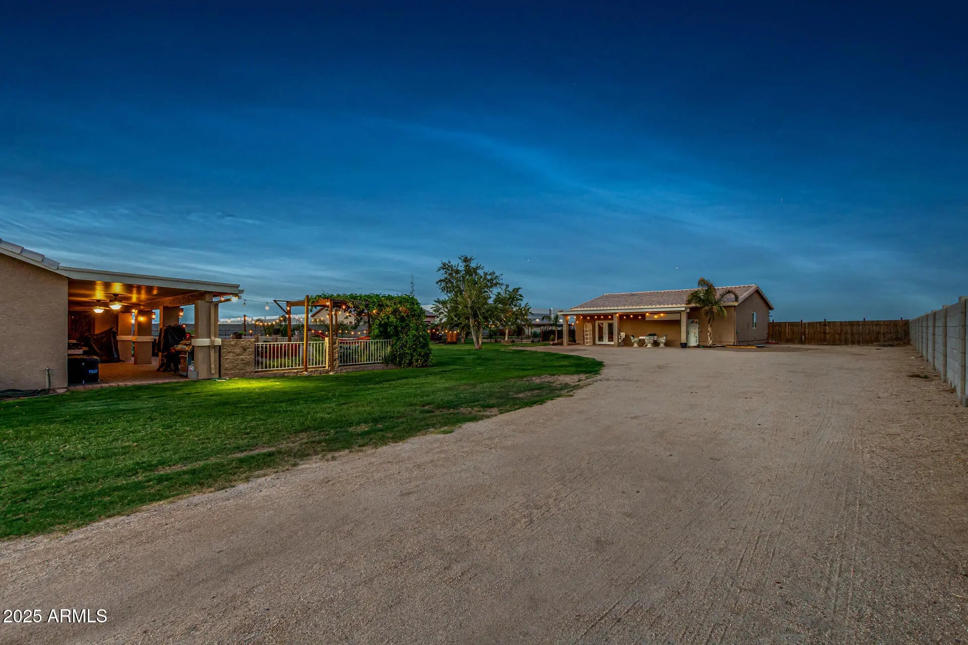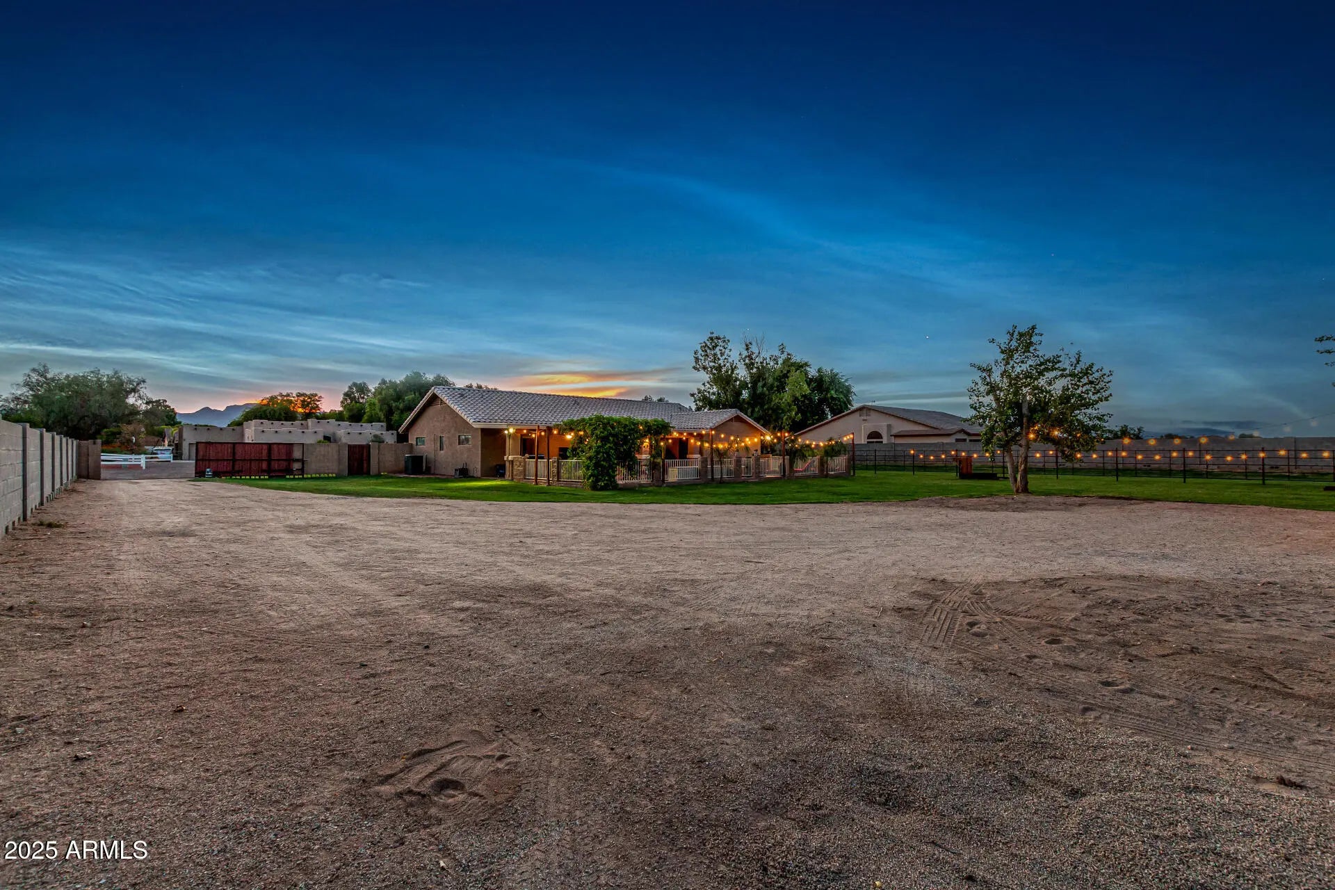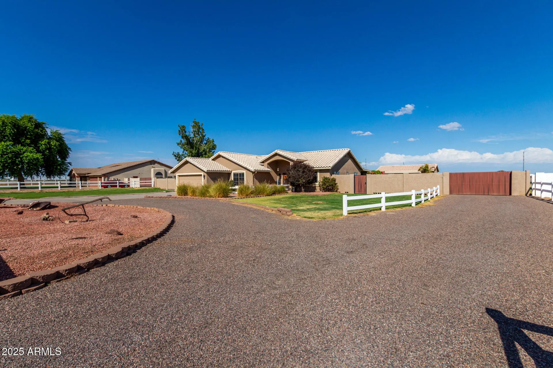 Rare find with DETACHED GUEST HOUSE offering full kitchen, 2 bedrooms, 2 baths, laundry & living space—perfect for multigenerational living, guest accommodations, rental income or short term rental. Nestled on just over an acre of flood-irrigated horse property, this estate captures stunning White Tank Mountain views & majestic Arizona sunsets. Main home showcases 3 bedrooms, 2 baths, an open concept floor plan & 2-car garage. Elegant upgrades include granite counters, tiled backsplash, spa-inspired walk-in shower with dual heads, tile & LVP flooring. Outdoor living impresses with covered patio, extended paver decking, block & wrought iron fencing, fire pit & pergola—your private resort-style oasis designed for relaxation & entertaining. Enjoy the charm of country living in Waddell.