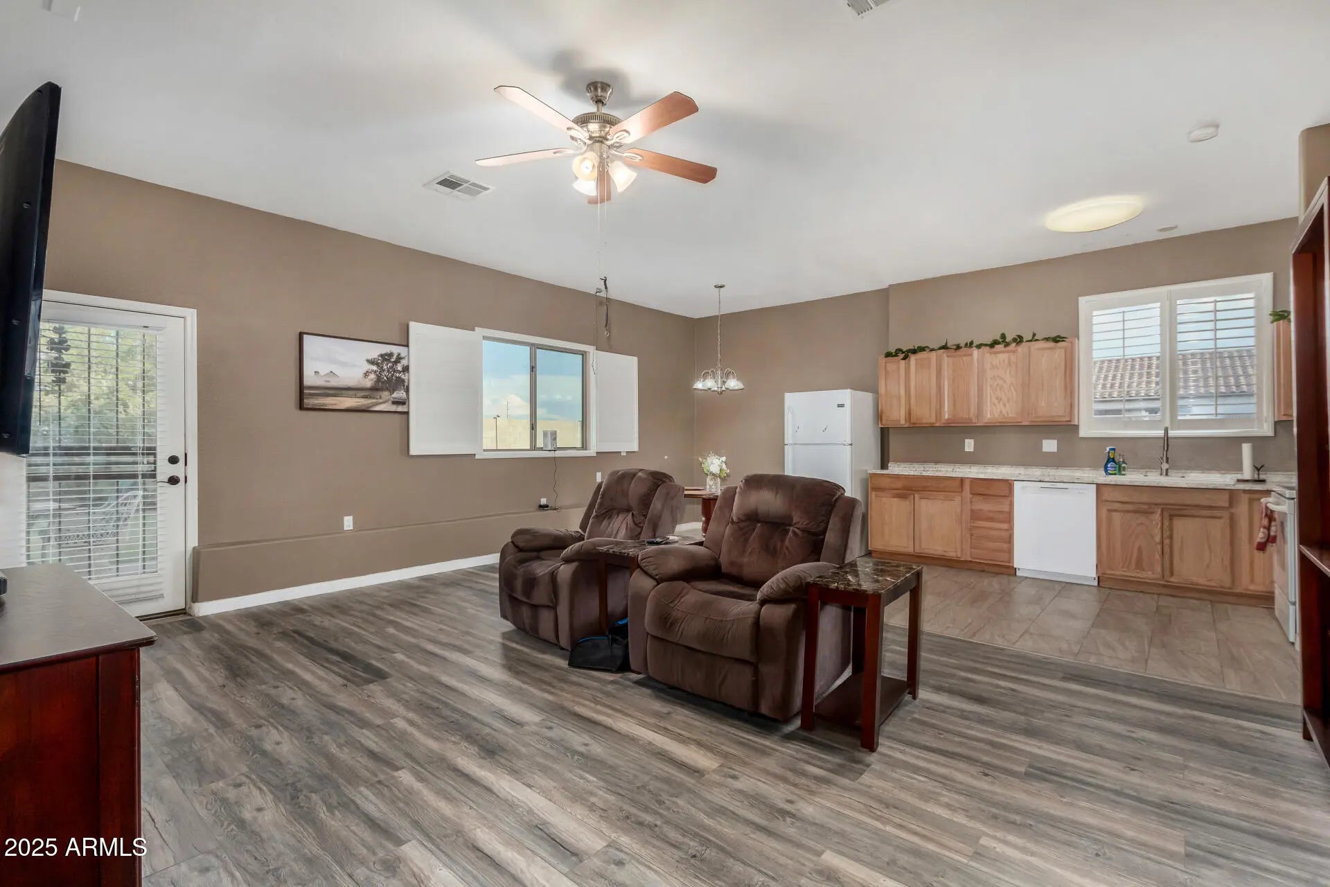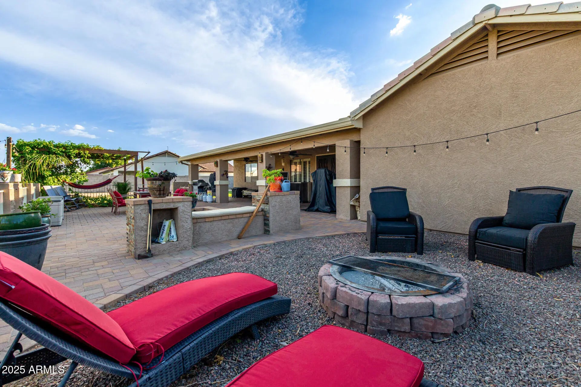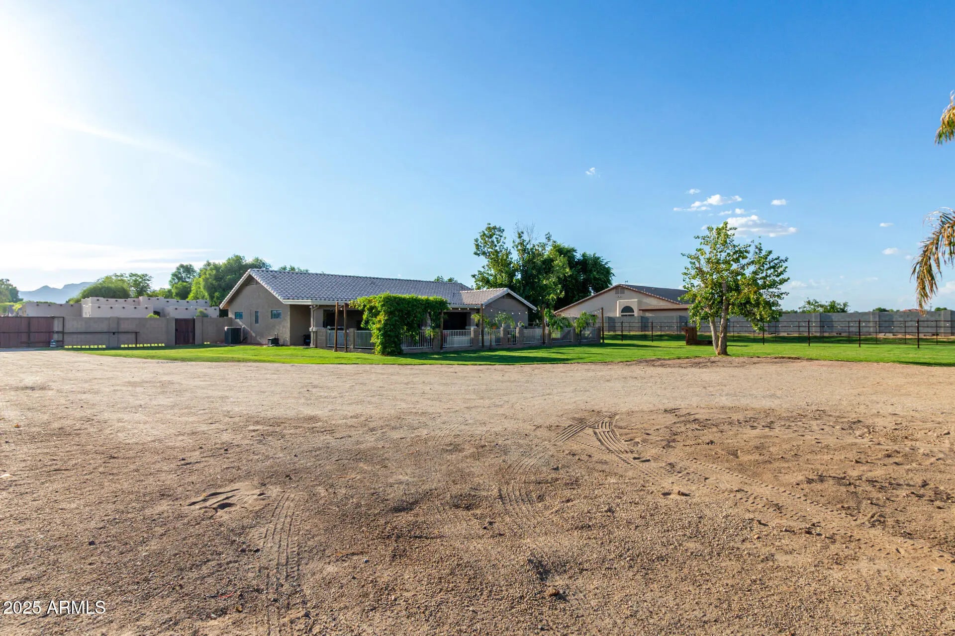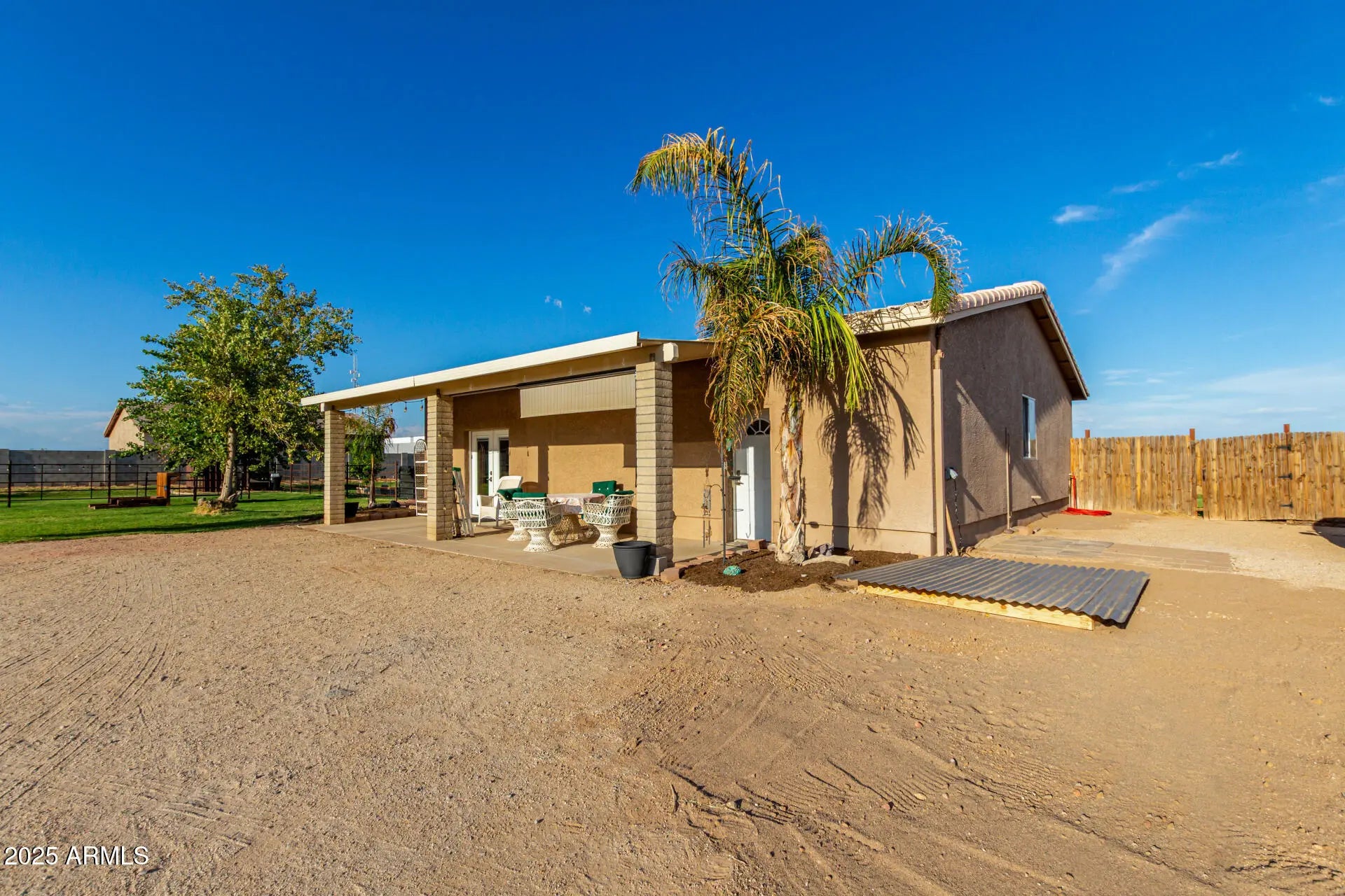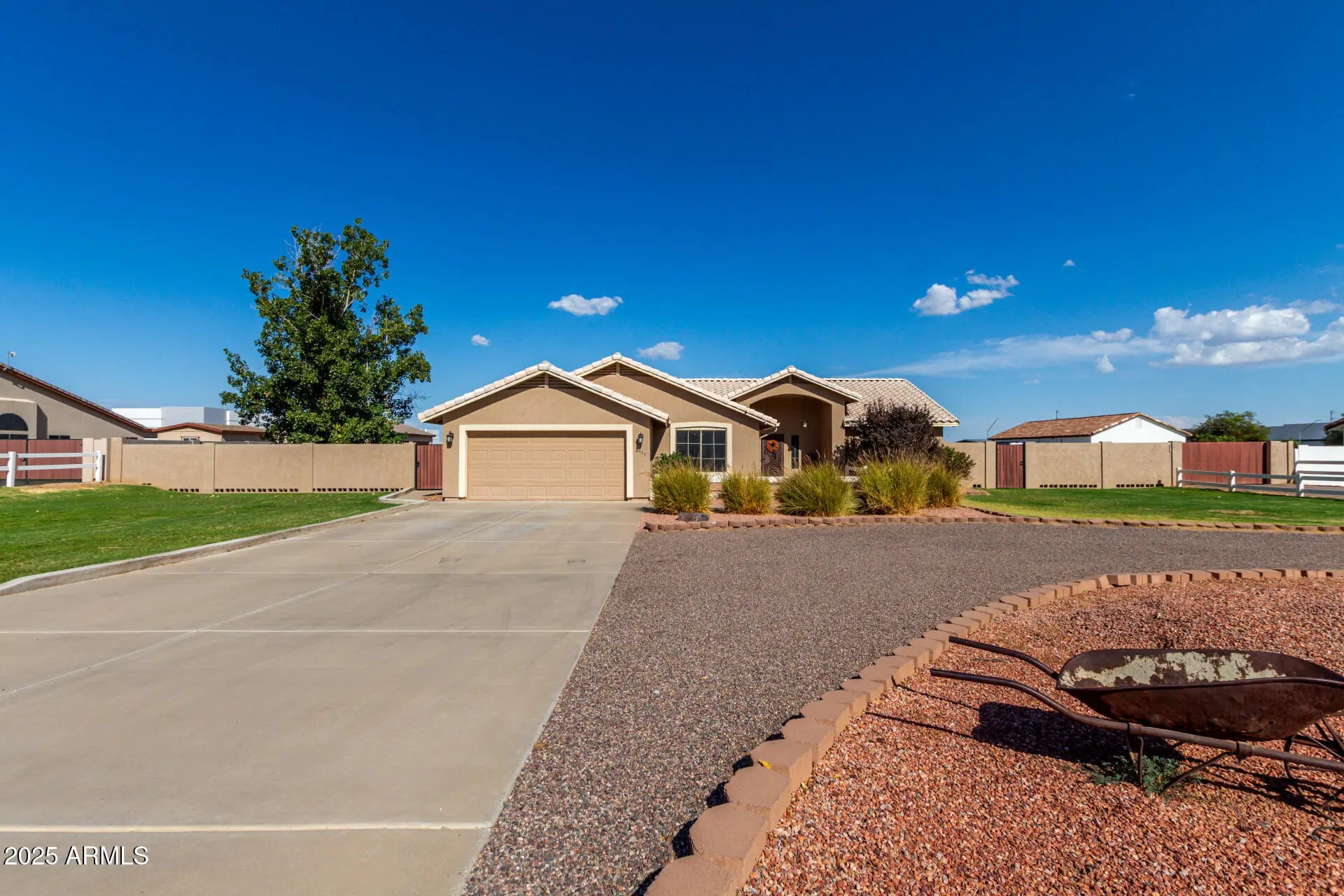 Rare find with DETACHED GUEST HOUSE offering full kitchen, 2 bedrooms, 2 baths, laundry & living space—perfect for multigenerational living, guest accommodations, rental income or short term rental. Nestled on just over an acre of flood-irrigated horse property, this estate captures stunning White Tank Mountain views & majestic Arizona sunsets. Main home showcases 3 bedrooms, 2 baths, an open concept floor plan & 2-car garage. Elegant upgrades include granite counters, tiled backsplash, spa-inspired walk-in shower with dual heads, tile & LVP flooring. Outdoor living impresses with covered patio, extended paver decking, block & wrought iron fencing, fire pit & pergola—your private resort-style oasis designed for relaxation & entertaining. Enjoy the charm of country living in Waddell.