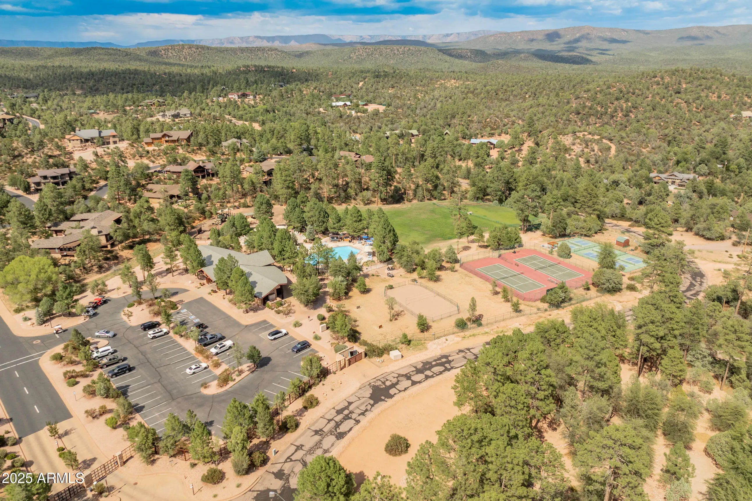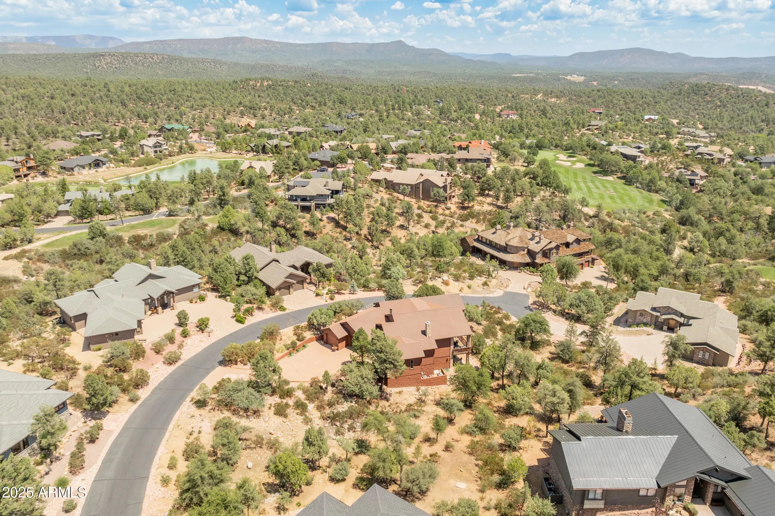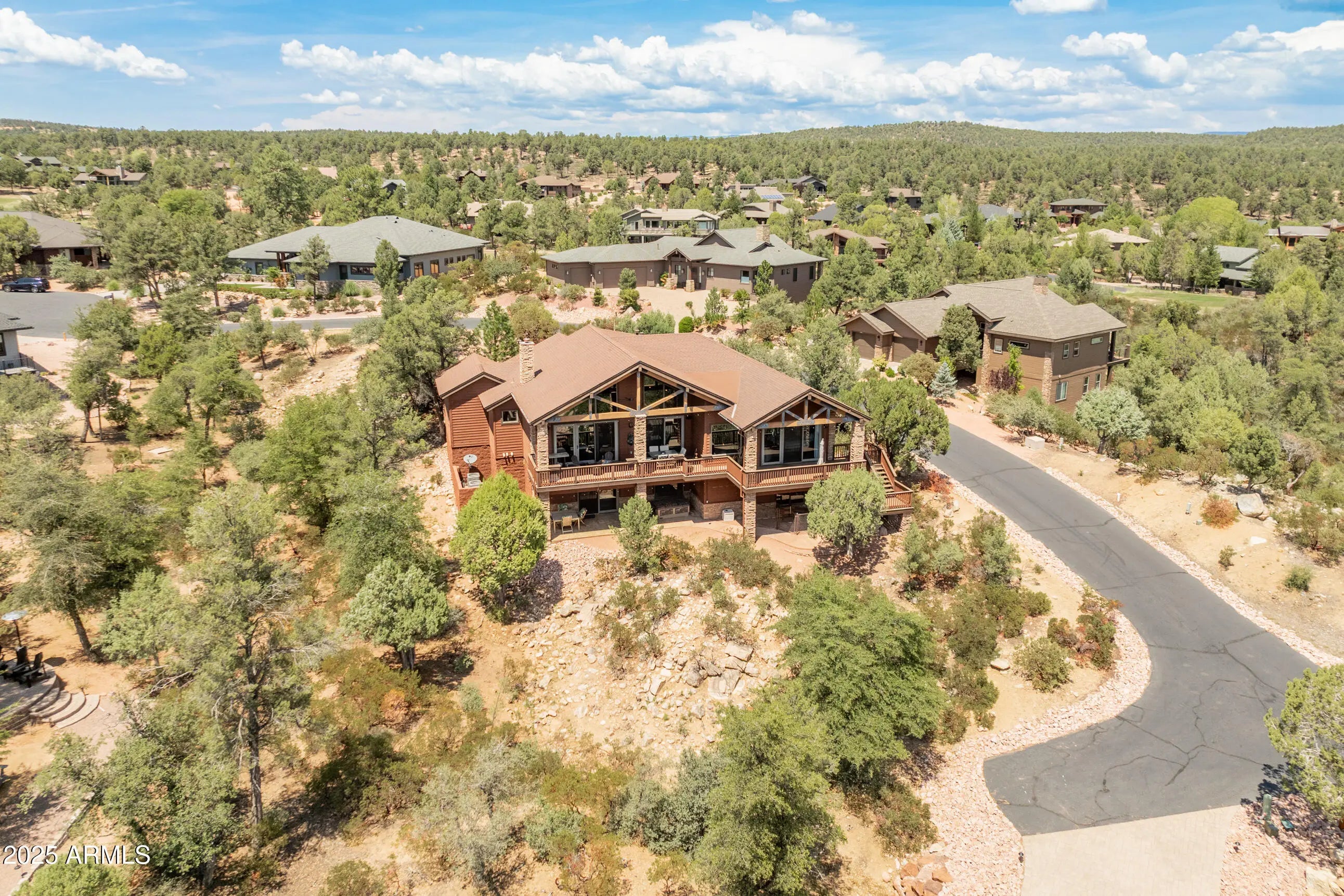 Breathtaking panoramic mountain views define this custom 4 bedroom, 4 bath retreat in the coveted Chaparral Pines community. Thoughtfully remodeled and immaculately maintained, this 3,453 sq ft home offers both elegance and comfort on a rare half-acre, private lot. The main level is designed for effortless living with an open-concept great room, soaring ceilings, stone fireplace, chef's kitchen with breakfast bar, and direct access to an expansive Trex deck with built-in BBQ - perfect for enjoying dramatic Granite Dells sunrises and sunsets. The primary suite and a second bedroom are conveniently located on this level, offering true single-level living with no interior stairs. The walk-out lower level is ideal for entertaining or hosting guests, complete with two ensuite bedrooms, a cozy family room with fireplace and custom built-ins, a wet bar, and library-style shelving. Multiple patios and outdoor living spaces extend the mountain lifestyle year-round. Upgrades include 8-foot interior doors, smart home features, professional landscaping with accent lighting, and ample storage throughout. Chaparral Pines is a guard-gated golf community with luxury amenities including the Trailhead fitness center, pool, tennis, pickleball, playgrounds, dog park, and 24-hour security. This property blends privacy, views, and resort-style living into one exceptional home.