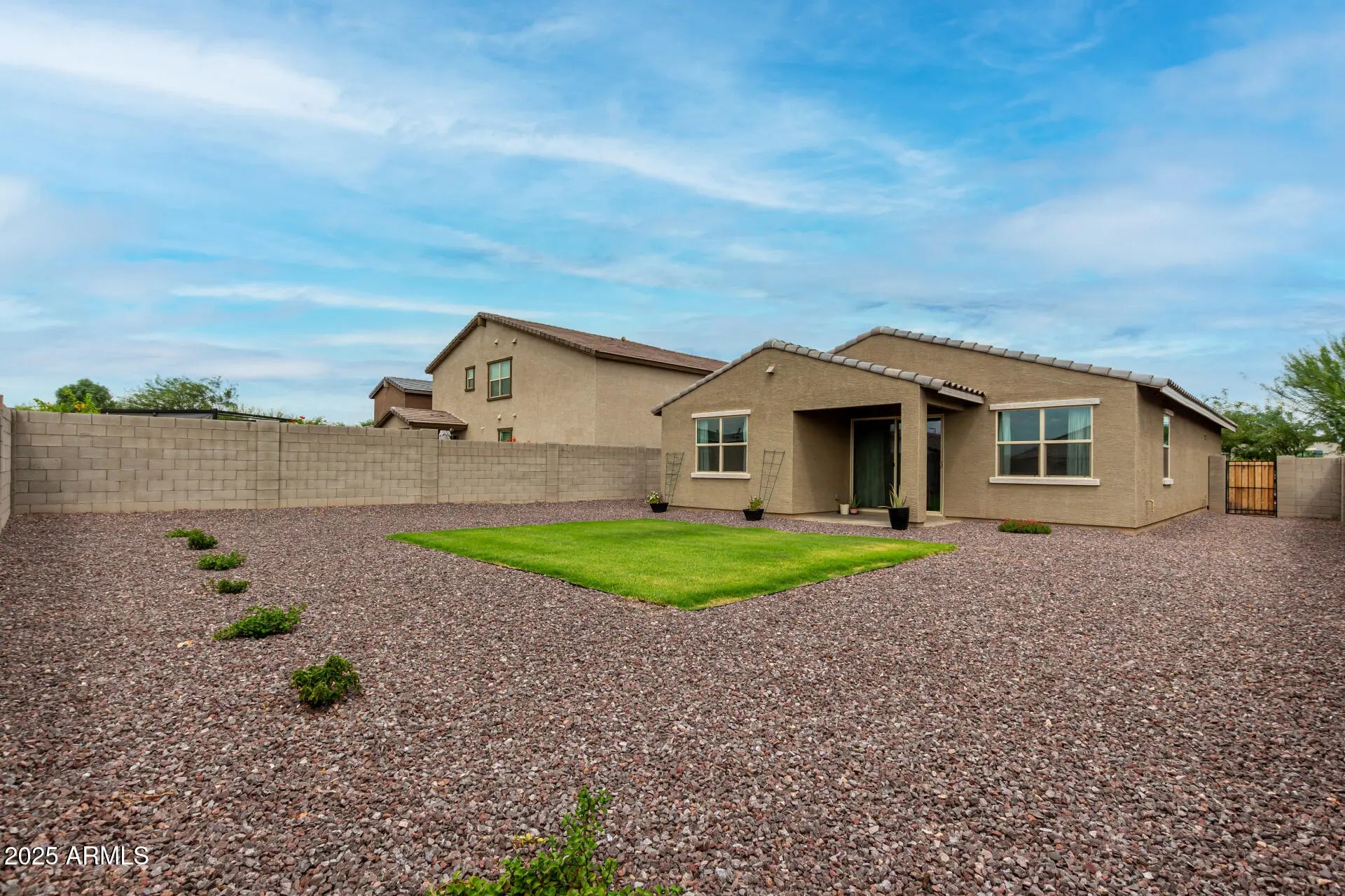 Peaceful, private, and move-in ready. Welcome to this bright and peaceful 3-bedroom, 2-bathroom home in the sought-after Desert Oasis community of Surprise. Built just a few years ago, this home offers all the benefits of new construction without the wait, dust, or unfinished landscaping. Step inside to a flowing open-concept great room where the large center island anchors the kitchen...perfect for hosting gatherings, weeknight dinners, or morning coffee chats. The split-floorplan design creates a thoughtful layout, with a spacious primary suite and walk-in closet privately tucked away from the secondary bedrooms. Enjoy a peaceful backyard retreat, complete with a spacious grassy area, rock accents, and thoughtfully placed bushes and plants that add greenery and color. a spacious grassy area, rock accents, and thoughtfully placed bushes and plants that add greenery and color. With no construction nearby and a larger lot than many newer builds, this outdoor space is ready for relaxation, play, or entertaining from day one. Beyond your front door, you'll love being part of Desert Oasis, with access to an exclusive community pool and splash pad, and just minutes from Asante Park & Library, plus grocery shopping, dining, and coffee at 163rd & Pat Tillman Blvd. And here's the best part: this home offers an assumable FHA loan with a permanent lower interest rate, a rare opportunity for today's buyers. If you're looking for a home that blends modern design, a move-in ready backyard, and sought-after neighborhood amenities, this is the one. Listing agents are related to seller.