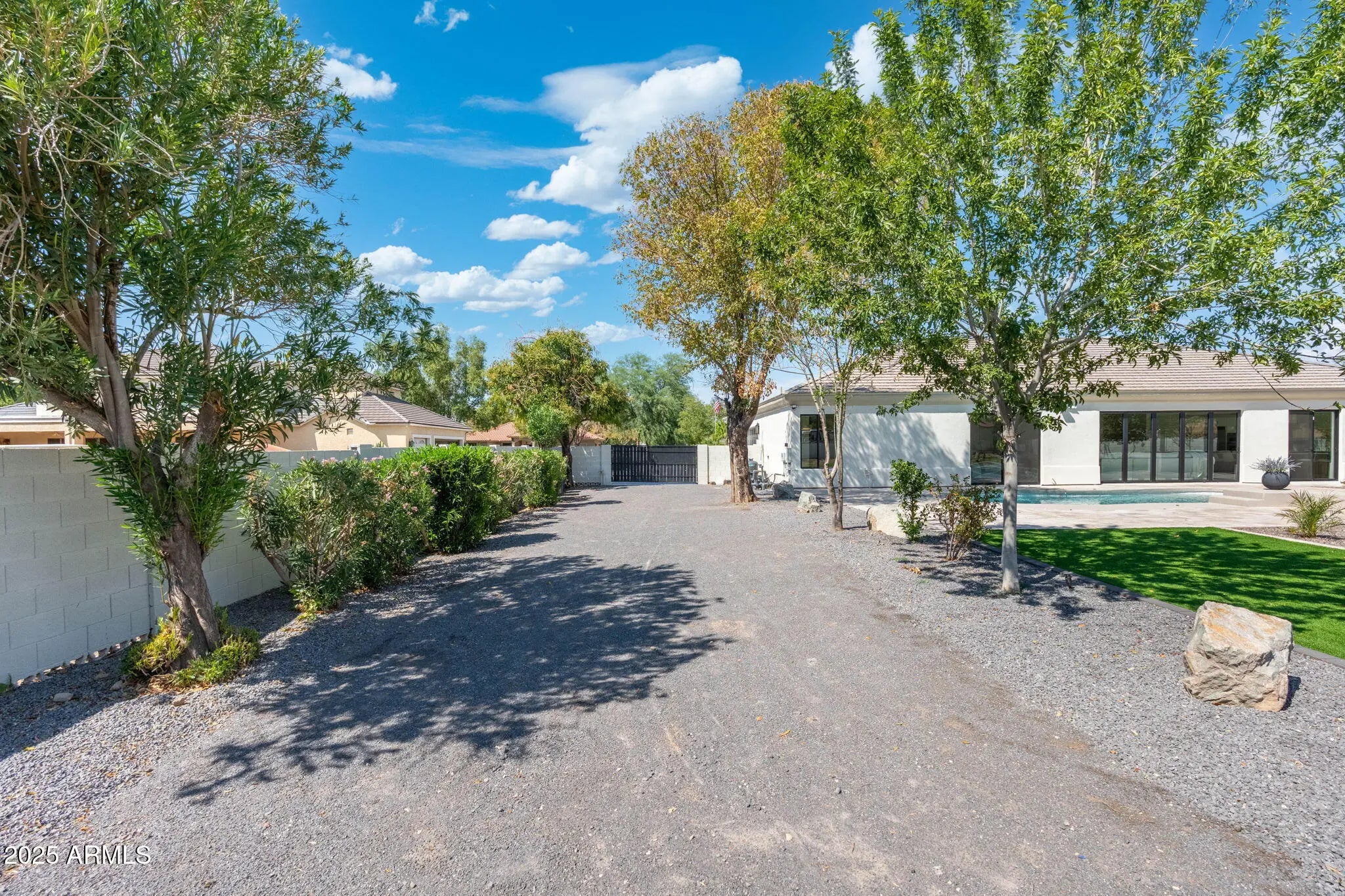 Welcome home, where you will discover the perfect blend of serenity, flexibility, and modern Arizona living in the coveted Circle G Ranchette Estates. Set on nearly an acre, this completely updated home has been transformed inside and out, offering both relaxation and peace of mind with every major system already upgraded. Arrive through the resort-like circular drive and fountain entry that welcomes you and your guests in style. Inside, soaring ceilings and a captivating 16-foot accordion slider create breathtaking indoor-outdoor living, while the primary suite provides a spa-inspired retreat with a freestanding tub, walk-in shower, and expansive walk-in closet. This home is truly move-in ready with engineered hardwood flooring, new stainless appliances, new Milgard windows, new AC units, a 40-year synthetic roof, remodeled kitchen, and a four-car garage with epoxy, EV charging, and 220V RV hook-up. The backyard is an entertainer's dreamfeaturing a sparkling pool and spa with smart automation, new pebble tec and tile surround, a brand-new outdoor kitchen with BBQ + hibachi grill, and a natural gas fire pit for evenings under the stars. Here, the opportunities are endless: the community allows Casitas, RV garages, and equestrian rights, giving you the freedom to create a homestead, garden, guest quarters, or RV setup. Homes like this in todays market are rareschedule your private showing today!