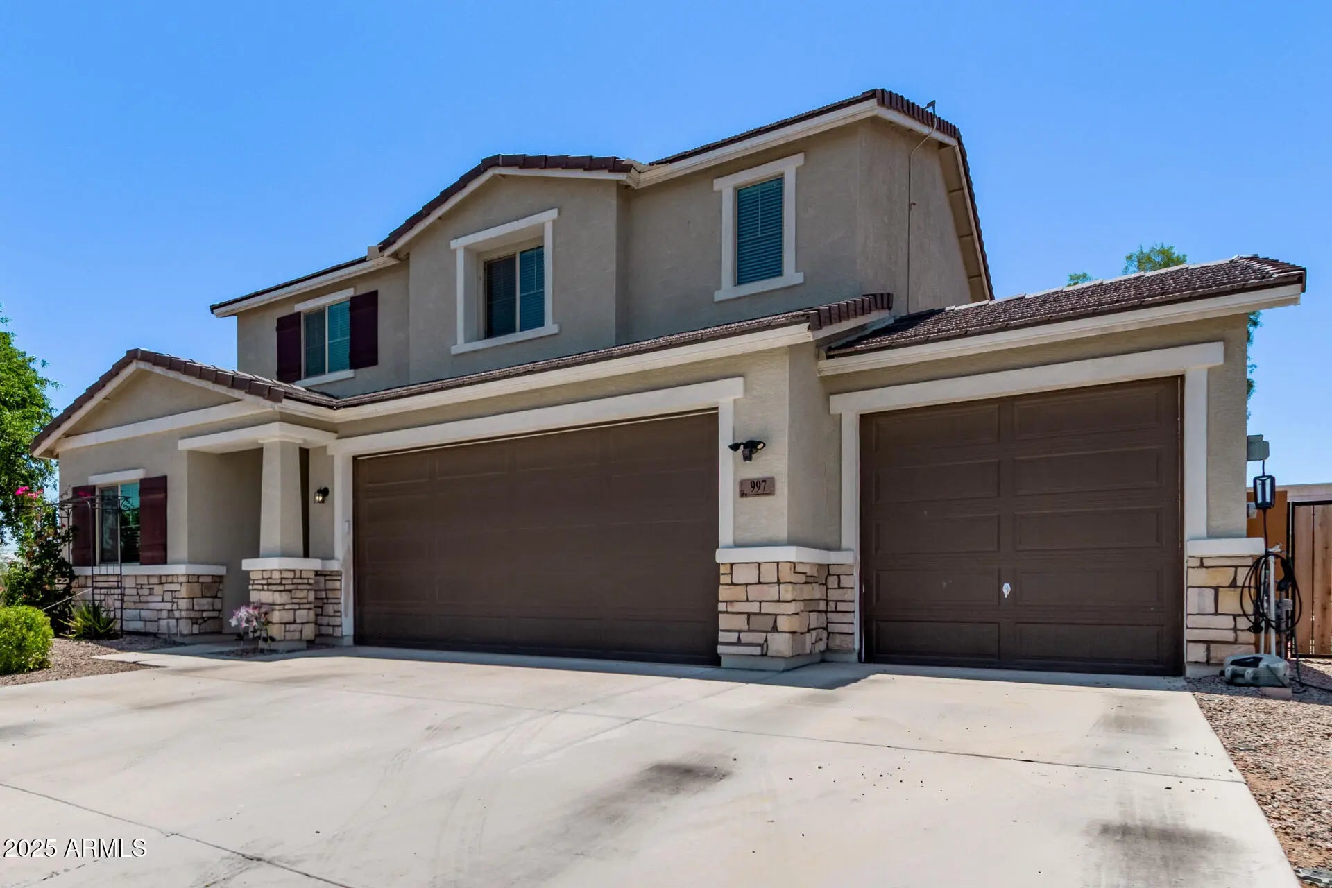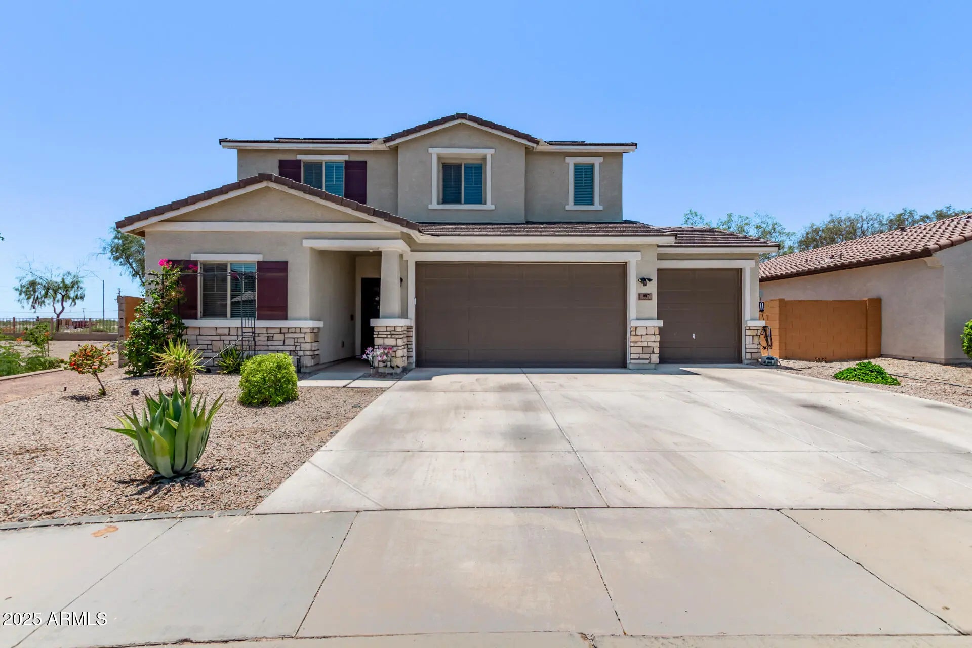 Discover your dream home in this modern 5-bedroom beauty tucked away in a quiet cul-de-sac! Designed for families and entertainers alike, this spacious floor plan includes a versatile bonus room, 2.5 bathrooms, and a backyard built for fun—complete with a sparkling pool, lush green grass, and plenty of room to relax or play. Energy-efficient solar panels help keep utility costs low, while a 3-car garage with an EV outlet makes this home as convenient as it is eco-friendly. Inside, you'll find plenty of space, natural light, and style throughout. Located just minutes from top schools, restaurants, and shopping, this home delivers the perfect balance of comfort, convenience, and sustainability. No loan assumptions—move-in is simple and stress-free.Space, style, and savings all in one!
