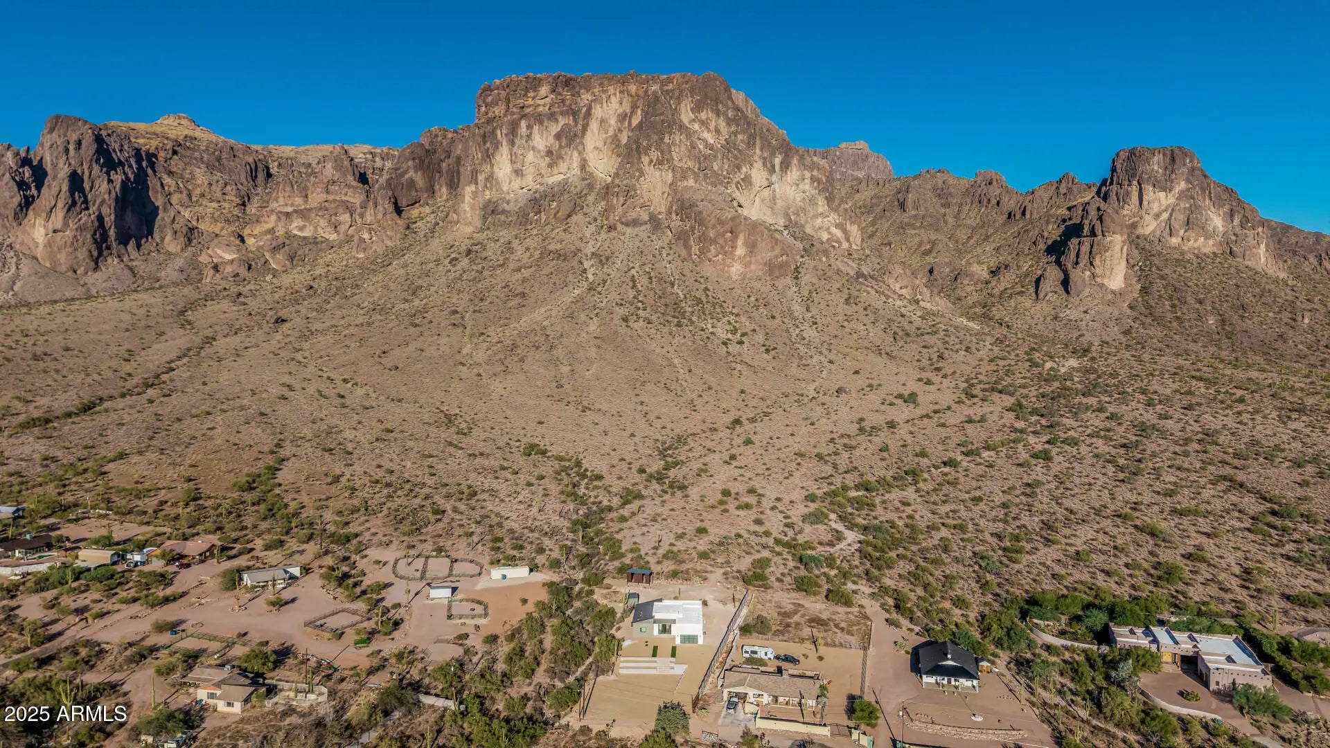 Welcome to a home built for those who live life wide-open—where strength, space, and adventure come standard. This Freestone-Built custom property sits on 1.575 acres in Apache Junction and backs directly to the Superstition Mountains, with private access to the National Forest. Whether you ride side-by-sides, explore backcountry trails, or haul an RV across the desert, this is a place designed for the way you live. Flat Iron Mountain rises up right behind the property, creating a dramatic natural backdrop—and from the front, sweeping valley views stretch for miles. Sunrise to sunset, this home puts you right in the middle of Arizona's wild, untamed beauty. Crafted with 8x8x16 CMU block walls on both the interior and exterior walls, this home delivers superior strength and longevity Additional high-quality construction features include: -1" spray foam roofing for exceptional efficiency -Open-cell spray foam insulation throughout -Andersen 100 Series windows built to handle the elements -400-amp solar-ready electrical panel for future expansion -Propane water heater and dual-fuel range. Inside, the 2,605 sq ft layout feels open, bold, and ready for anything. Sealed concrete floors offer durability and low maintenance, while semi-custom plywood cabinetry and quartz countertops bring style without sacrificing practicality. With 4 spacious bedrooms, a versatile bonus room, and 2.5 baths, there's plenty of room for hosting, relaxing, and gearing up for your next outing. The expansive lot gives you space to spread out, build, or customize to fit your lifestyle. A covered RV parking structure is already in place, perfect for your RV, trailers, side-by-sides, dirt bikes, or desert toys. Step out your back door and hit the mountain. Walk out your front door and take in endless open desert. This is a rare chance to own a brand-new, solid-block custom home with unbeatable access to the outdoors, and it comes with a full 1-year builder warranty for added peace of mind. If you're looking for strength, space, and a true Arizona lifestyle, this property isn't just a home, it's your basecamp."