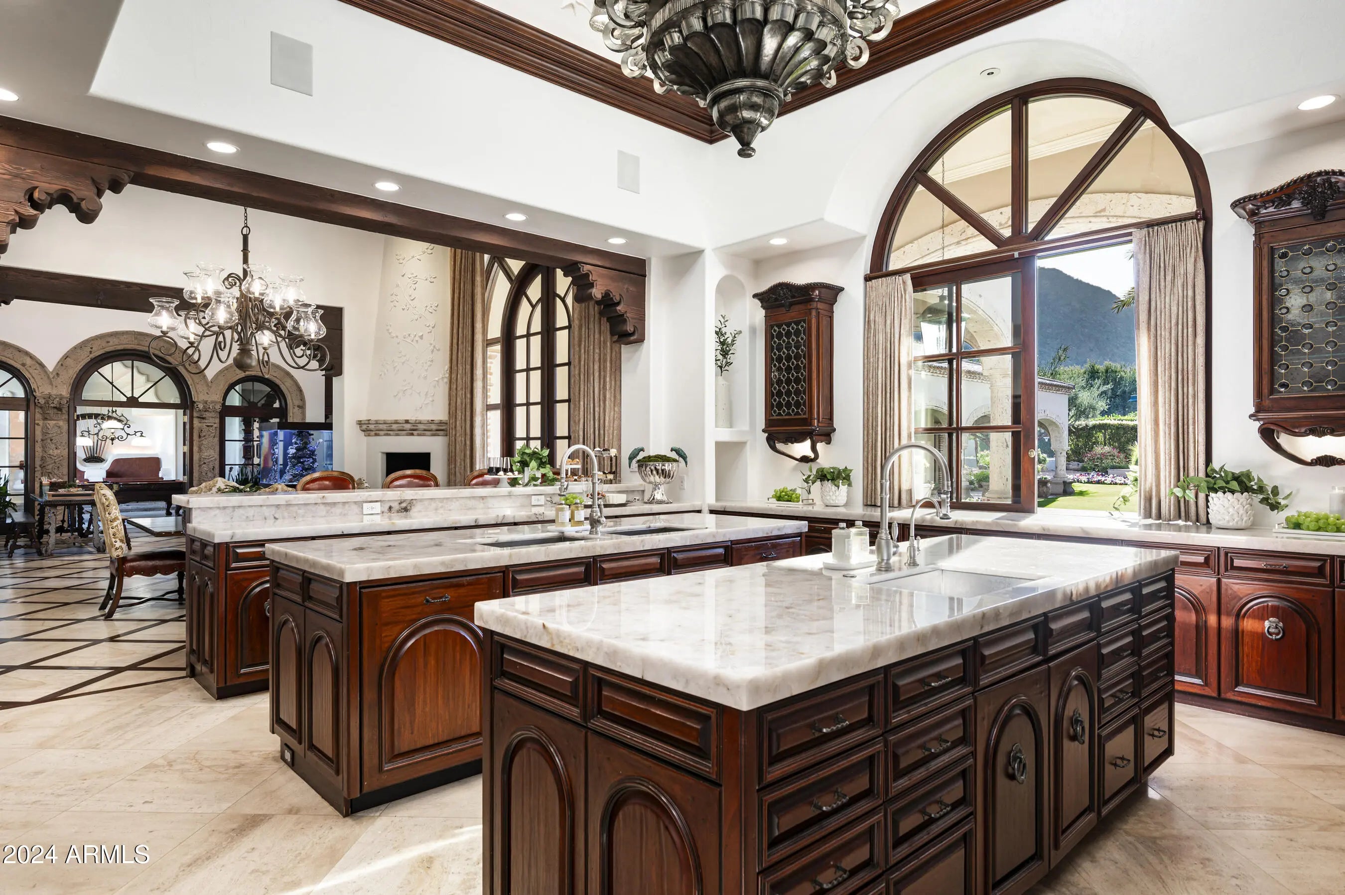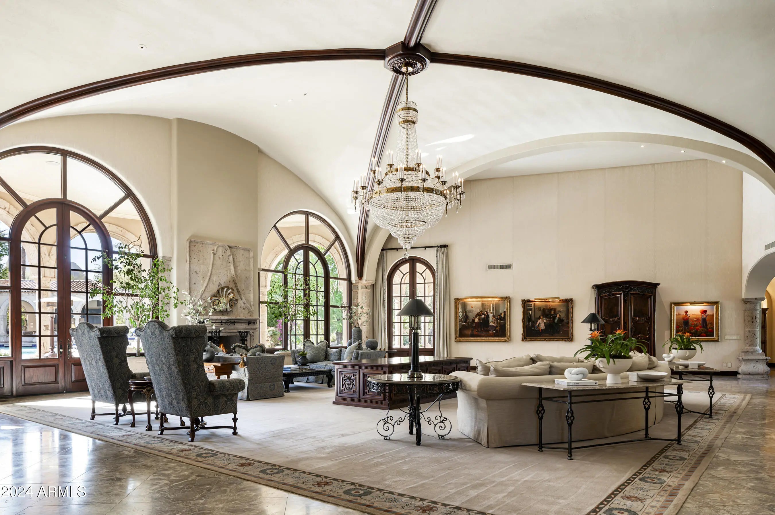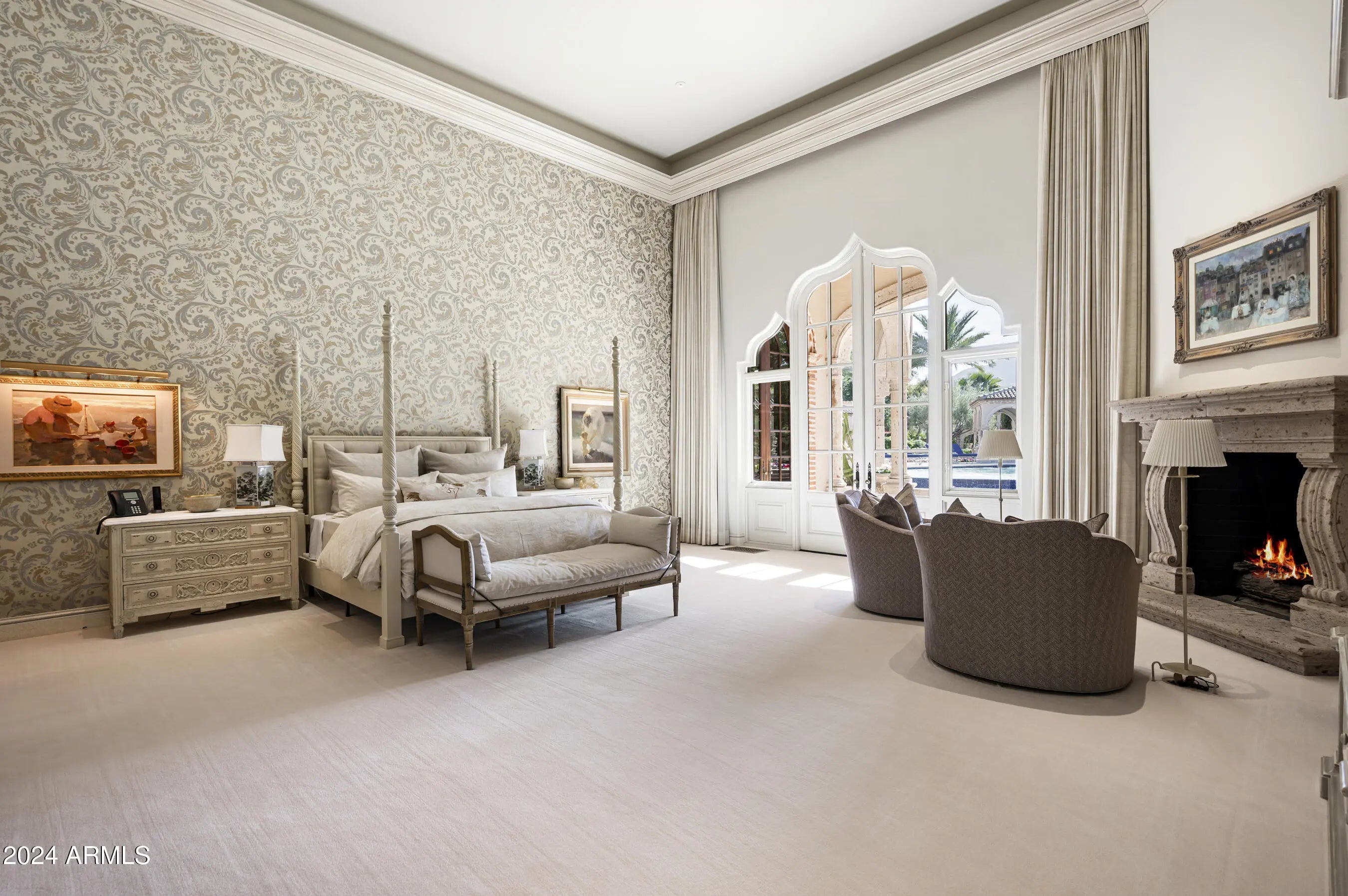 Welcome to Casa de Niños, an extraordinary 4 ACRE estate in one of the most prestigious neighborhoods in Paradise Valley. This estate offers unparalleled living experiences w/ serene ponds + waterfalls that wind thru the property. Upon entering the home, admire soaring 26ft ceilings in the great rm opening thru high arched doors to vast grounds + beautiful views of Camelback Mtn. Featuring huge lawns, tennis court, resort pool w/ swimup bar, ramada w/ charcoal + gas bbqs, 6 TVs, 2 beer taps, poolhouse w/ sauna + 16 car garages w/ man cave for 10 cars. There are 9 bedrms in this 17,250 sqft estate w/ 6 in main house, 2 apartments + guesthouse. W/ Honduras Mahogany woodwork, limestone + marble floors, elegant ceilings + fireplaces, the main home is on 1 level w/ no steps except for library. This estate is completely private with a large electronic gate at the entrance, a block wall and very tall hedges surrounding the property, as well as a long curved driveway prior to reaching the front door.