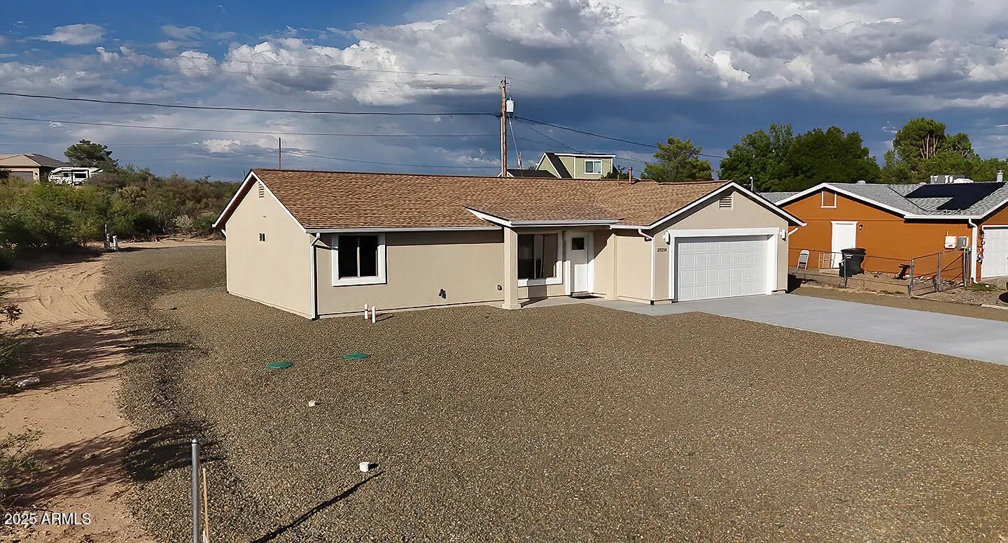 Come experience firsthand the breathtaking views, high-end finishes and impeccable design that makes this new built home (2025) truly special. Featuring 3 bedrooms, 2 bathrooms and a split floor plan, this home offers sleek tile flooring throughout. Entertain in the airy great room or gather around the spacious eat in kitchen complete with quartz countertops a generous island and stainless-steel appliances. Situated on a peaceful street with sweeping mountain and valley vistas this home enjoys a prime location between Phoenix and Prescott. Oversized driveway with room for multiple vehicles plus a dedicated RV space with RV plugin. Includes an EV charging outlet in the garage for electric vehicles. Don't miss your chance to own this beautiful home!