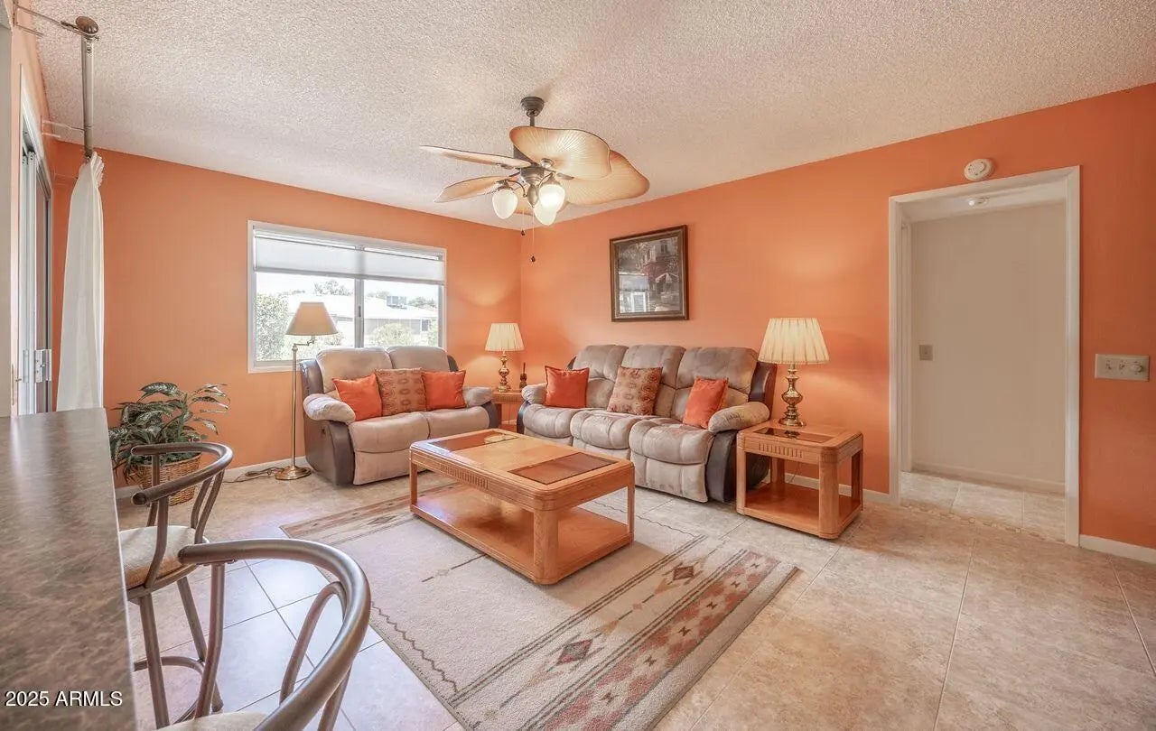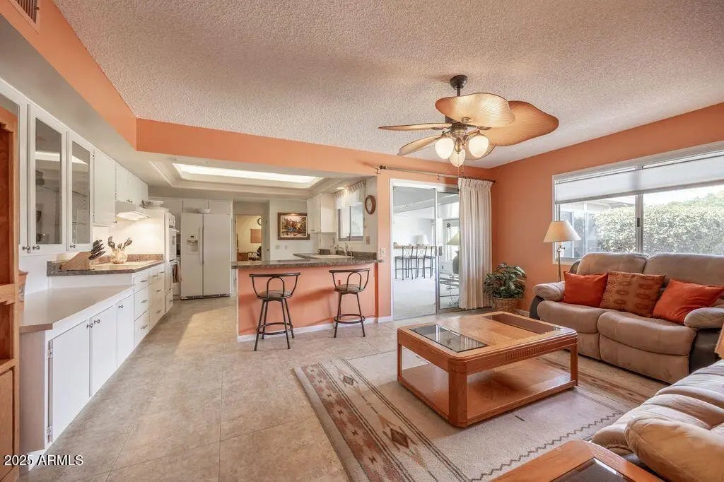 Welcome to Sun City!! This single story North/South facing home offers 2 bedrooms, 2 bathrooms plus a bonus Arizona room that is set up for entertaining, a flex room that can be used as an extra bedroom, storage or can meet any of your needs. Move in and relax in comfort knowing this house has been well maintained and is ready for you to enjoy!