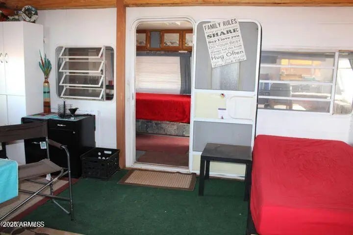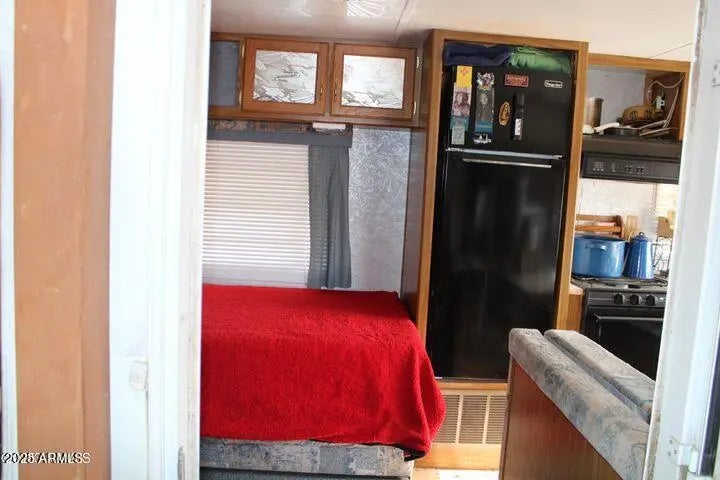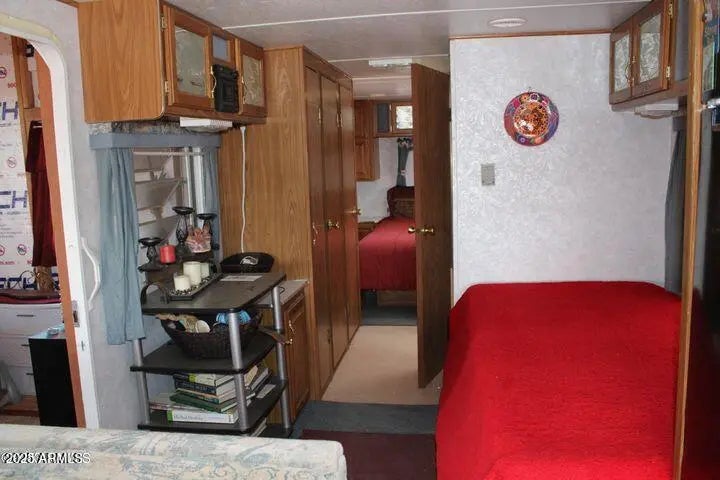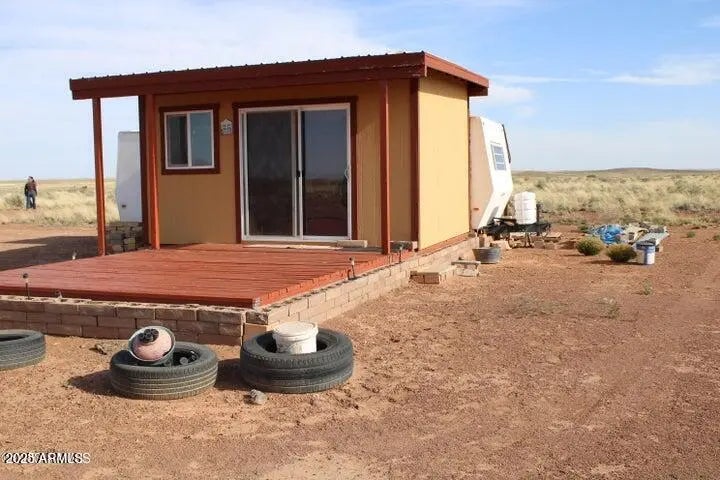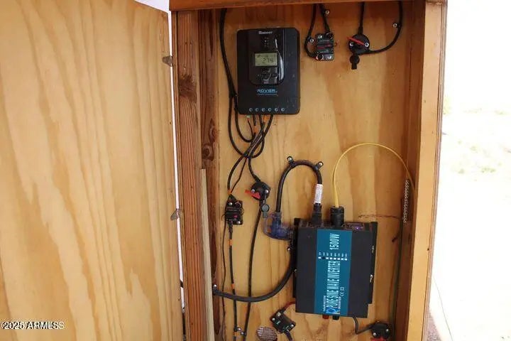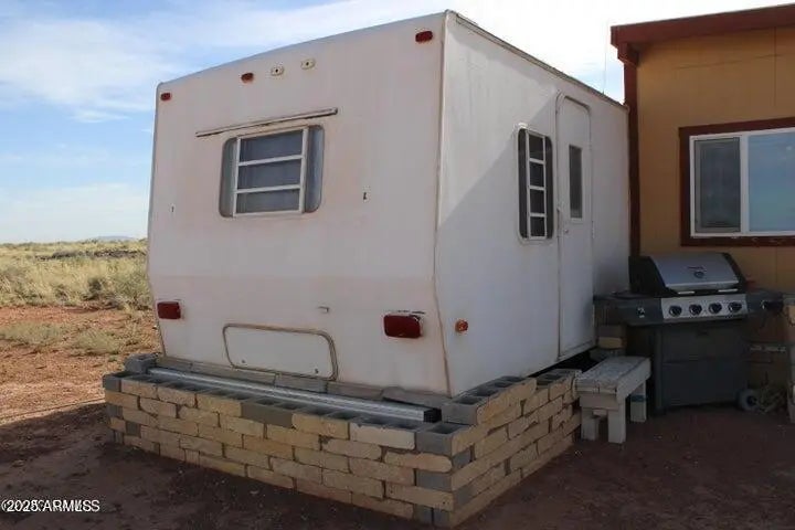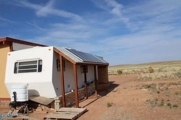 This fenced 38.87 AC has a well with a pump & generator. There is a 30' Dutchman RV set up on the property. The RV has block skirting & is tied down. A 15'x16' room addition completes the living space. It includes a 15'x15' storage shed. A Solar system supplies the power with a 1500W inverter & includes 2 large storage batteries. It features incredible panoramic views & vast open space. Very well done.