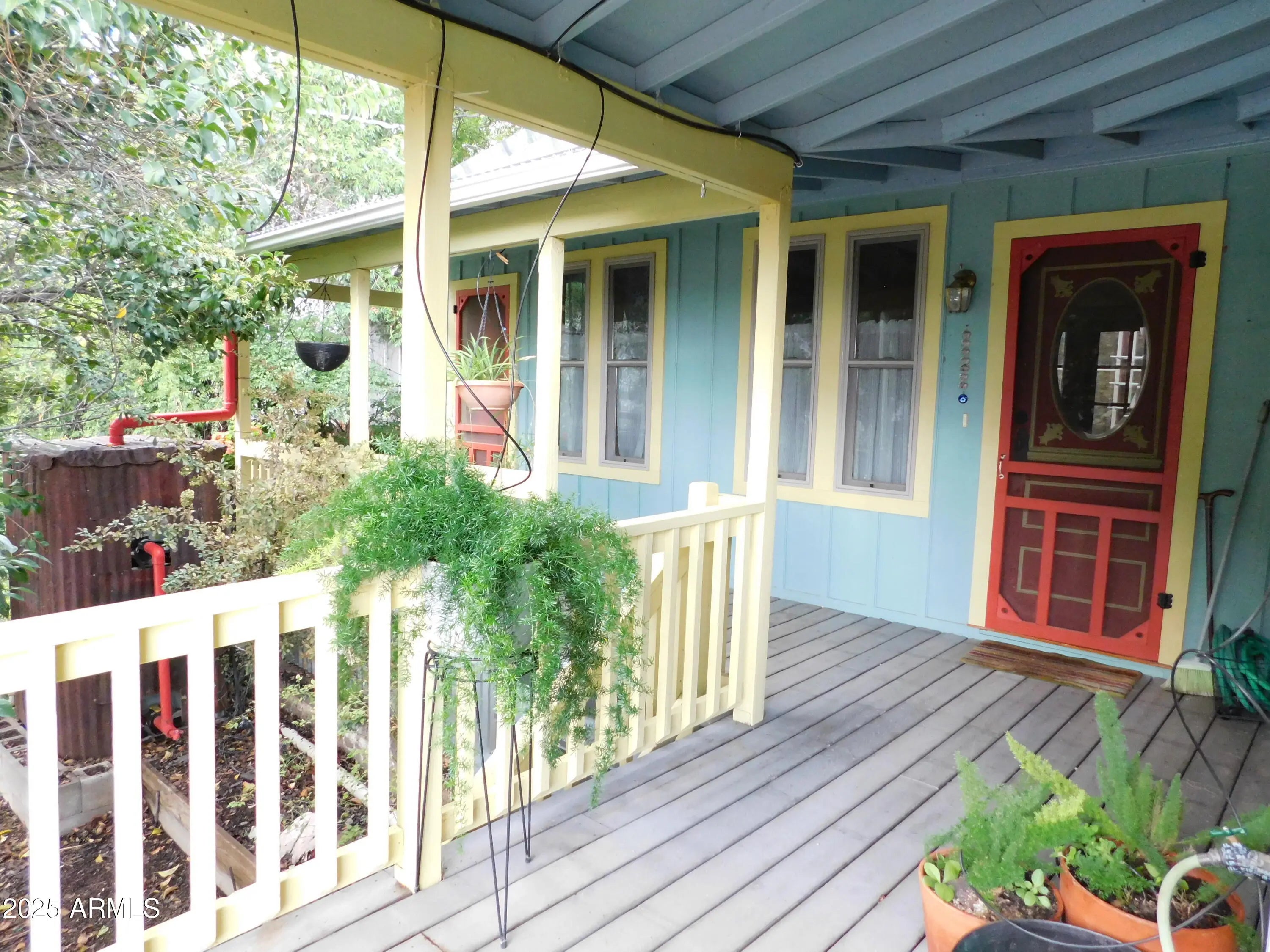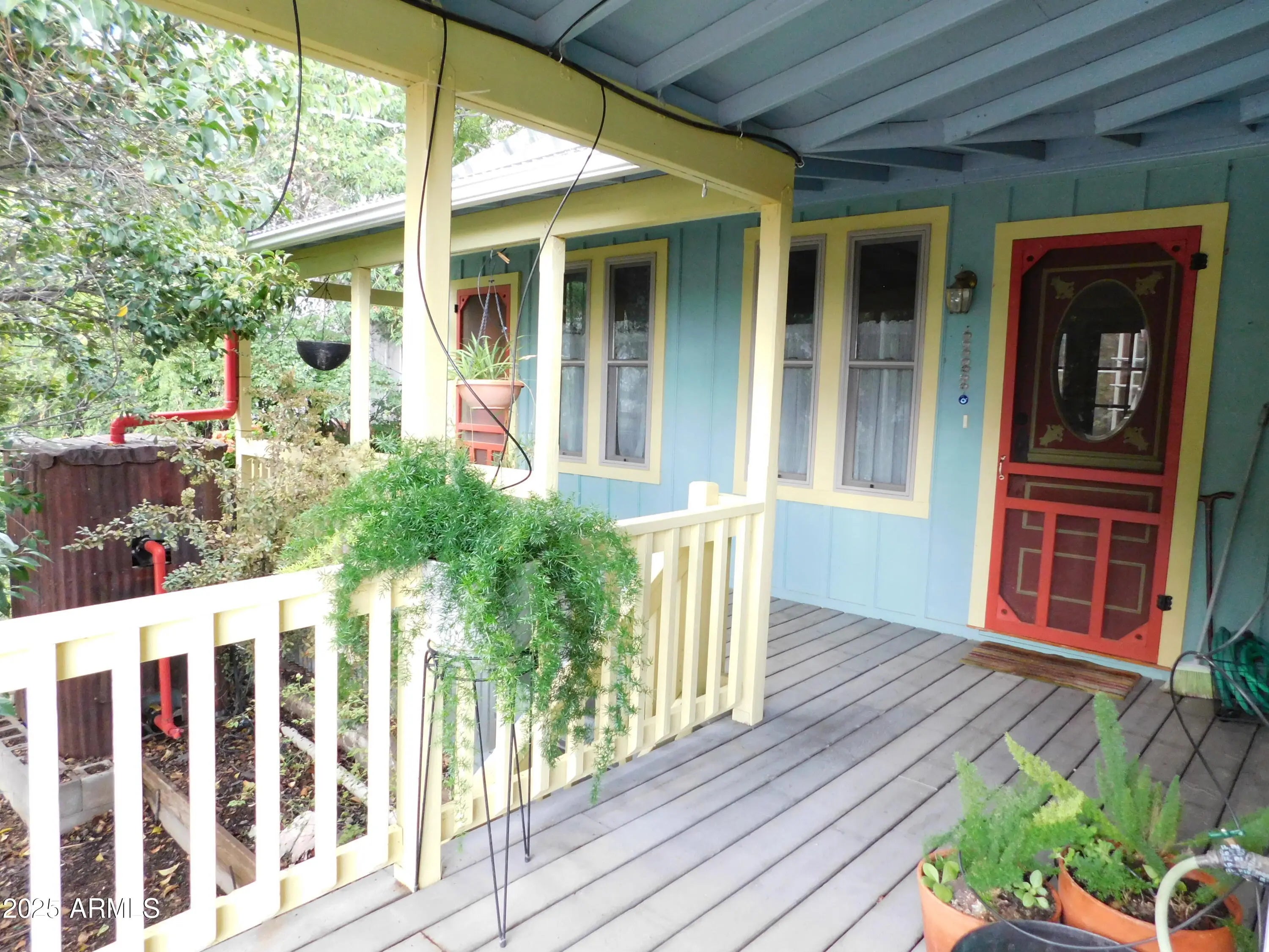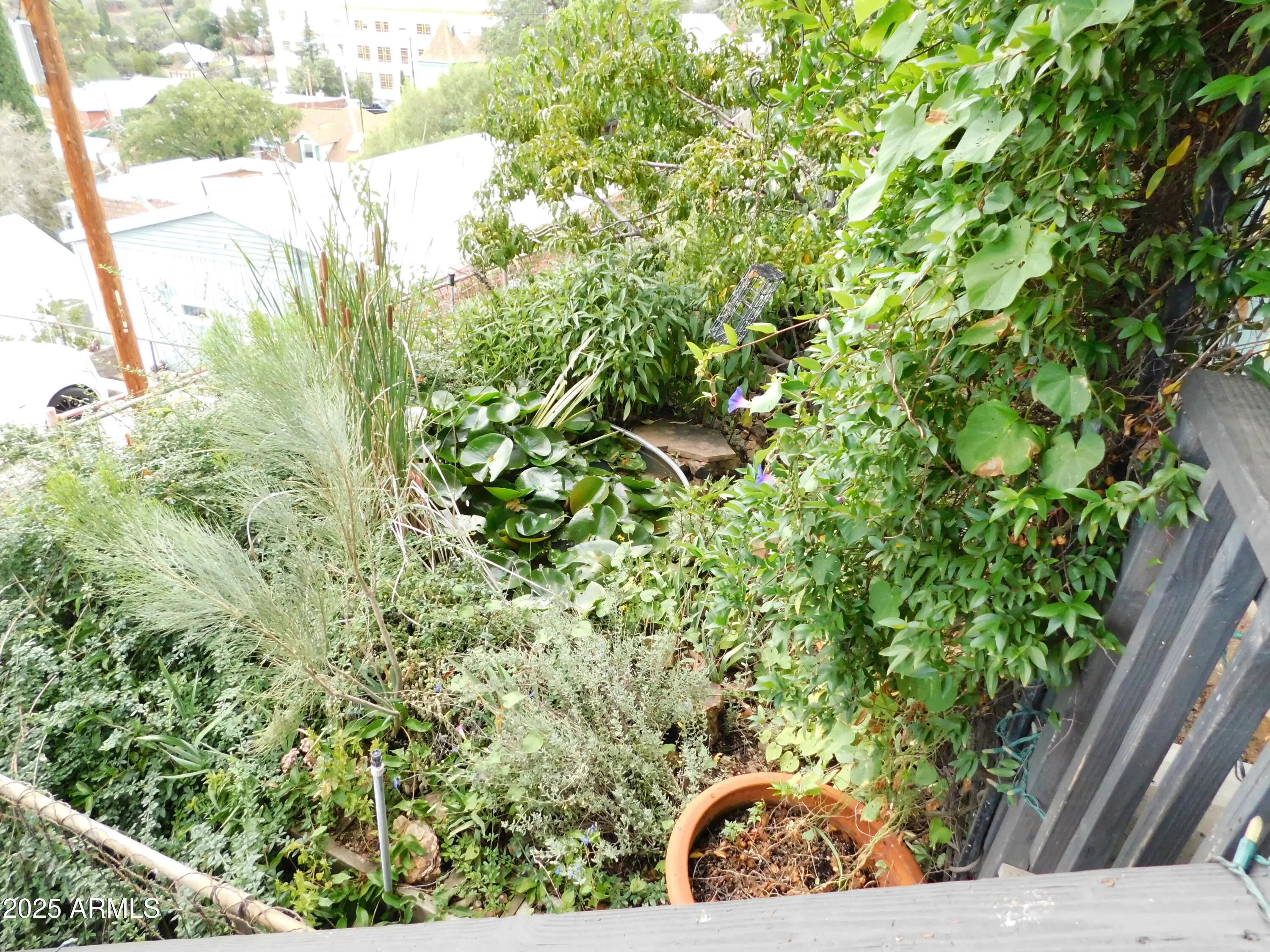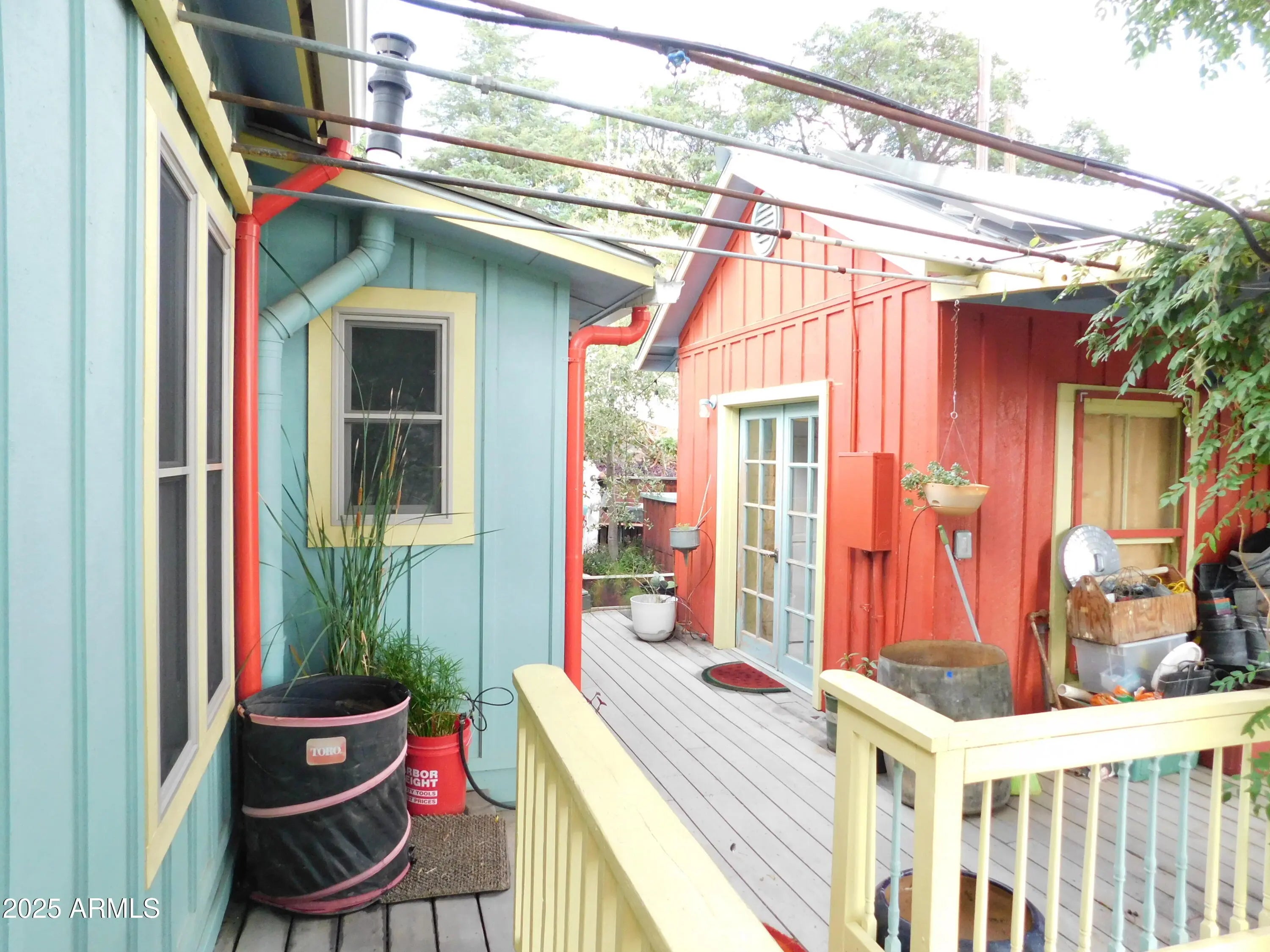 Enchanting Historic Hilltop Retreat with Guest House in Old Bisbee. Perched on a scenic hill in the heart of historic Old Bisbee, this exquisitely restored property blends timeless charm with modern luxury. It offers panoramic views of downtown Bisbee's colorful rooftops and the dramatic mountainous landscape, including an unobstructed view of the iconic ''B'' Mountain! With wrap-around patios and multi-level decks framing every vista, this hilltop sanctuary is a masterpiece of serenity and style, perfect for those seeking an artist's haven or a unique HIGH desert escape. MAIN RESIDENCE: Timeless Elegance Meets Modern Comfort. The main home features 1 spacious bedroom with hand-painted wall covering, a half-bathroom, and French doors onto the porch with a lovely view of the valley...MORE ... Complemented by a grand great room that seamlessly integrates a fun & fabulous kitchen with a breakfast bar and a cozy dining area. An additional room offers flexibility as a spacious 2nd bedroom (no closet), den, office, or extra living space. A beautifully appointed bathroom, thoughtfully expanded, blends historic character with contemporary upgrades. Original hardwood floors and distressed Bisbee wood paneling whisper tales of the town's colorful past, harmonizing with modern enhancements like dual-pane windows, updated electrical and plumbing systems, and maintenance-free weatherproof (Trex) decking. Every room opens to private decks, creating seamless indoor-outdoor living spaces bathed in natural light and showcasing stunning garden and mountain views. Storage includes an attic, a basement with outside entry, a storage building, and endless space under the decks of the guest house. ***GUEST HOUSE or 2nd MAIN HOUSE: Versatile & Inspiring... The spacious guest house elevates this property to a true gem, offering a flexible layout with a dedicated art studio/workshop/office or the option for a 2-bedroom retreat. Ideal for multi-generational living, a private office, or a lucrative rental unit, it rivals the main home in charm. Its luxurious bathroom, featuring a claw-foot tub and custom tile work, exudes timeless elegance. Like the main residence, the guest house captures inspiring views, making every moment feel like a getaway to help inspire any and all creativity that you long for. The Property flaunts over 300 square feet of Wrap-Around Patios, Vibrant Gardens & Built-In BBQ making it a private entertaining Oasis. Step onto the expansive wrap-around patios and multi-level decks, where every corner is crafted for unforgettable moments savoring morning coffee, hosting al fresco dinners, enjoying a cooling reprieve from Arizona heat or toasting sunsets against Bisbee's vibrant skyline. The meticulously curated gardens (which are registered with the National Wildlife Association as a wildlife habitat) explode with vivid colors and textures, from desert blooms to lush greenery, creating serene retreats for quiet reflection or lively spaces for entertaining. A built-in BBQ / outdoor kitchen area with stylish seating invites effortless gatherings with options for after-dark lighting, blending seamlessly with the outdoor haven. The porches capture breezes in the warm weather that make the site a joy for sitting and admiring the view. Framed by Arizona's rugged beauty, these spaces offer an idyllic setting for relaxation, connection, and the ultimate Bisbee lifestyle. ***UNPARALLEL LOCATION & VIEWS: Nestled in the heart of Old Bisbee, this hillside oasis offers privacy and unrivaled views while being steps from the town's vibrant arts scene, boutique shops, and eclectic dining. Whether you envision a primary residence, a vacation retreat, or an income-generating property, this estate embodies the soul of Bisbee's storied charm a rare opportunity to own a piece of Arizona's historic gem. *** PROPERTY HIGHLIGHTS: - Two-bedroom (flexible), 2-bath main home with high-end upgrades - windowed atrium/greenhouse for plants & herbs - Spacious guest house with art studio or 2-bedroom layout and luxurious bathroom - Expansive wrap-around patios and multi-level decks with panoramic views of "B" Mountain and downtown Bisbee - Lush, vibrant gardens perfect for relaxation or entertaining - Separate potting area for caring for your plants with ease *** Rainwater harvesting can collect nearly 3000 gallons*** *** Solar panels generate all the electricity needed for this property! - Fragrant wisteria vine between the houses, and blooming fragrant trees - A haven for birdwatchers with frequent visits from hummingbirds, goldfinches, cardinals, orioles, and more! - Unique kinetic rainwater system fills the lily pond naturally - Prime hillside location in historic Old Bisbee, with stunning views from every stance - New Metal roof on the guest house designed to capture all rainwater from every angle to repurpose for the gardens & plants - Drip system with access to rainwater tanks and gorgeous Koi / Lily Pond - The landscape can feed you with your own home-grown organic goodies, including 3 types of grapes, pomegranate, fig, peach tree, sweet cherry tree, and bush. - Raised beds with herbs for your culinary endeavors - Recently installed mini-split systems for AC and Heat, with individual room controls for added comfort - Licensed permitted contractors were used to restore this home, yet the professional designer succeeded in preserving the historic feel of Old Bisbee and the heart of this historic beauty! - Many areas for storage by utilizing otherwise wasted spaces for an efficient, inconspicuous, minimalist feel. -All rooms have private decks and patios to enjoy -2 areas for parking: Street parking with non-assigned spaces in front of the home or additional parking up the steps to the High Road parking lot. -All rooms have private decks and patios to enjoy -Street parking in front of the home or up the steps to the wonderful High Road parking lot. -Walking distance to everything Old Bisbee offers! Seize the chance to own t